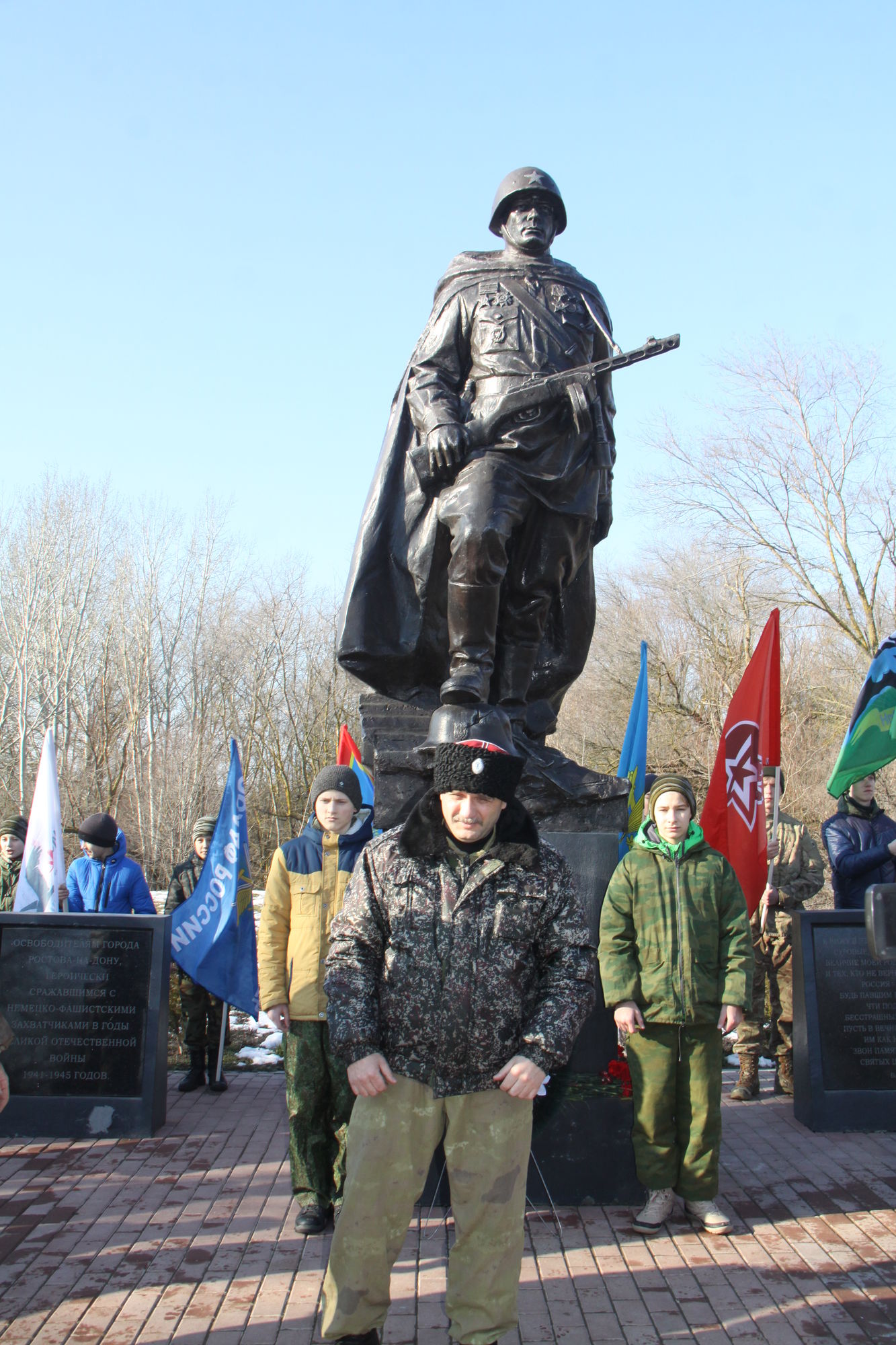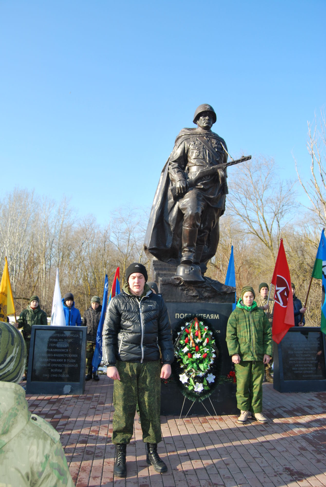 Мероприятие началось с совместного возложения венков и цветов к мемориальному памятнику «Солдату Победителю» в память о бойцах и командирах Красной армии, освобождавших город Ростов-на-Дону от немецко-фашистской оккупации в феврале 1943 года, и в память о Россиянах, исполнявших и исполняющих свой служебный долг за пределами Отечества.