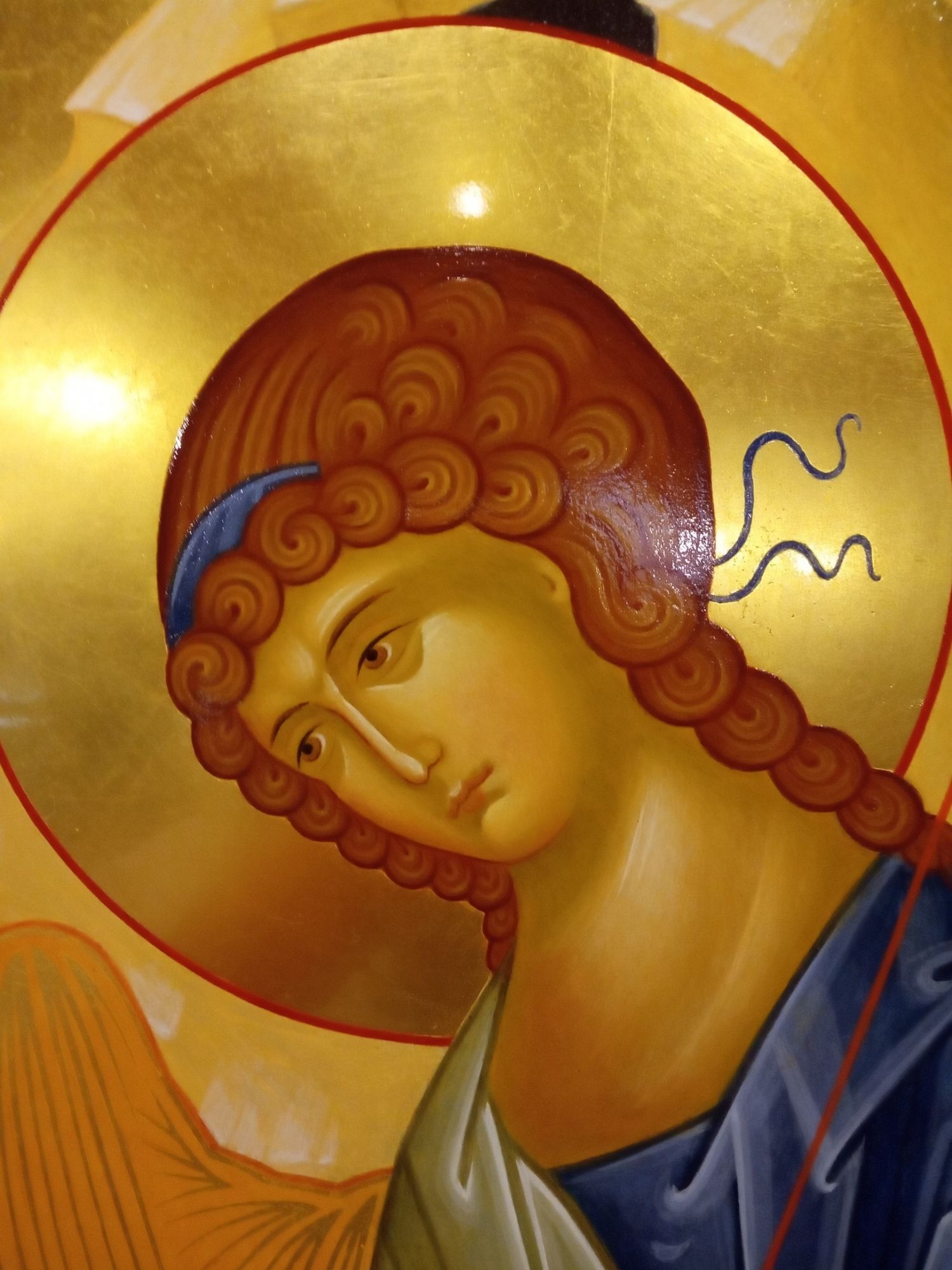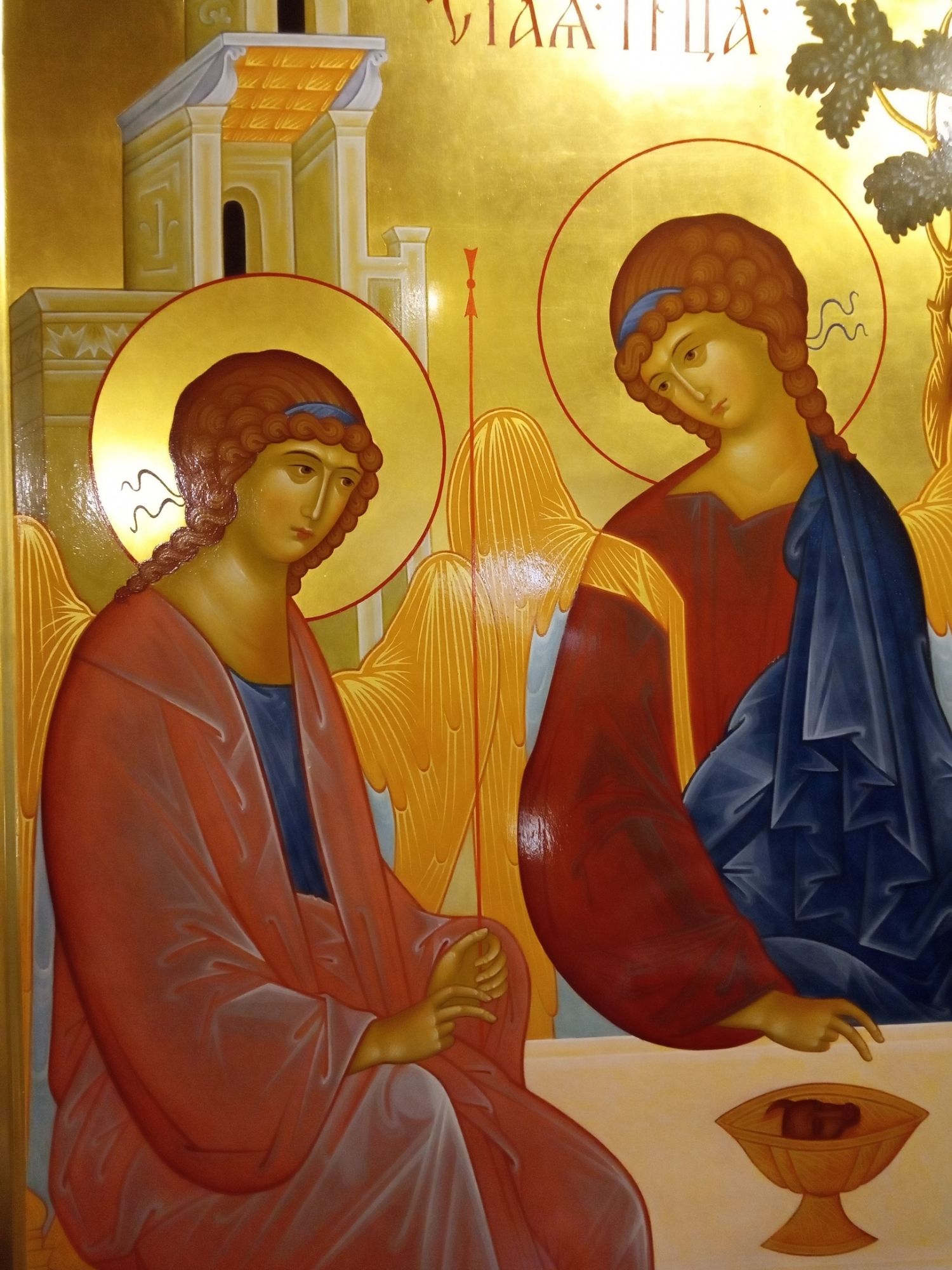 В канун праздника Пятидесятницы у нас на приходе появилась новая святыня — икона Святой Троицы, написанная в нашей иконописной мастерской. Образ, являющийся копией иконы Андрея Рублёва, написала матушка Юлия Барановская, уже на протяжении 8 лет трудящаяся в мастерской.