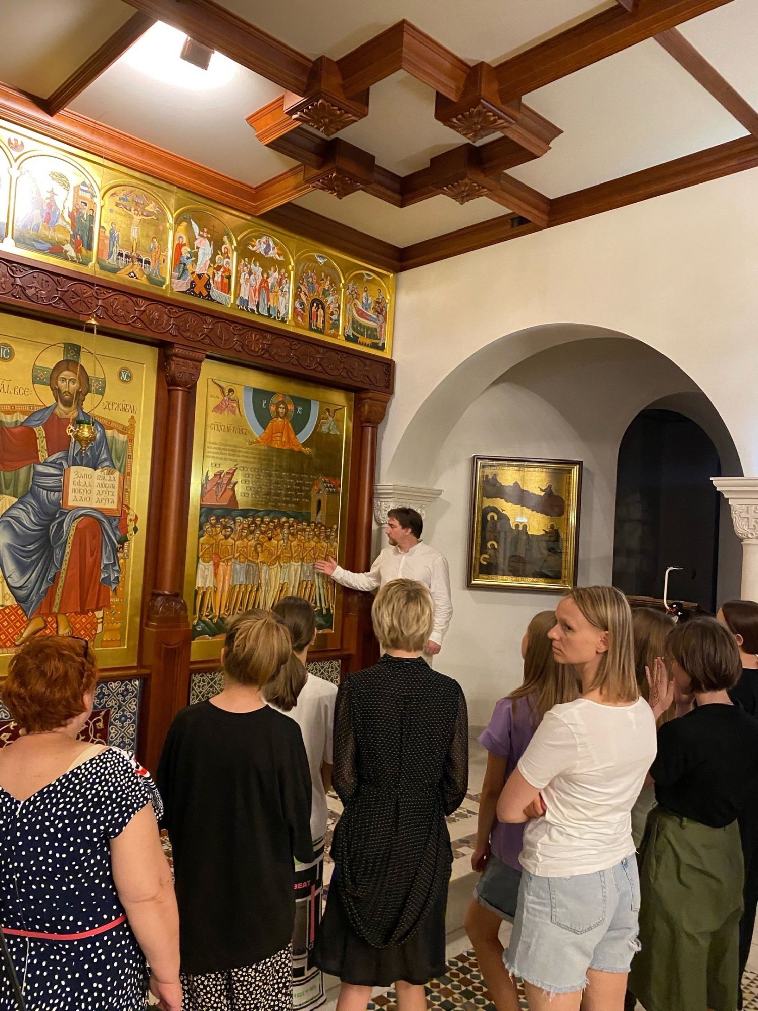Делимся впечатлениями педагога одной из художественных школ: "Хотели бы выразить огромную благодарность за такой тёплый приём! Мы с ребятами с огромным удовольствием порисовали пейзаж с храмом и насладились его красотой. Отдельное спасибо за увлекательную экскурсию по мастерской иконописи и по нижнему храму, было интересно узнать о процессе создания икон и побывать в «закулисье». С уважением, преподаватель студии «Арбуз» Мария Сарычева".