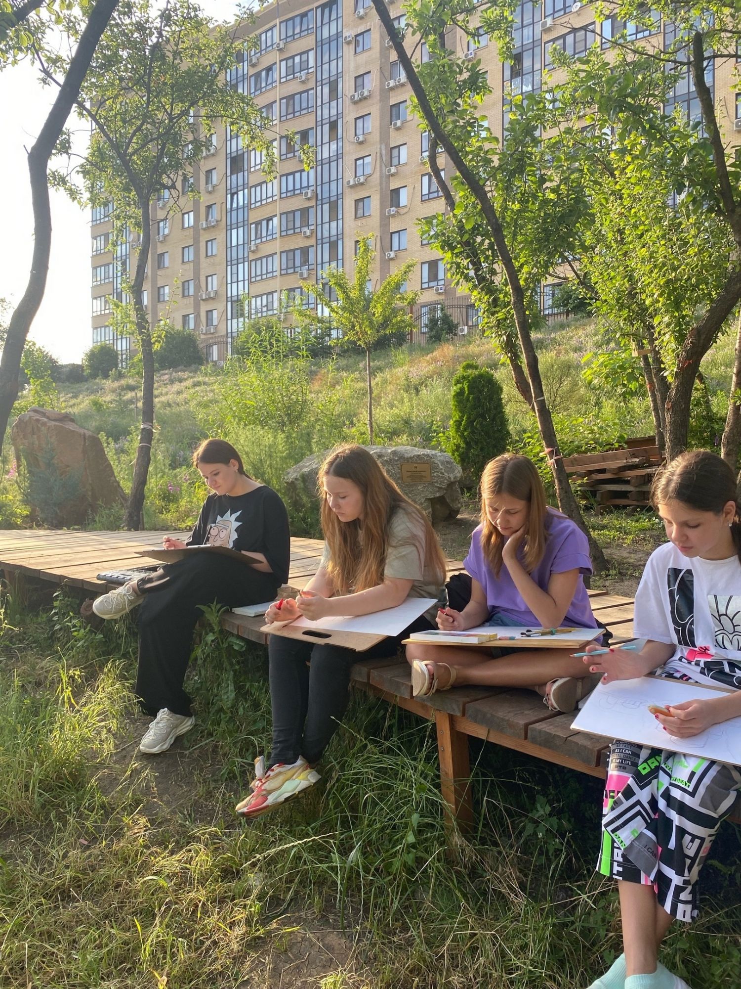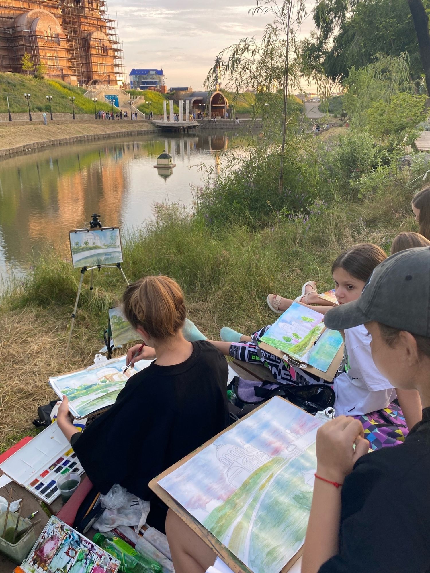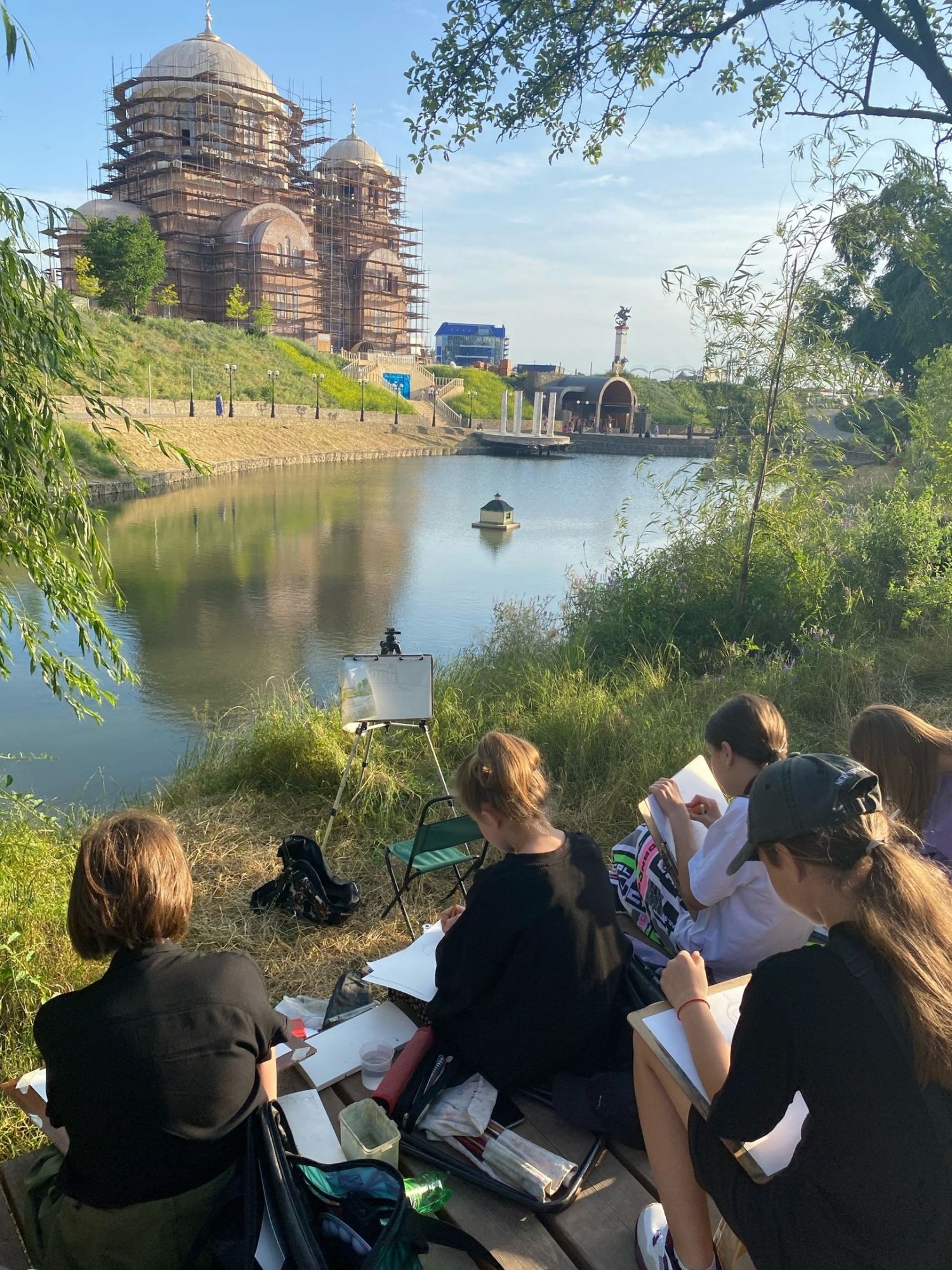 Лето — традиционное время пленэров на нашем подворье. Часто юных художников можно встретить у храма святого Иоанна Воина, а теперь и в Георгиевском саду.