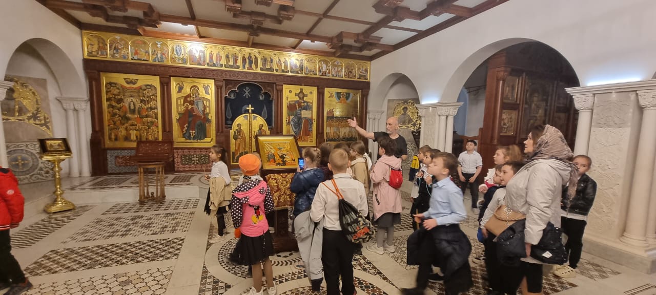 Каждый человек приходя в храм открывает для себя удивительный мир, где есть заповеди, Евангелие, святые люди, где есть Бог! С ребятами на экскурсиях мы говорим о том, как Господь устроил этот мир, кто такой православный человек, что такое молитва.... Мы прогуливаемся до Георгиевского парка, смотрим на работы мастериц-злотошвеек, бываем в иконописной мастерской. В конце экскурсии - традиционный колокольный звон.