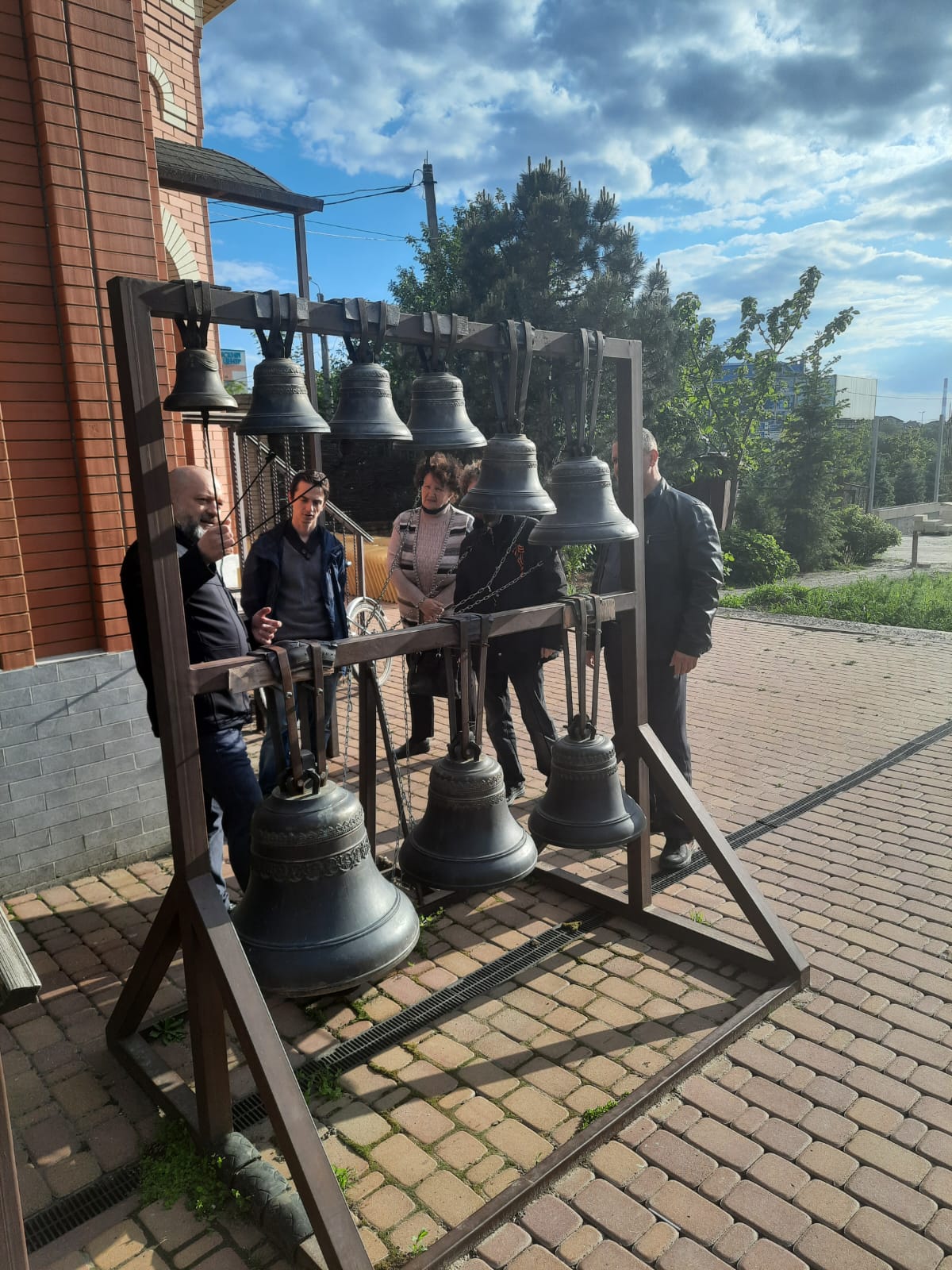 Кстати, в этот раз перед началом встречи нас ждал приятный подарок. По благословению настоятеля протоиерея Валерия Волощука, участник библейского кружка и звонарь нашего прихода Александр Чухутов провёл для нас мастер-класс по колокольному звону. Каждый желающий смог не только посмотреть на работу опытного звонаря, но и сам попробовать свои силы на наземной звоннице.