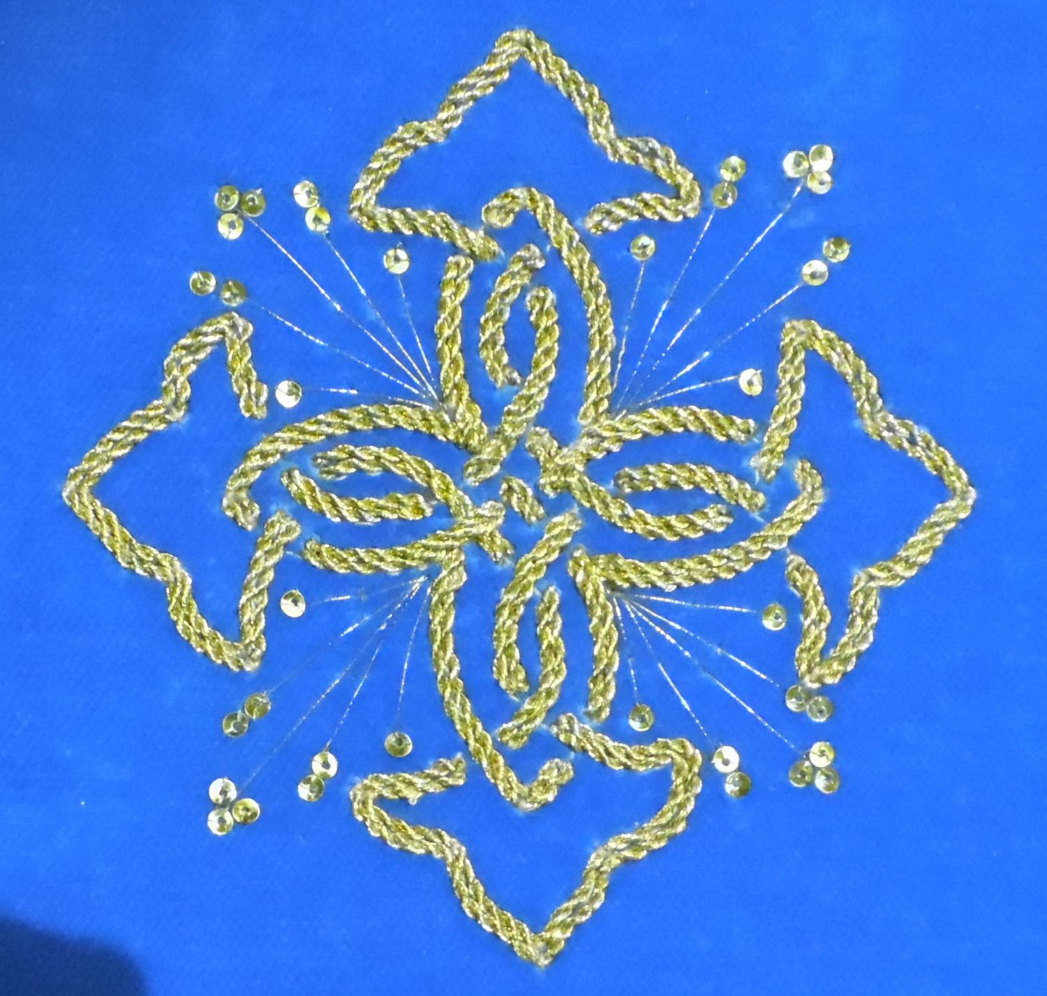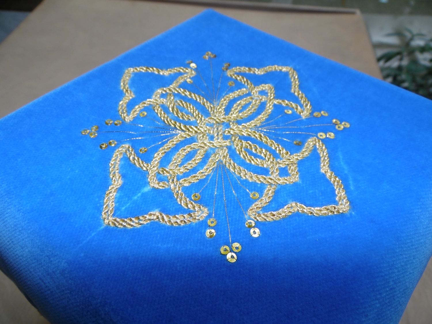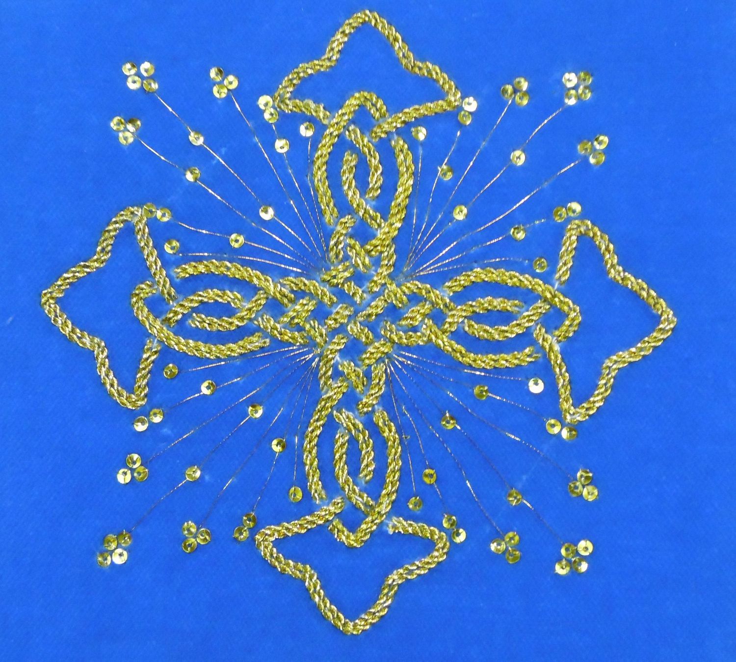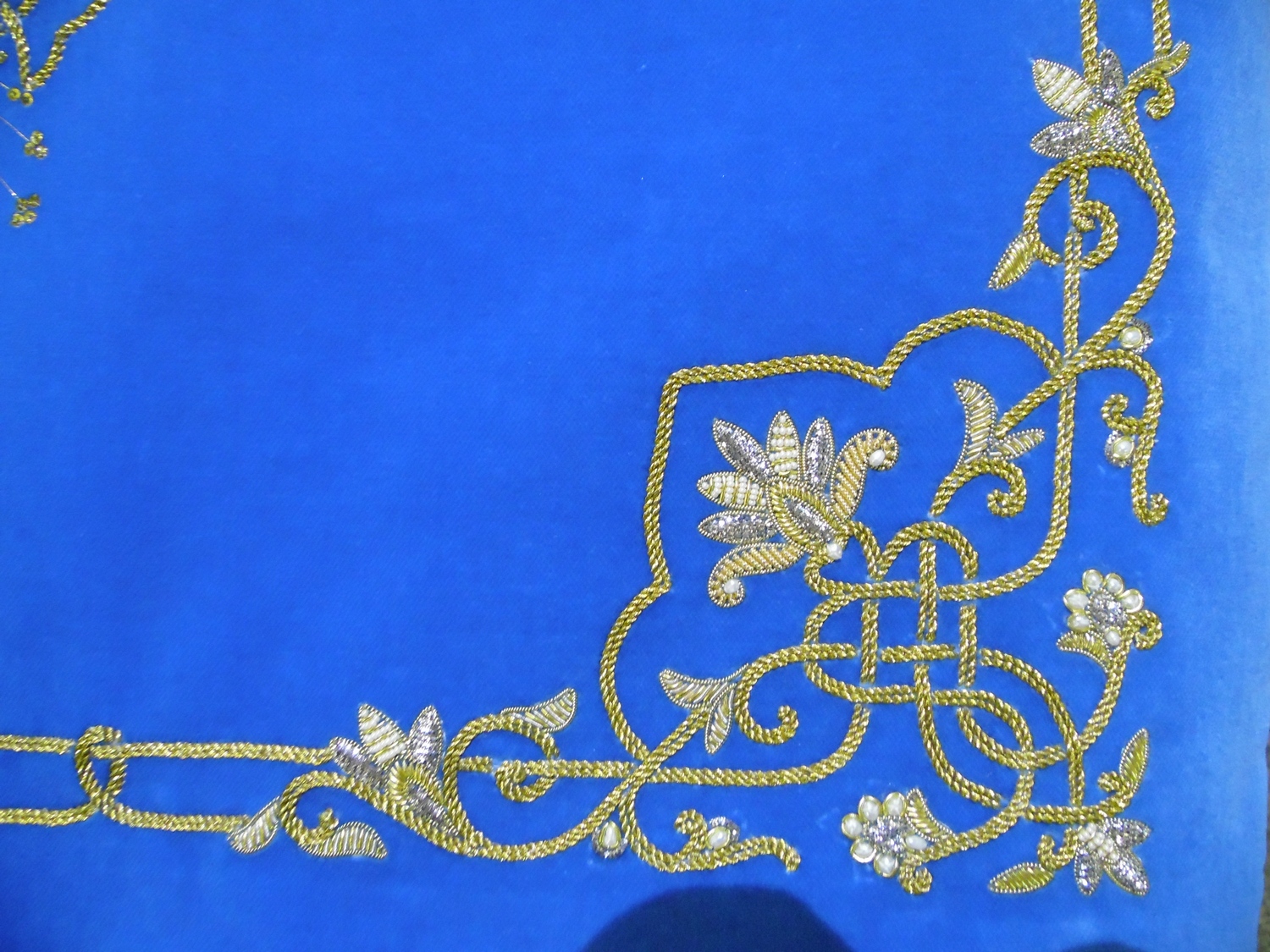 В золотошвейной мастерской завершена работа над Литургическим комплектом в наш Храм. Работа выполнена на бархате, в технике шитья золотными шнурами и канителью.