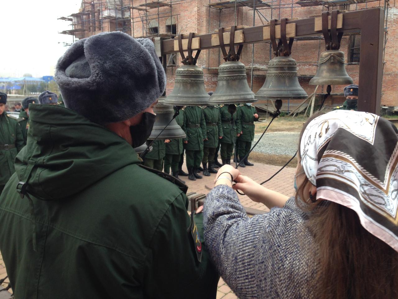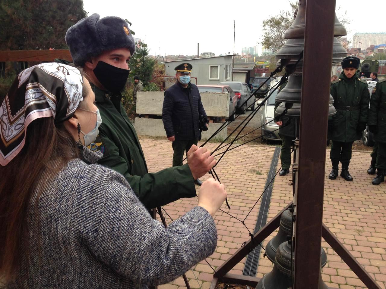 15 ноября 2020 года на Божественной Литургии на нашем приходе молились военнослужащие ЮВО. После Богослужения, по благословению настоятеля прихода протоиерея Валерия Волощука, руководитель школы церковных звонарей Ольга Павловна Шевчук провела для дорогих гостей мастер класс по колокольному звону и экскурсию по мастерским. Молодые люди только воцерковляются и у них было множество вопросов, связанных не только с церковным искусством.