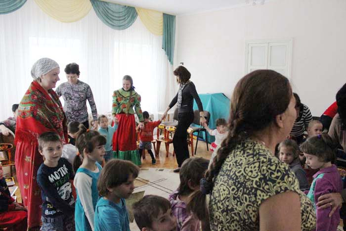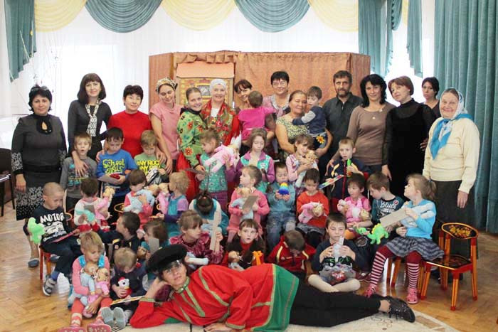 Воспитанникам детского дома был показан кукольный спектакль "Теремок", который дети смотрели с огромным интересом. После спектакля гости с детьми водили хоровод, играли в активные игры, отгадывали загадки. Каждому из присутствующих детей были вручены подарки: игрушки, продукты, поделки, предметы личной гигиены.