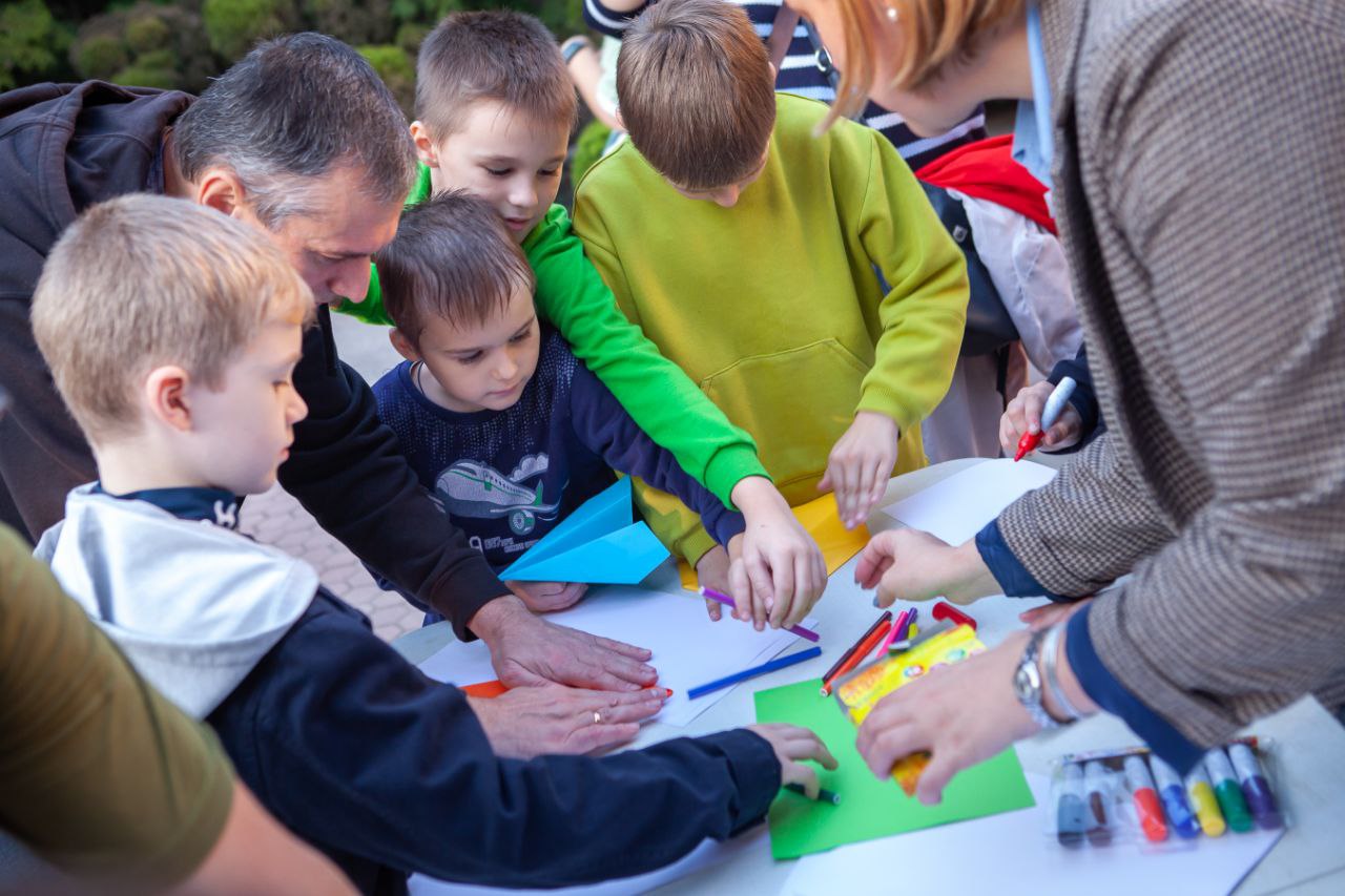 Воспитанники младших групп вместе со своими папами (и даже дедушками) приняли участие в маршрутной игре, которая прошла под девизом «Не нужно нам другого образца, когда в глазах пример отца!». Станции игры расположились на всей приходской территории и в Георгиевском саду. Команды выполняли задания наших педагогов, направленные на совместную работу детей и отцов, сплочение, взаимовыручку и смекалку. Мамы тоже не остались в стороне и активно болели за свою семью! Итогом маршрутной игры стал импровизированный салют из бумажных самолетиков, которые мастерили участники и писали на них добрые пожелания папам.