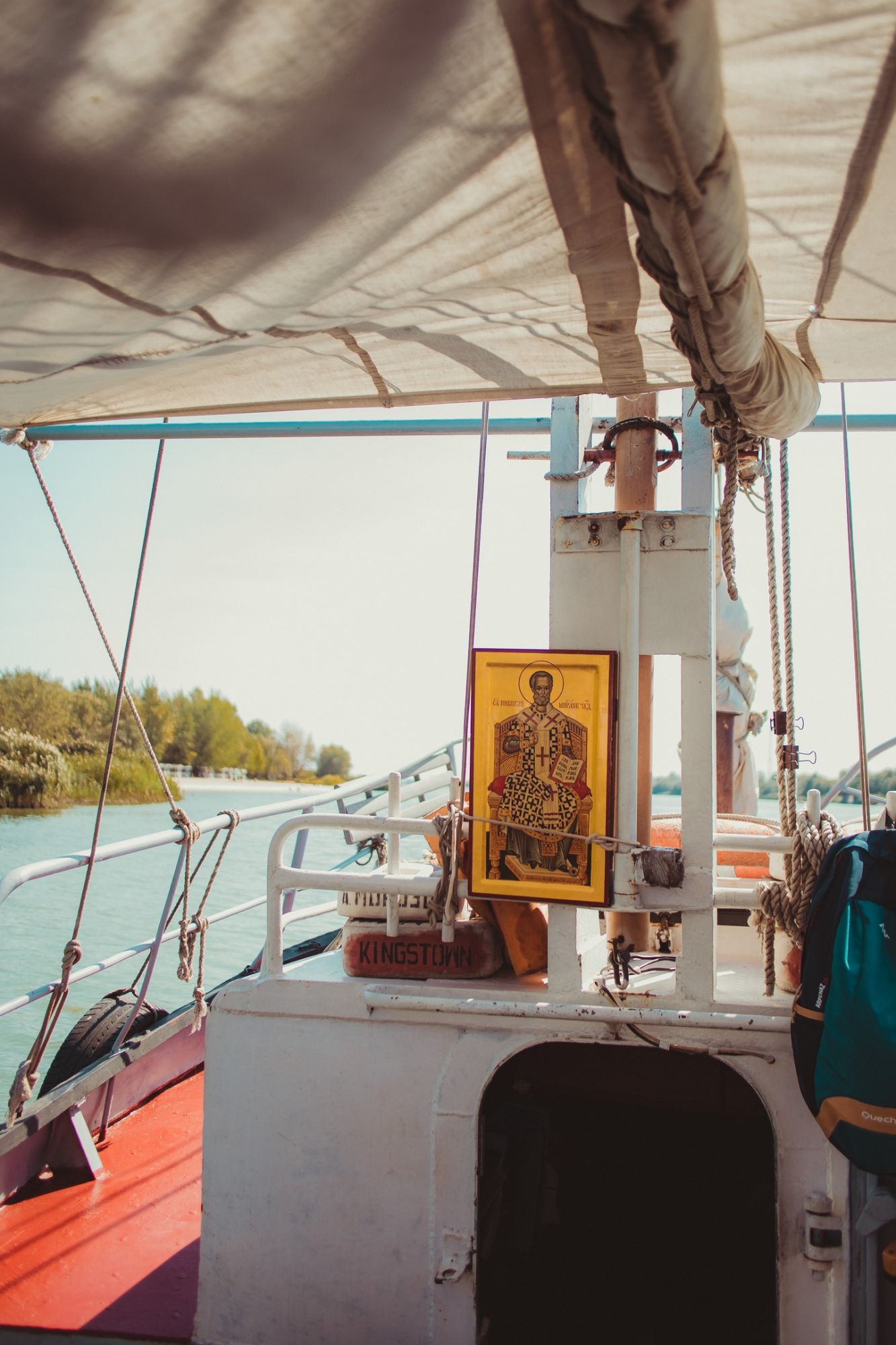 Участники молодёжного движения взяли на борт корабля икону с частицей мощей святителя Николая Чудотворца из храма Иоанна Воина и, прибыв в станицу и став на якорь, прочитали акафист "Слава Богу за всё" и помолились перед иконой святителя. По окончании молитвы, высадившись на берег, посетили храмы Старочеркасской и в особенности Воскресенский собор, пообщавшись с клириком собора иереем Иоанном Цупко и ознакомившись с ходом реставрации колокольни и иконостаса.