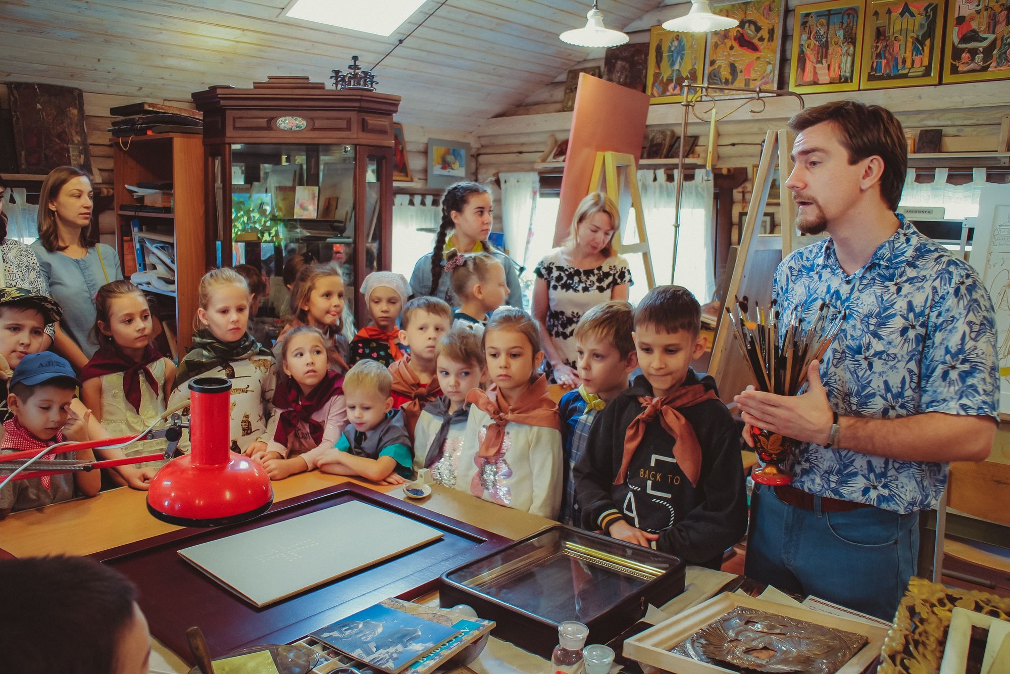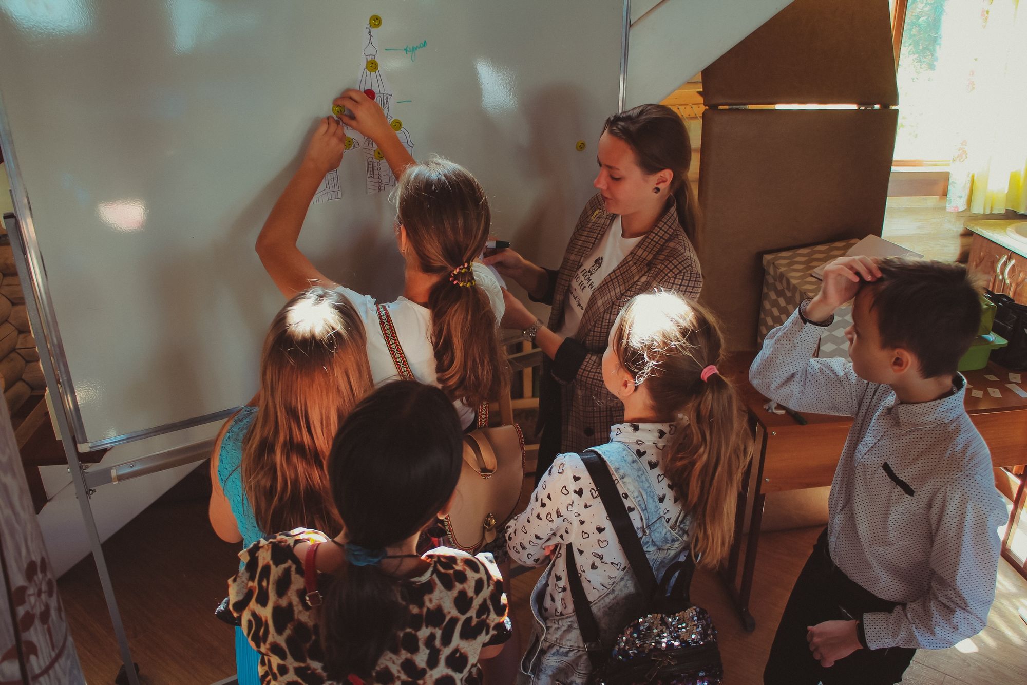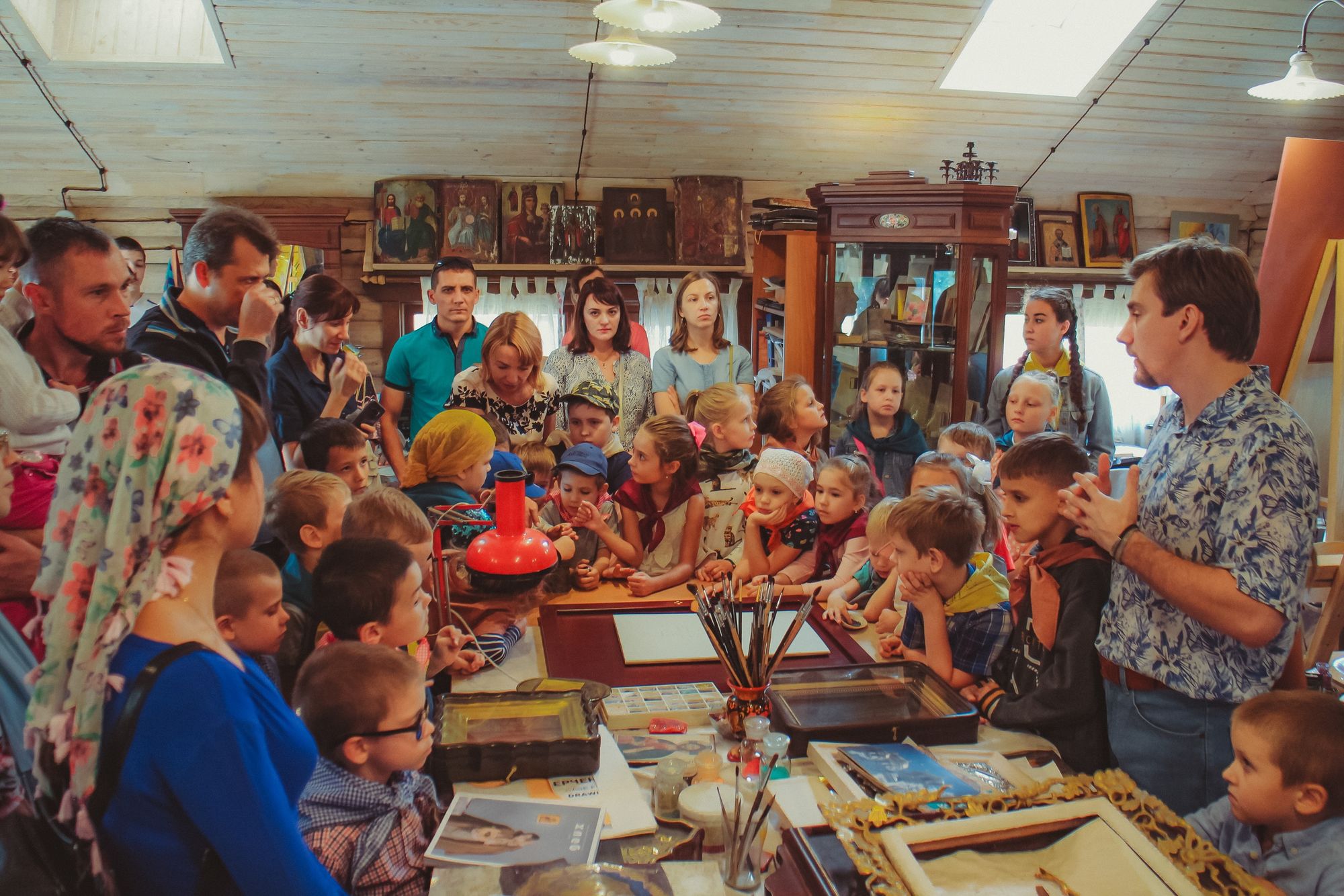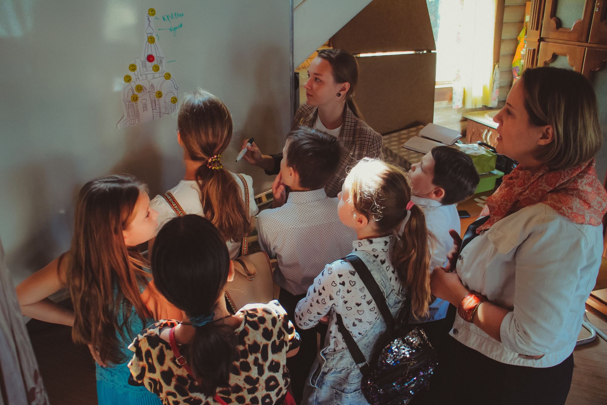 После чего младшие группы воскресной школы познакомились с приходом на занимательной экскурсии. А учащиеся средних, старших групп и родители поделились на команды и отправились на маршрутную игру. На каждой станции их ждали педагоги, которые приготовили увлекательные задания по предметам, изучаемым в воскресной школе.