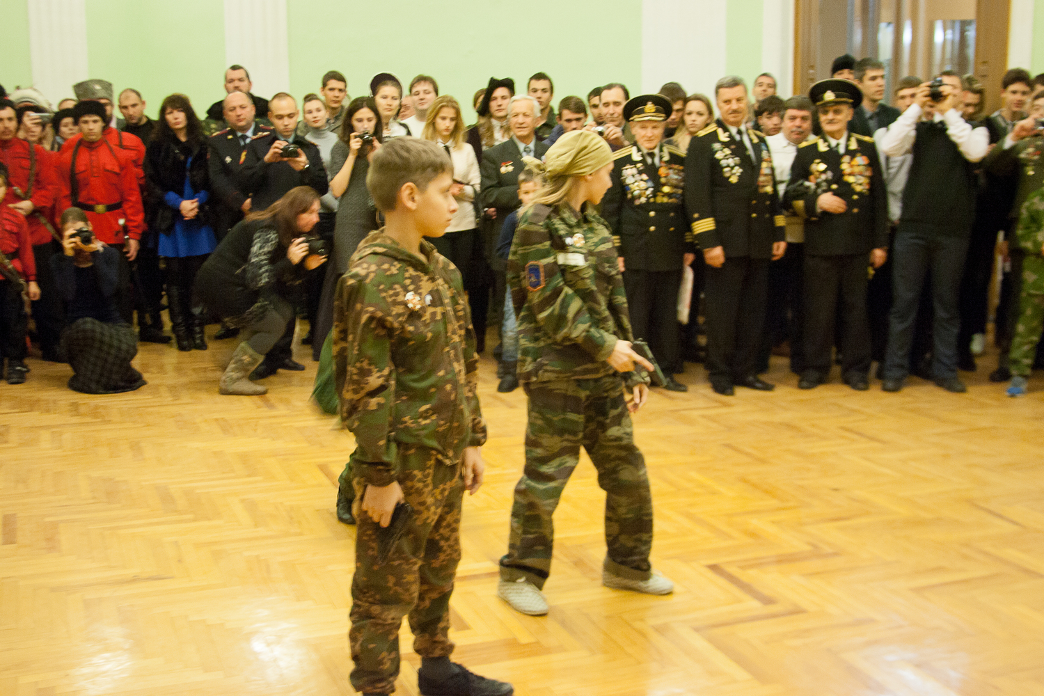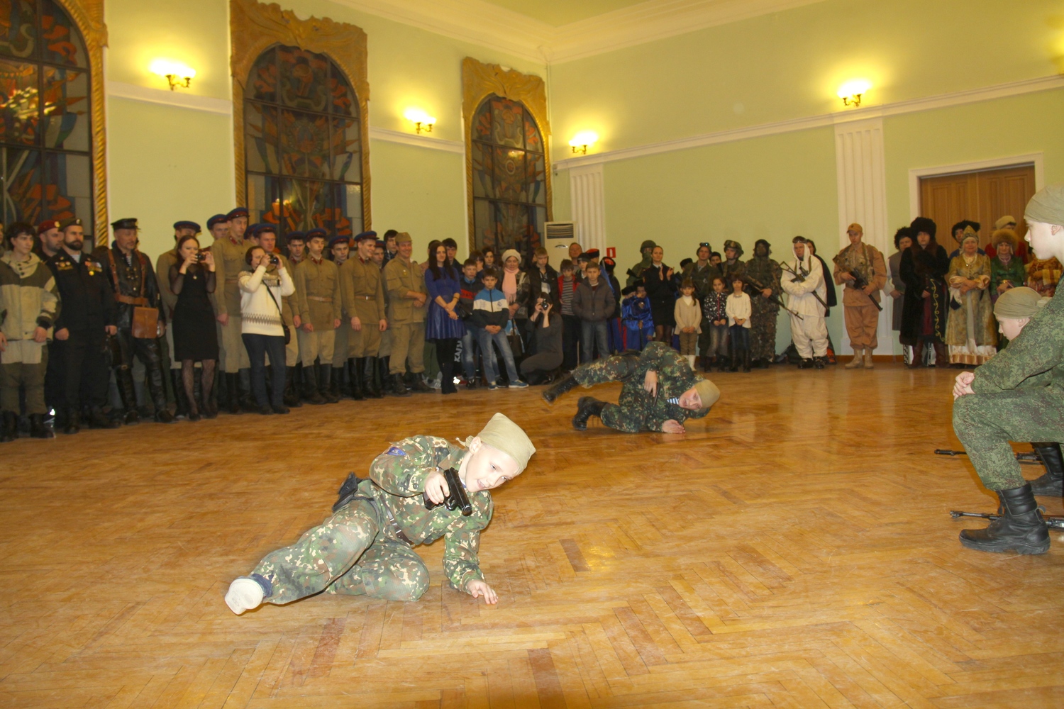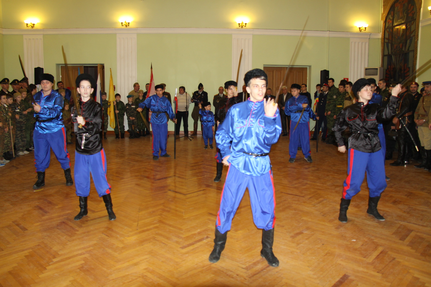 Юные защитники отечества воспитанники приходской воскресной школы храма Иоанна Воина прихода Святого Георгия Победоносца показали элементы начальной военной подготовке к службе в Российской Армии. Представителями поискового клуба «Рысь» (руководитель Жуков Александр Леонидович) была организованна выставка исторических предметов времен Великой Отечественной войны, найденных поисковиками при проведении поисковых вахт памяти. Представители Азовского военно-исторического клуба «Казачья слава» (руководитель Саманев Сергей Геннадьевич) порадовали всех исполнением казачьей песни и казачьим фехтованием. Одним из ярких выступлений мероприятия является выступление Региональной общественной организации боевых искусств (президент Козин Дмитрий Иванович). Все участники Рождественских встреч посетили музей военной истории расположенный в здании Дома Офицеров.