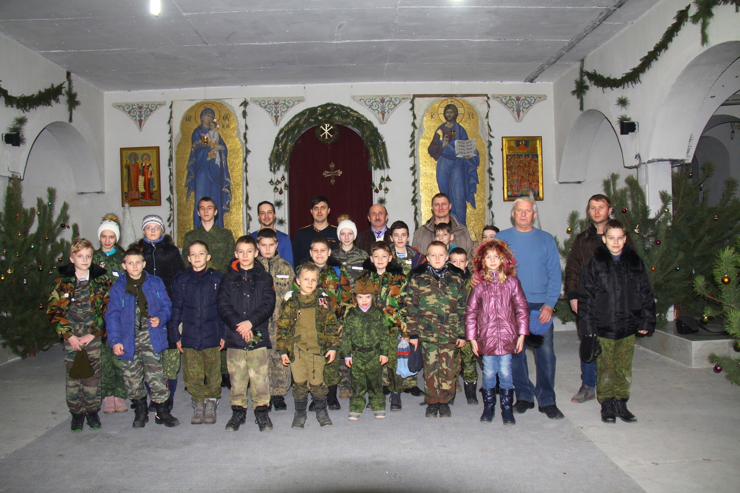 15 января 2017 года воспитанники воскресной школы прихода Святого Георгия Победоносца, занимающиеся по программе «Уроки мужества», приняли участие в Рождественском утреннике, который прошел в нижнем храме сорока севастийских воинов мучеников по благословению настоятеля прихода протоиерея Валерия Волощука. В этот же день во время учебных занятий для детей и их родителей прихожанкой нашего храма, мамой одной из воспитанниц, Ксенией Валерьевной Гуда была организована экскурсия по храму.