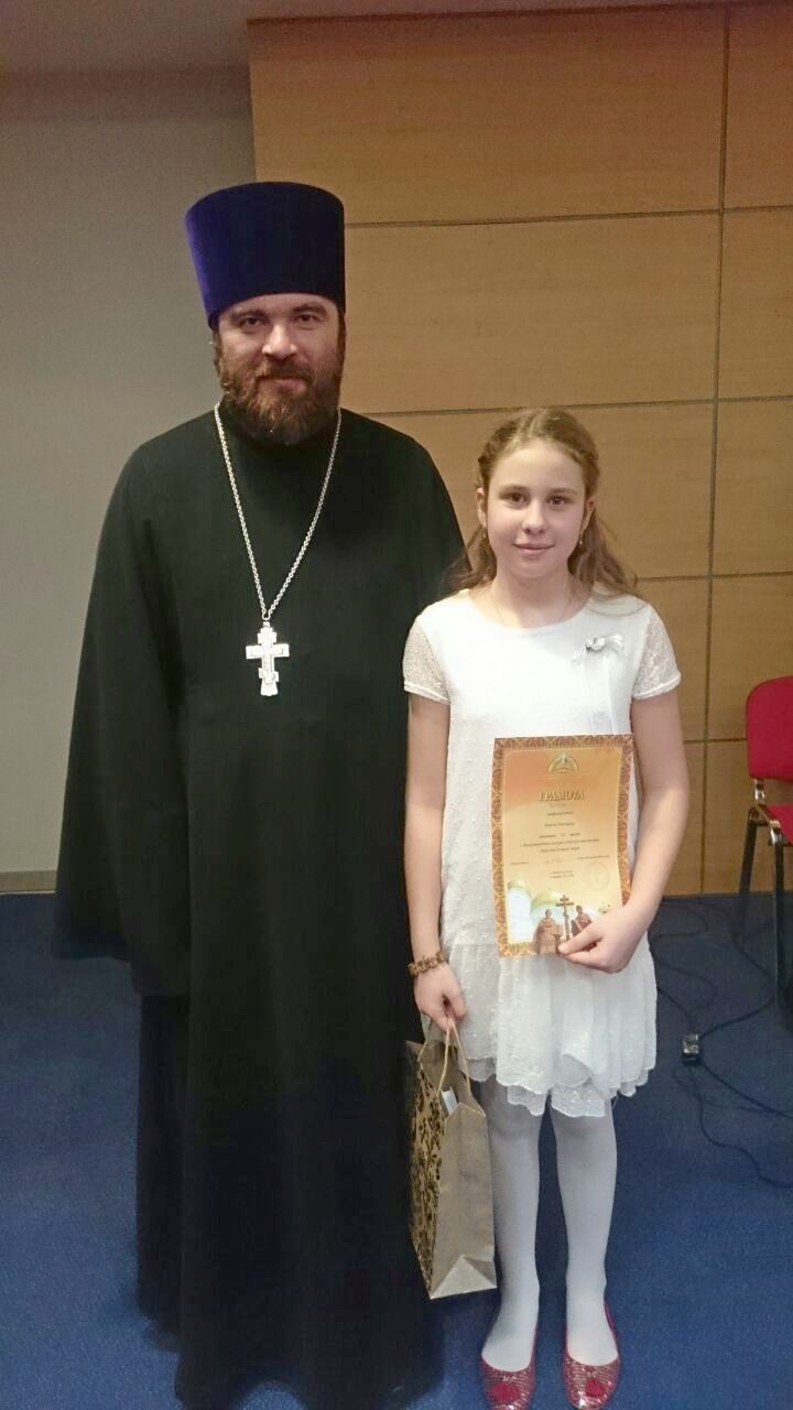 Слова благодарности прозвучали в адрес нашего педагога Лукояновой Ксении Юрьевне, которая готовила детей к конкурсу. Накануне в рамках выставки «Дон Православный» памятным подарком наградили Машу Ставицкую, которая заняла 3-е место в Ростовской Епархии. Поздравляем Машу Ставицкую, Ариадну Жаркову, Надю Чухутову, Дашу Махнович и желаем им помощи Божьей и новых творческих побед!