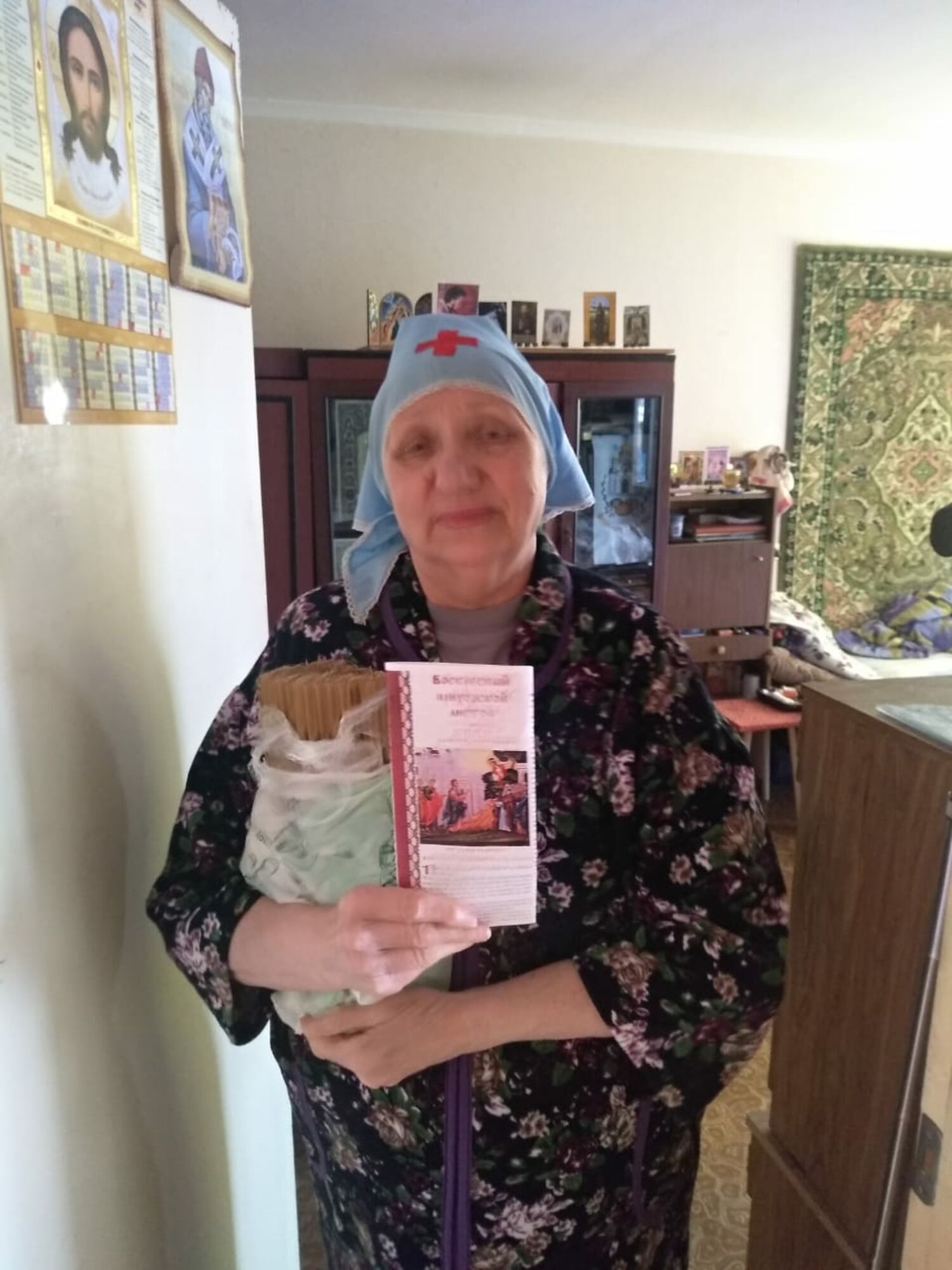 В этот же день сестры милосердия посетили на дому своих инвалидов и поздравили их с праздником Сретения Господня. Каждому был вручен продуктовый набор и освященные свечи.