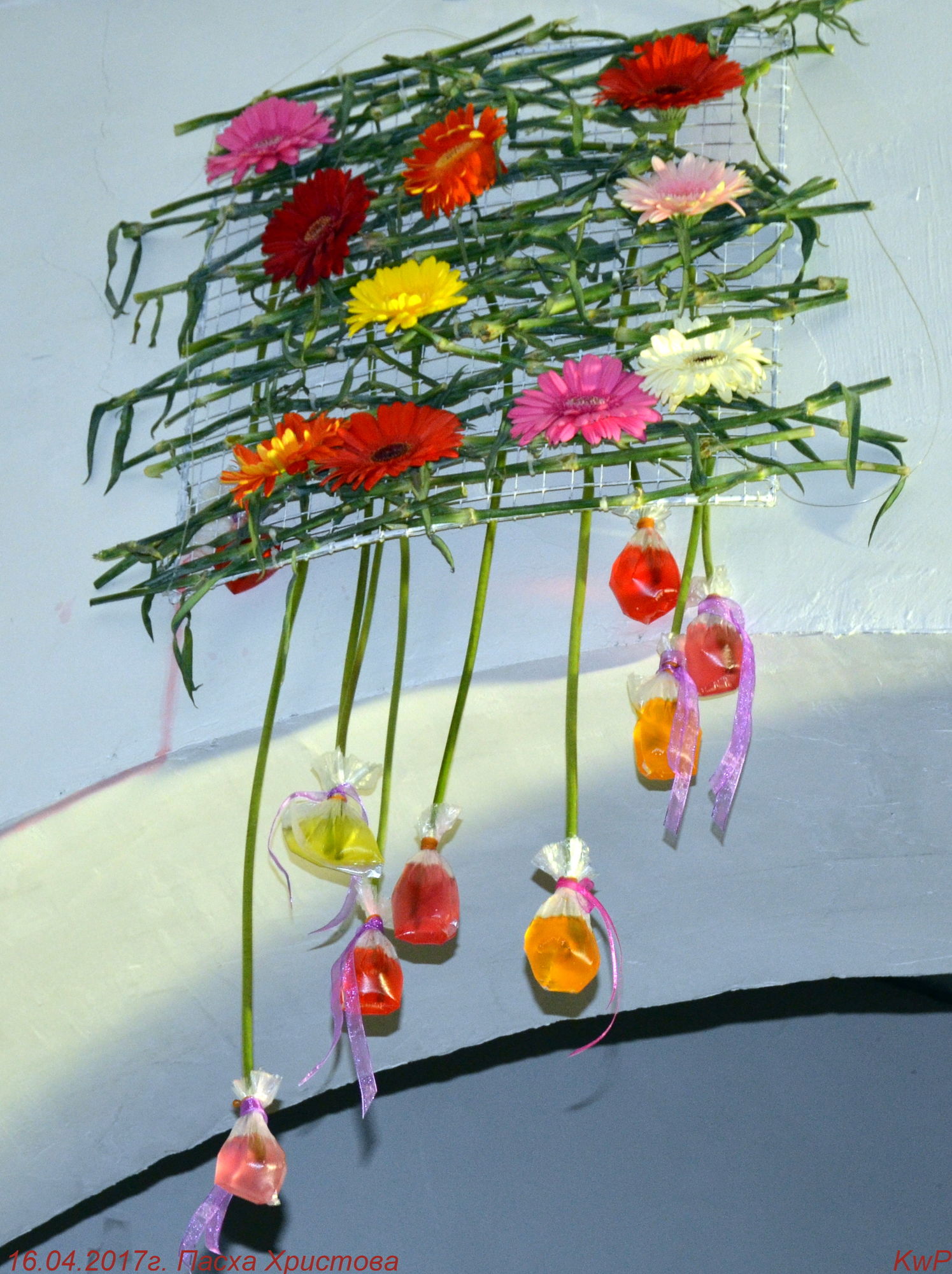 В подготовке проведения этого праздника приняли активное участие сестры милосердия и прихожане Храма Иоанна Воина. Сестры и наши прихожане дежурили на подсвечниках, отвечали на звонки по телефону, продавали свечи на подворье, раздавали поздравительные открытки и памятки, которые готовит наша Анечка Алексеевна, печатает наша сестра Елена. Также сестры участвовали в подготовке праздничной трапезы. Большая работа была проведена нашими флористами. Красными герберами был украшен алтарь нового строящегося Храма. Сияли пасхальные яйца, созданные из гвоздик. По благословению настоятеля протоиерея Валерия Волощука, впервые сестры милосердия Храма Иоанна Воина вместе с нашими братьями читали деяния Святых Апостолов.