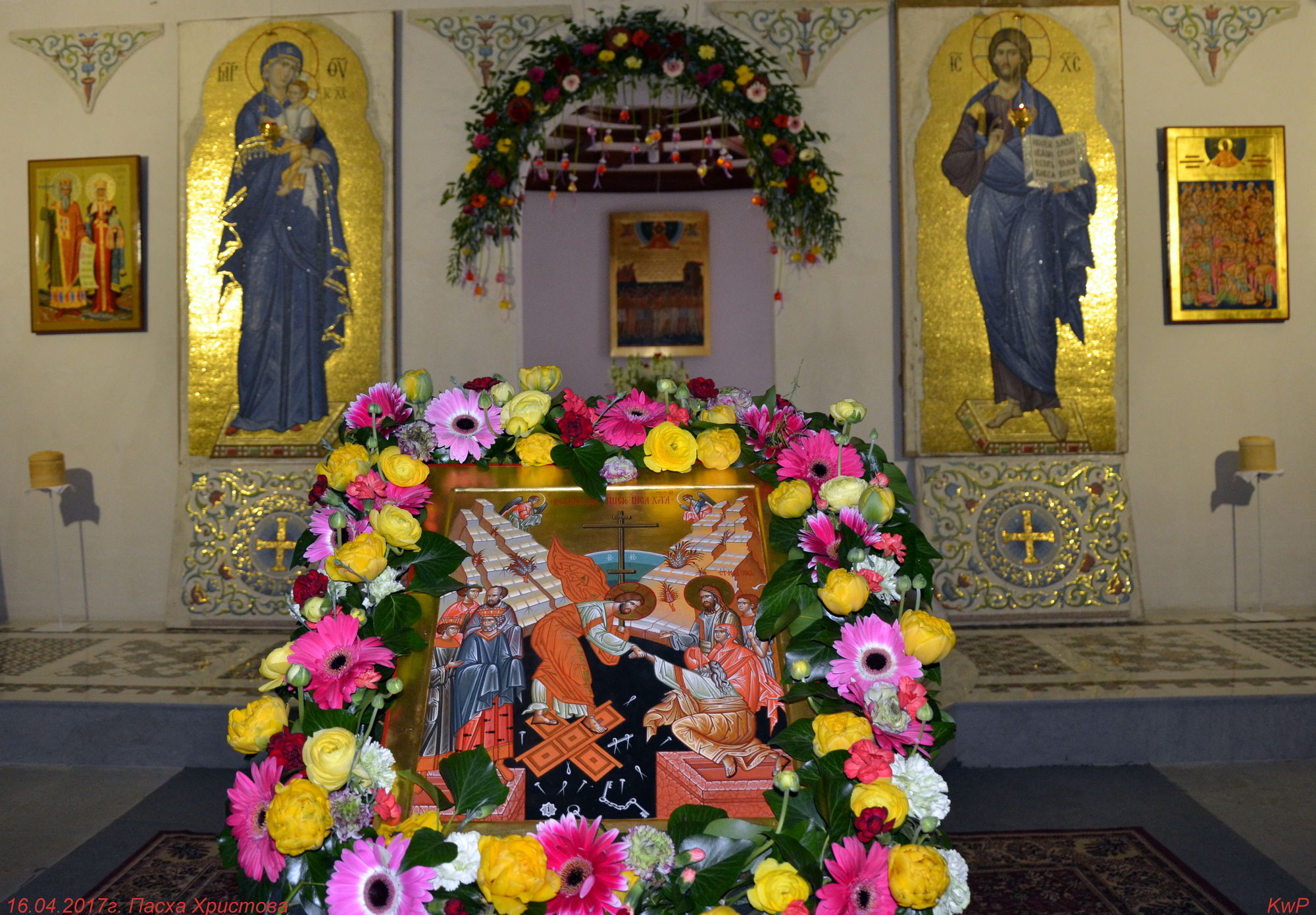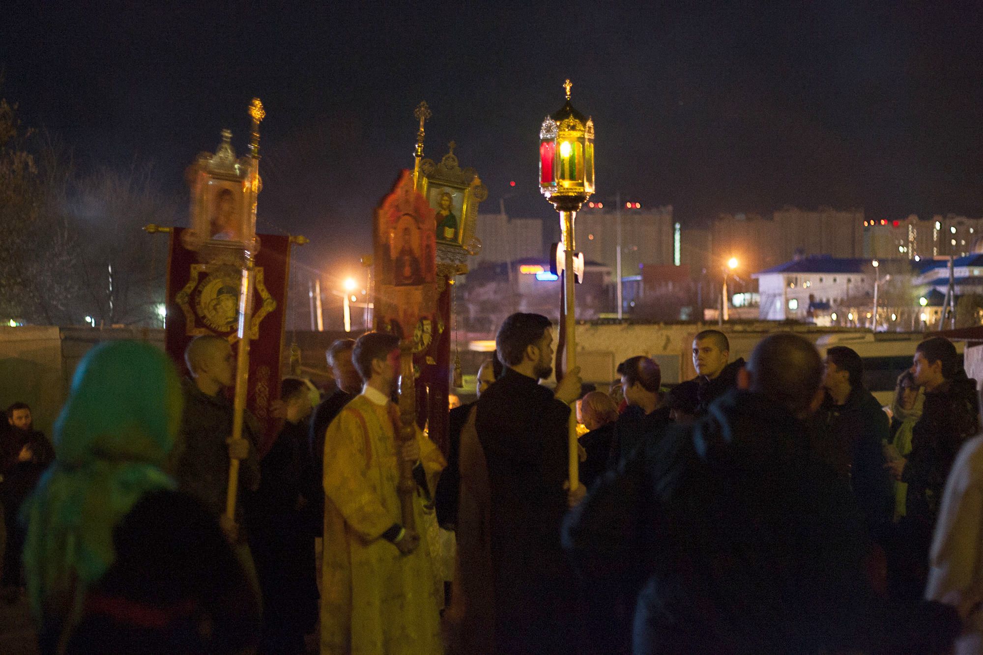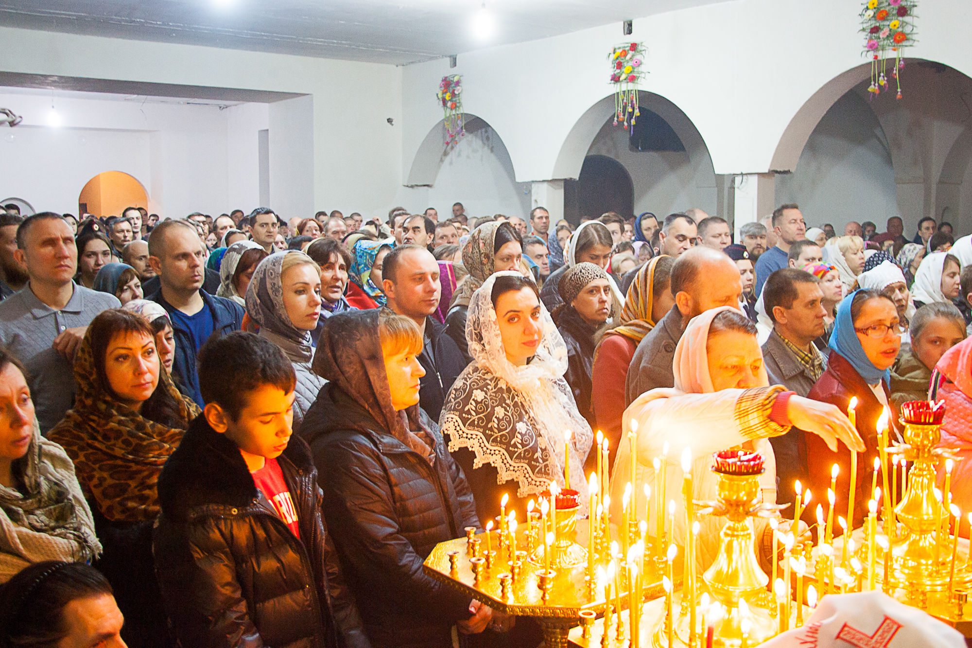 Наш приход встретил самый главный праздник — Воскресение Господа и Спаса нашего Иисуса Христа. Большой храм 40 Севастийских мучеников едва вместил всех прихожан. С 16 часов в храме читали Деяния апостолов, а за пол часа до полуночи началась Пасхальная полунощница, на которой в алтарь занесли Плащаницу. Торжественный колокольный звон ознаменовал начало Крестного хода. Людей было так много, что они заполнили весь периметр вокруг строящегося храма. «Христос Воскресе» — восклицали священнослужители, «Воистину Воскресе!» — хором отвечали ликующие прихожане. «Христос воскресе из мертвых, смертию смерть поправ и сущим во гробех живот даровав» — пел хор. На литургии на разных языках читалось начало Евангелия от Иоанна.