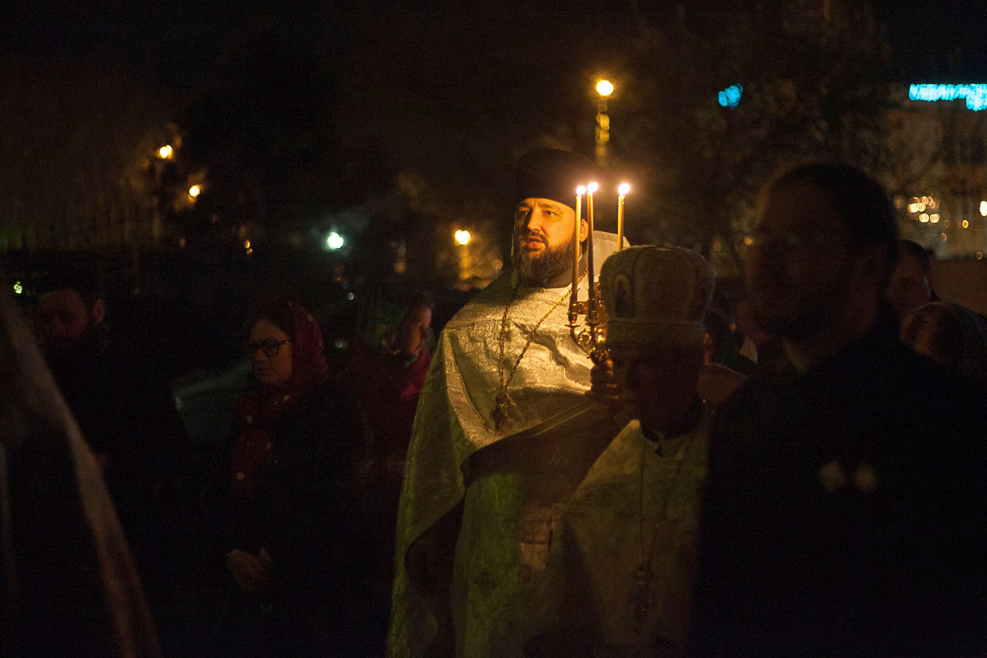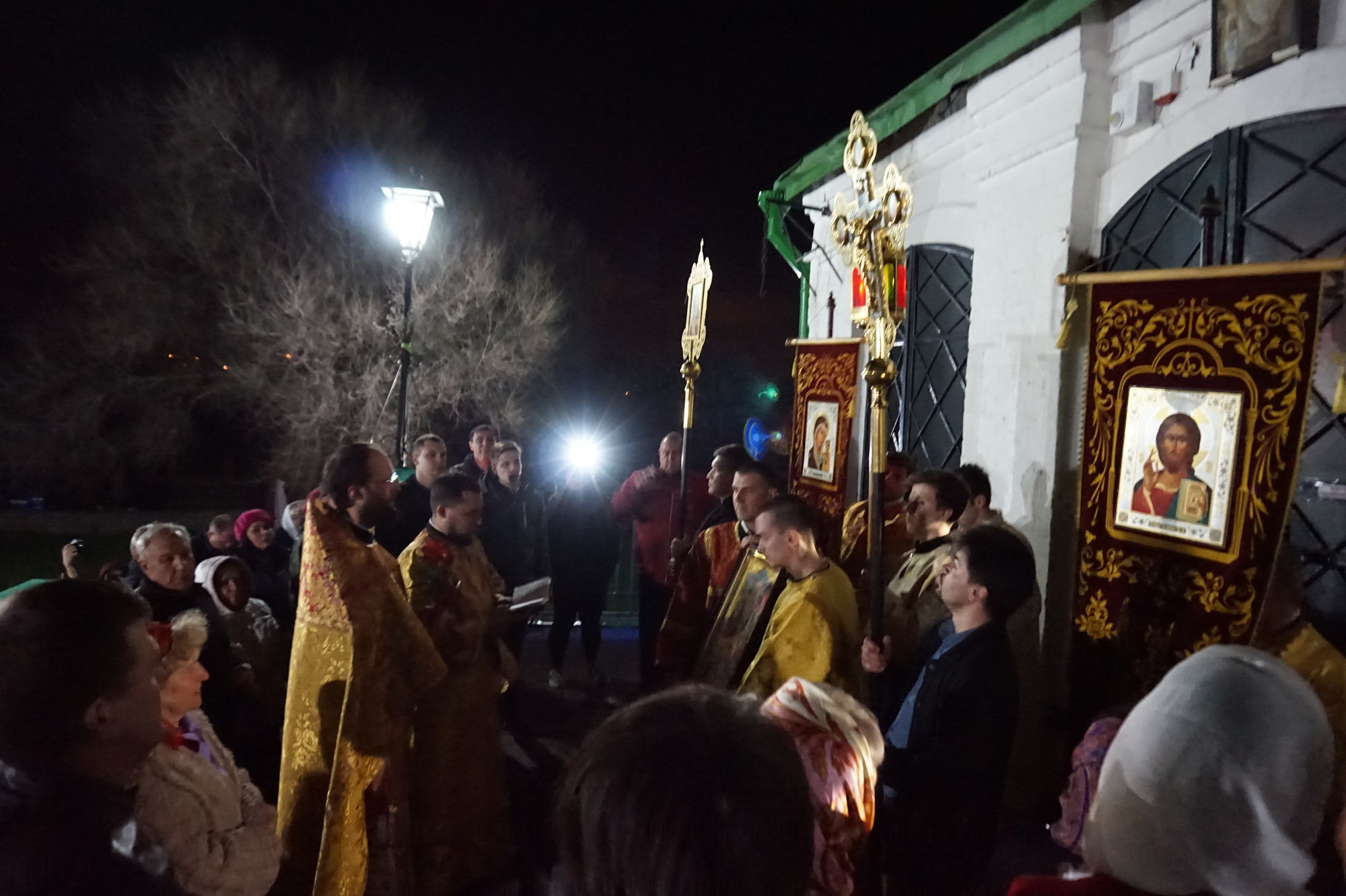 По традиции прозвучало Огласительное слово святителя Иоанна Златоуста, который призывает всех радоваться: «Богатии и убозии, друг с другом ликуйте. Воздержницы и ленивии, день почтите. Постившиеся и не постившиеся, возвеселитесь днесь...» и возглашает вечную победу Христа над смертью и адом: «Где твое, смерте, жало? Где твоя, аде, победа? Воскресе Христос, и ты низверглся еси. Воскресе Христос, и падоша демони. Воскресе Христос, и радуются ангели. Воскресе Христос, и жизнь жительствует. Воскресе Христос, и мертвый не един во гробе». Иерей Александр Орешин прочитал Пасхальное послание Святейшего Патриарха Кирилла архипастырям, пастырям, диаконам, монашествующим и всем верным чадам Русской Православной Церкви.