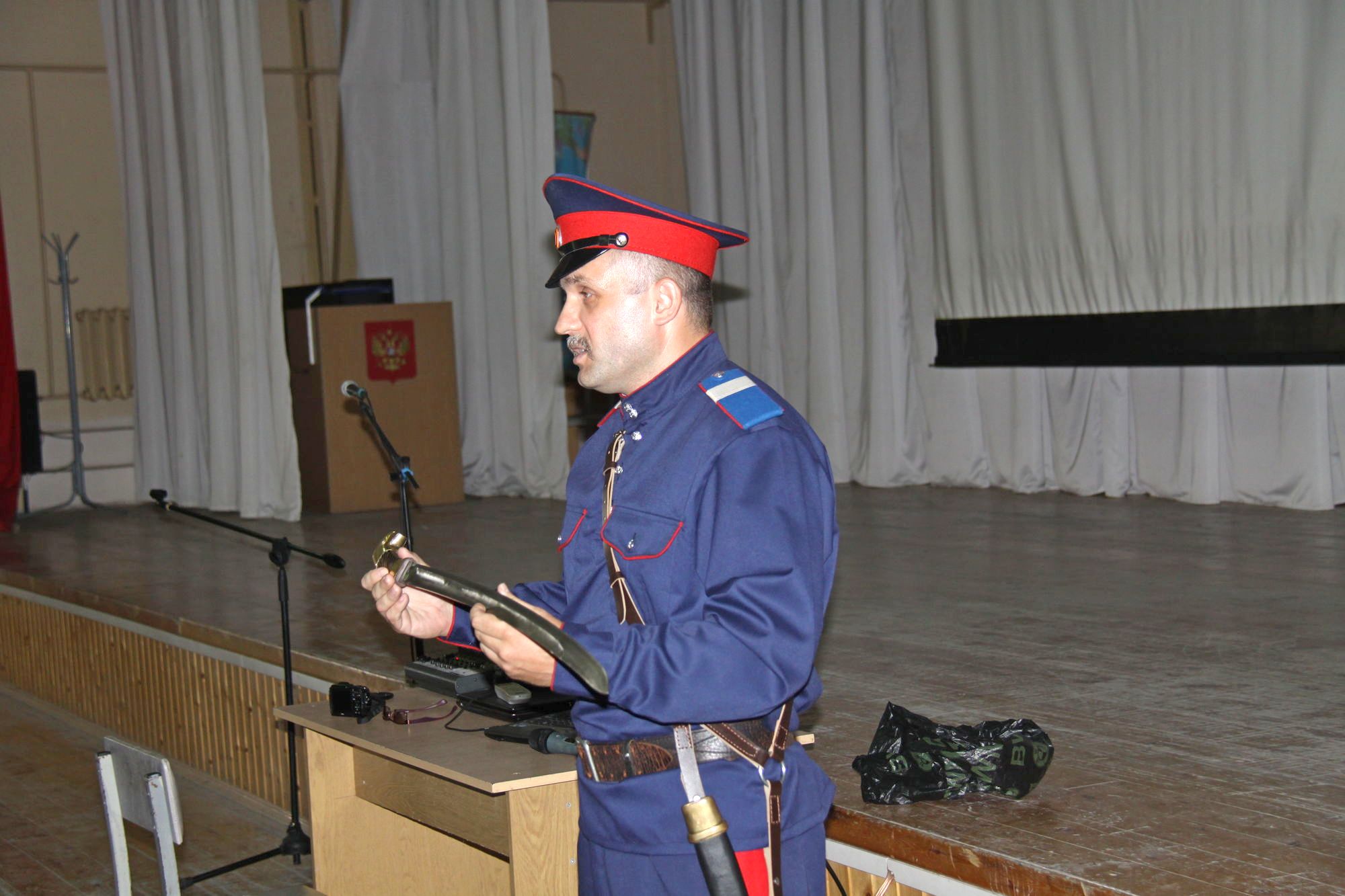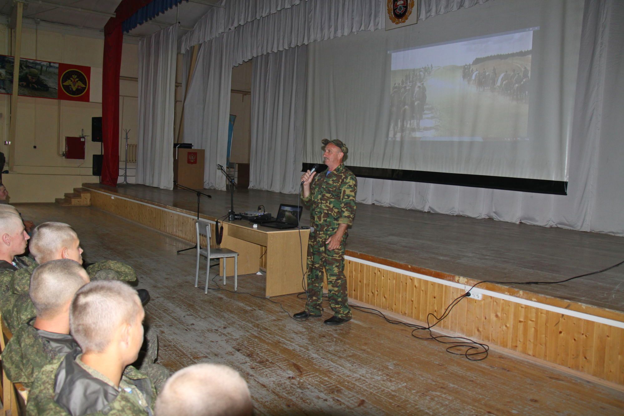 В мероприятии приняли участие воспитанники и инструкторы-наставники приходской воскресной школы храма Иоанна Воина. Солдаты и офицеры узнали о ратном подвиге казаков в различные исторические времена и о современной службе казаков, направленной на благо Отечества.