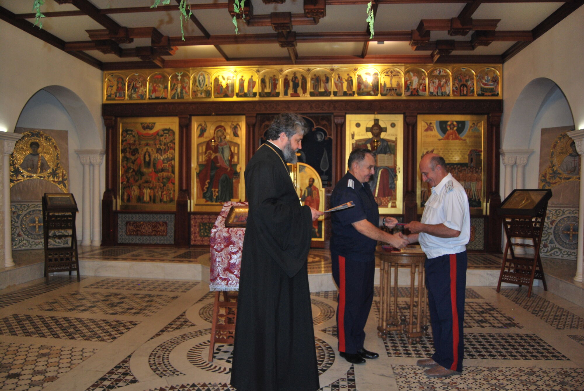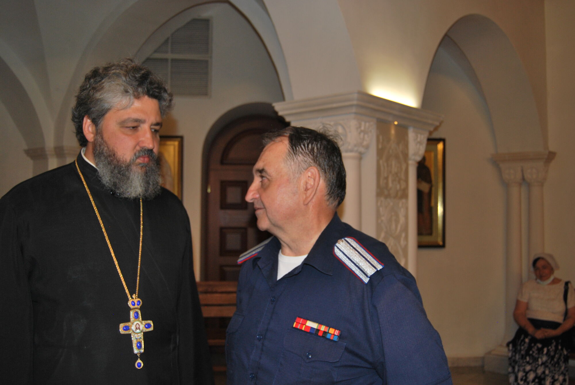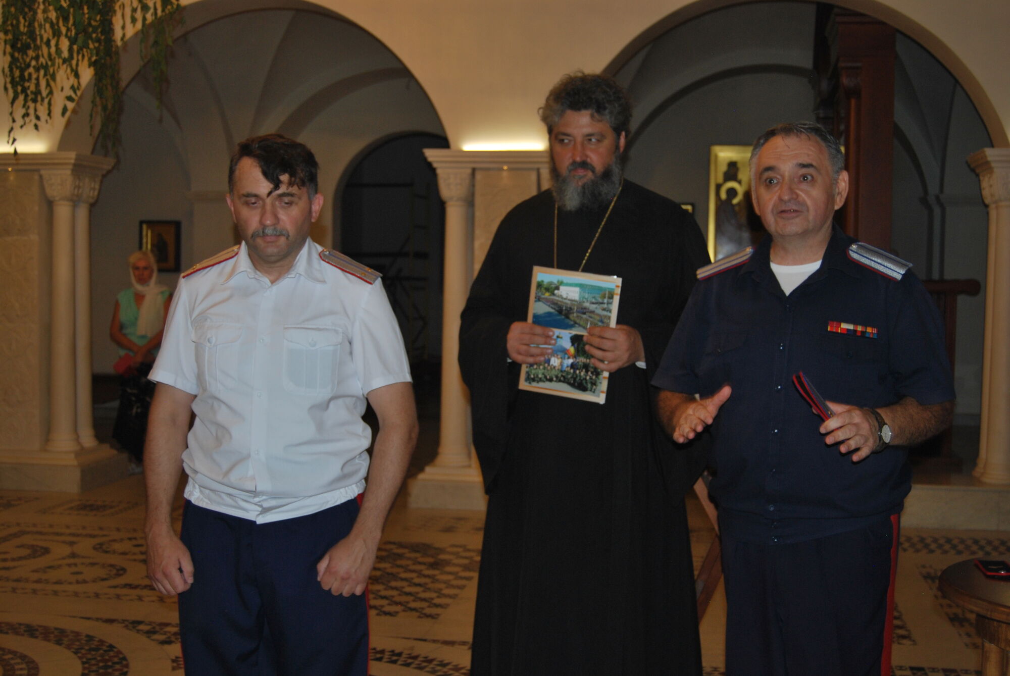 Приказы о присвоении чинов и погоны вручали настоятель прихода Святого Георгия Победоносца протоиерей Валерий Волощук и начальник штаба — заместитель атамана Ростовского казачьего округа полковник Момот Геннадий Владимирович. Отец Валерий поздравил собравшихся с присвоением чинов и благословил на дальнейшее общественное, социальное и воинское служение нашей Родине России.