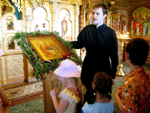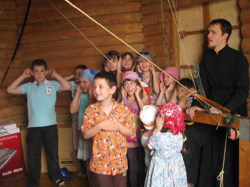 16 июня 2011 г. Наш приход посетила группа воспитанников воскресной школы при Свято-Вознесенском храме (на Братском кладбище). Диакон Роман Зимин рассказал детям о храме, вместе они поднялись на колокольню, где ребята поупражнялись в звонарном мастерстве.