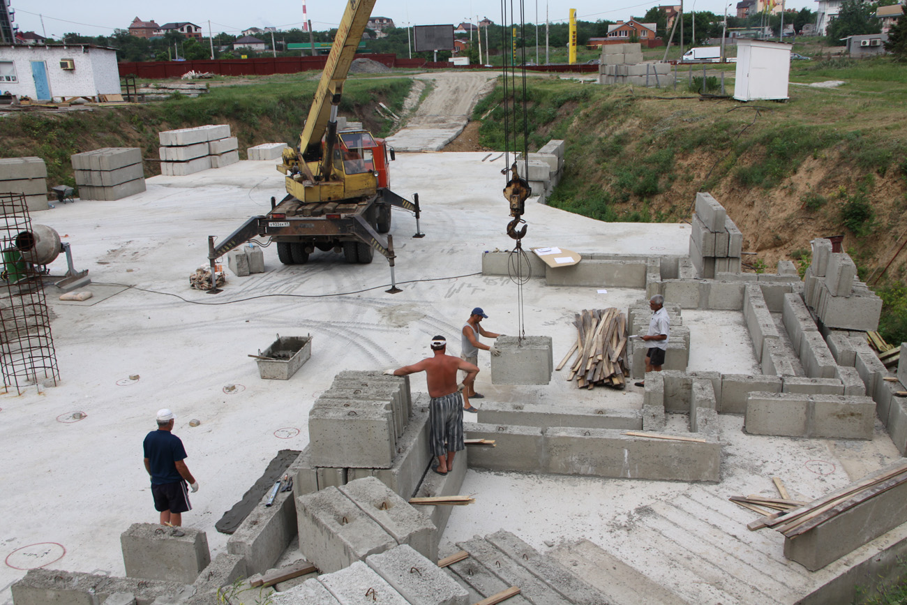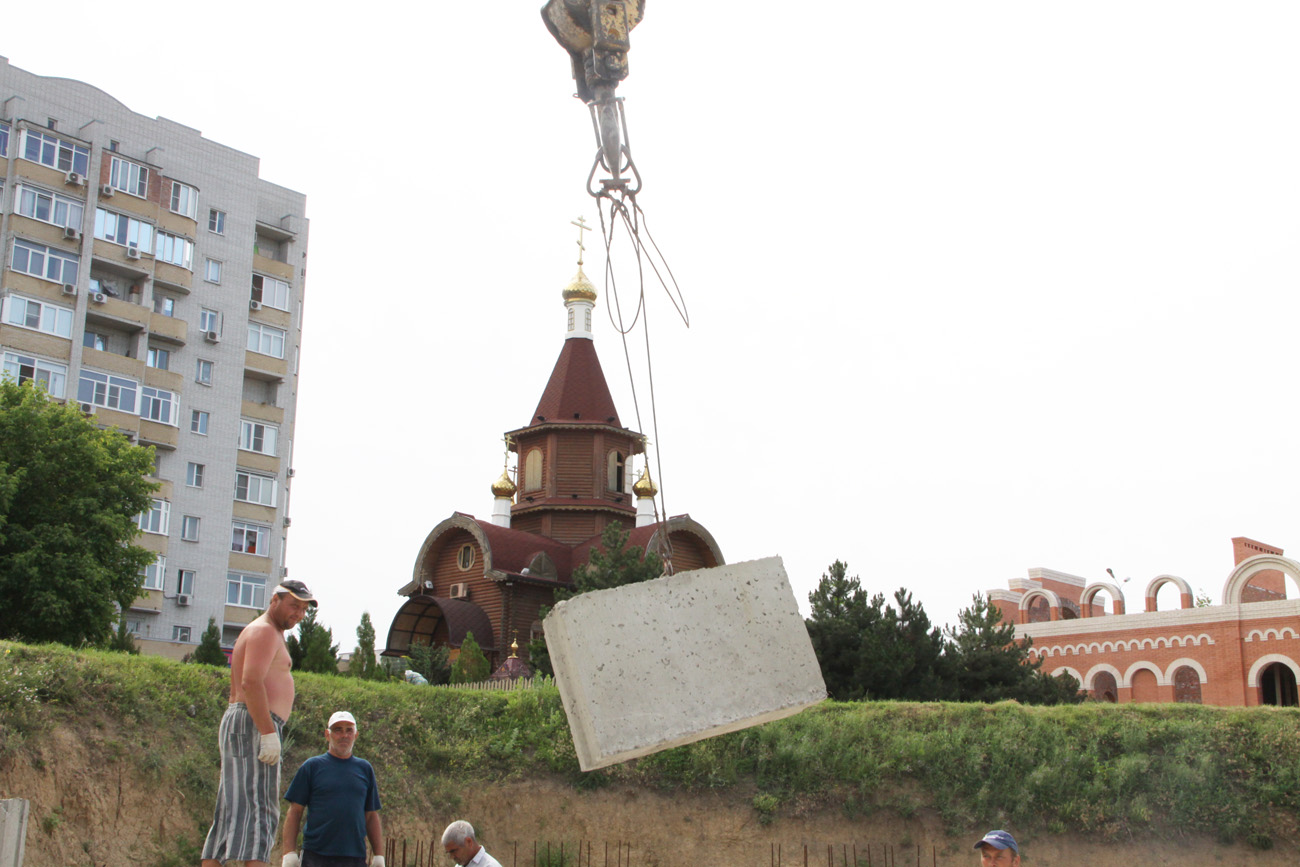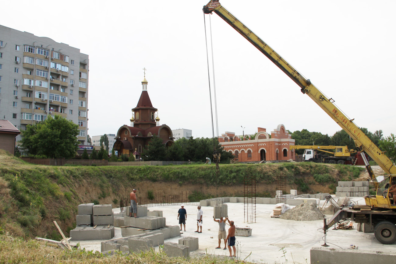 16 июня 2012 года на строительной площадке прихода святого Георгия Победоносца по благословению настоятеля прихода протоиерея Валерия Волощука начался монтаж фундаментных блоков для возведения стен строящегося храма.