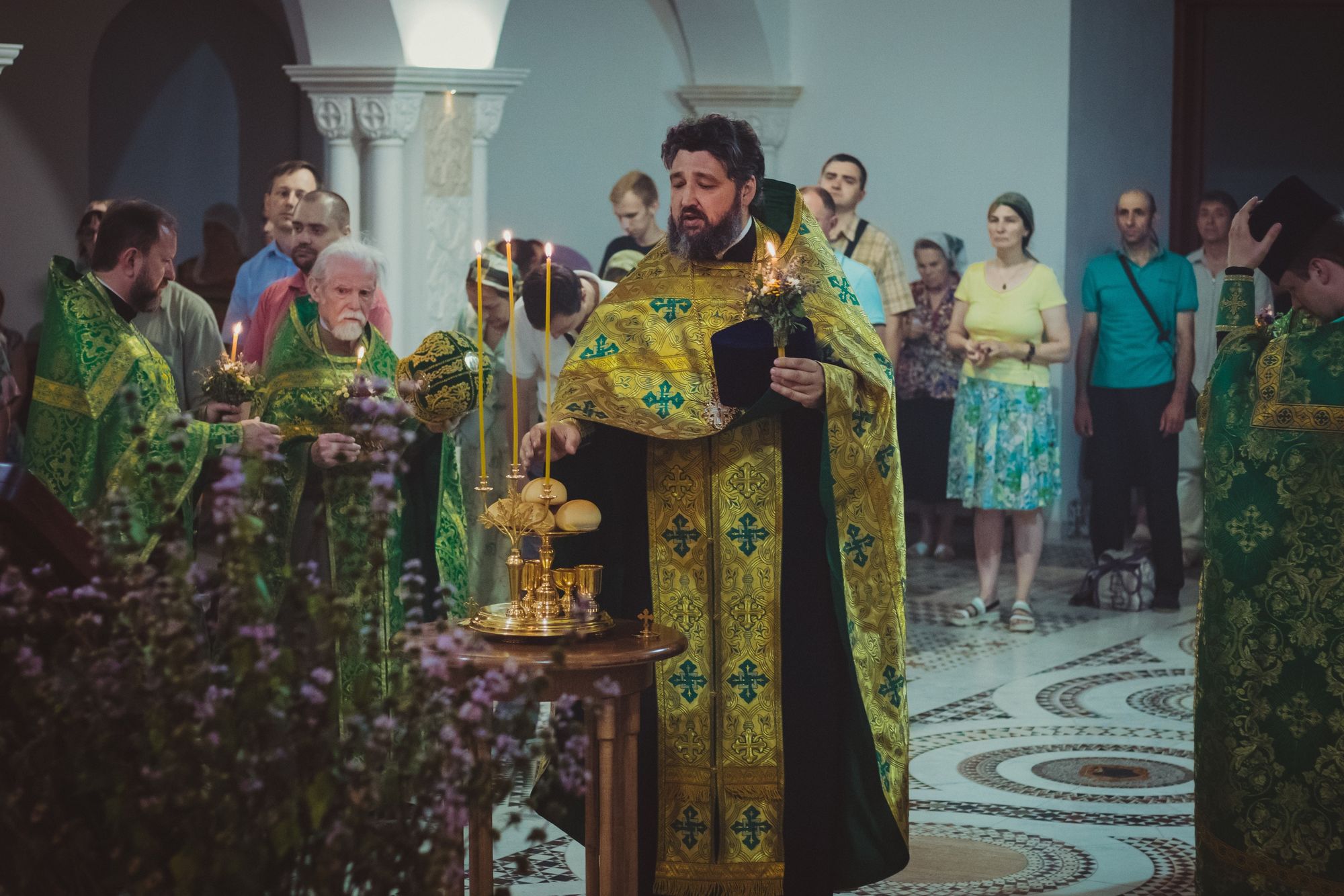 Многие, приходившие в храм, приносили с собой букеты из пряных трав. Их запах наполнял воздух, как Святой Дух — дом, где молились апостолы в день Пятидесятницы.