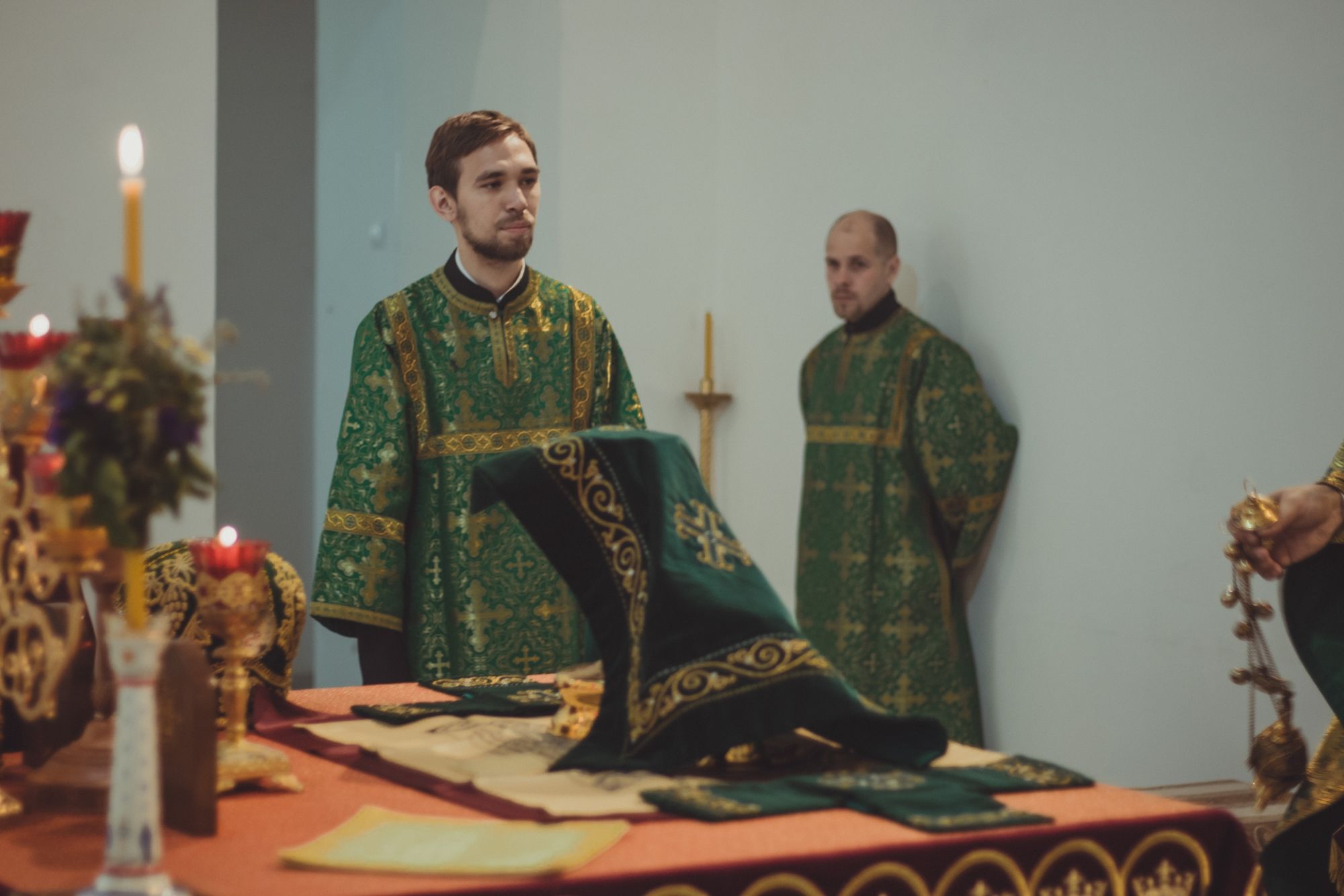 Всю прошедшую неделю сестры и прихожане готовили наши храмы к празднику. Под руководством флориста международного класса Валерии Букиной были сплетены украшения из полевых трав и пшеницы для нашего первого деревянного храма Иоанна Воина, для криптового храма 40 Севастийских мучеников и Воскресенского войскового собора.