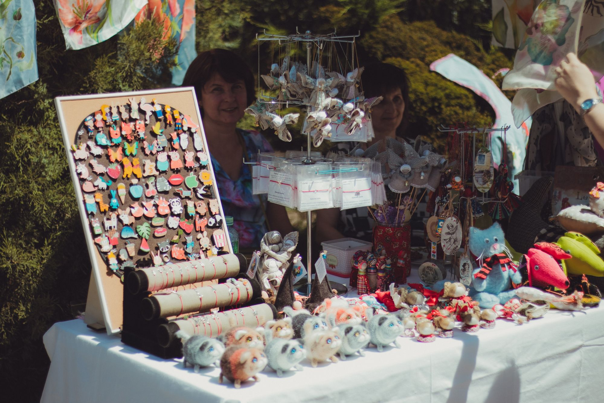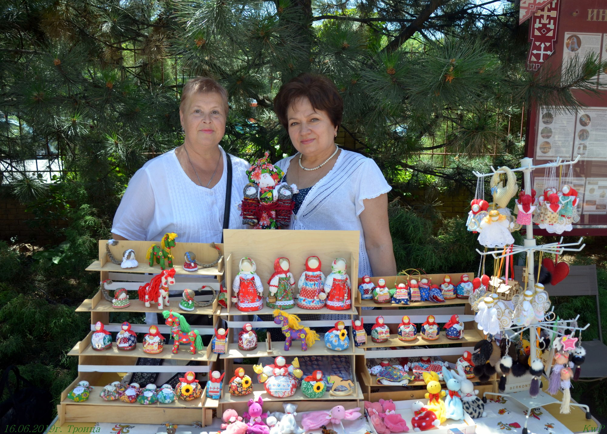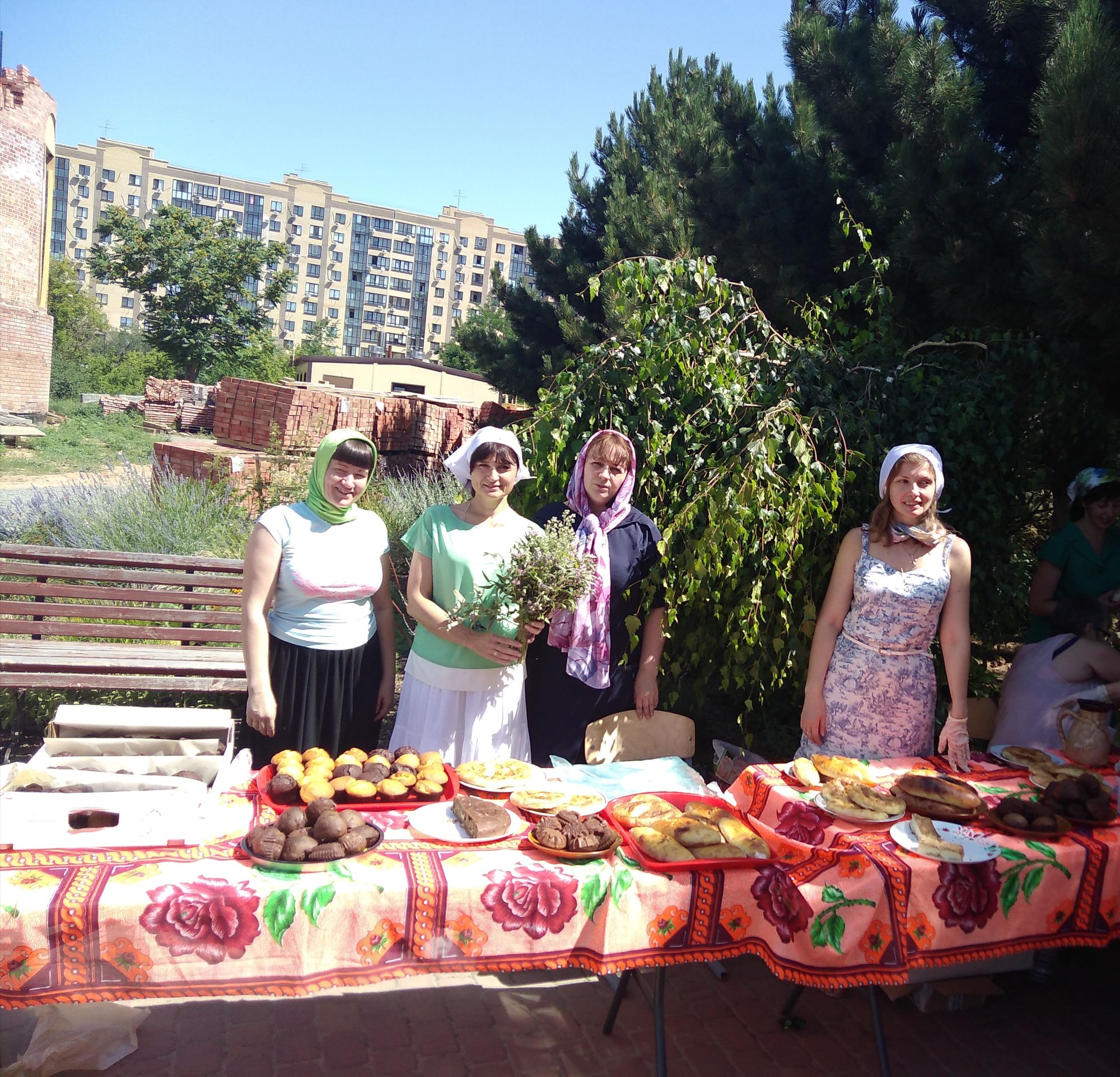 После праздника состоялась традиционна троицкая ярмарка. Ежегодно в этот день, все наши направления Центра «Дар Божий» выставляют свои работы. Это и букеты из полевых цветов от нашей флористической мастерской, и куклы, сделанные своими руками сестрами Центра «Народная кукла», и расписные платки из натурального шелка нашей мастерской батика. По благословению настоятеля протоиерея Валерия Волощука доброй традицией стало проведение в этот день благотворительной акции «Доброе сердце». Сестры и прихожане пекут выпечку: пирожки с горохом, пряники, кексы, пироги. Все это раздается за пожертвование. Обязательно печатаются и раздаются воскресные листовки, в которых рассказывается о празднике, указывается расписание богослужений. Все собранные деньги идут на социальные нужны: лекарства и памперсы нашим инвалидам, продуктовые наборы, на оплату дорогого лечения.
