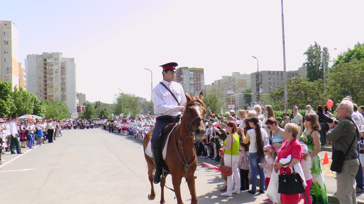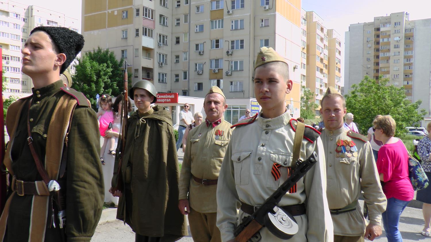В этом году они совместно с действующими военнослужащими Южного Военного Округа организовали прохождение знаменной группы, одетой в форму солдат времен Великой Отечественной Войны. Дети, участники парада, представляли различные рода войск Российской Армии и были одеты в соответствующую форму одежды.