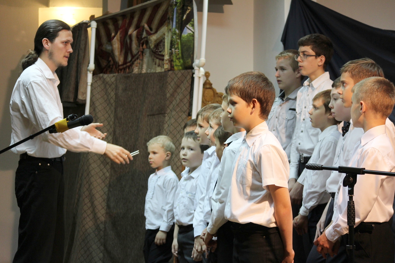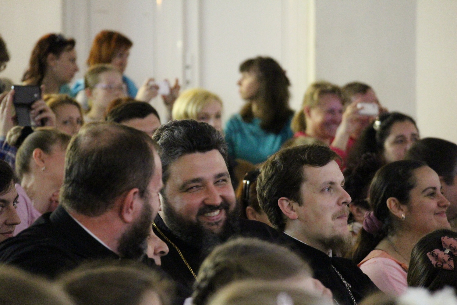 Концерт начался выступлением хора самых младших учеников школы под руководством матушки Ксении Волощук. Детский хор исполнил пасхальные песни. Следом выступил недавно созданный хор мальчиков вместе со своим руководителем Кириллом Владимировичем.