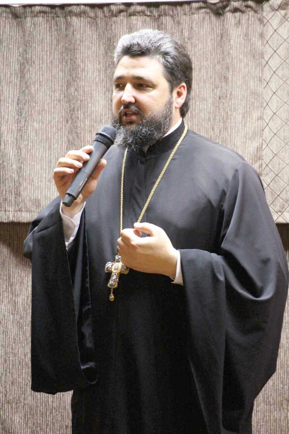 Перед спектаклем театра «Преображение» матушка Ксения Волощук и настоятель нашего прихода протоиерей Валерий Волощук поздравили всех с праздником Пасхи, поблагодарили учеников и педагогов школы за прекрасный праздник и подарили памятные подарки.