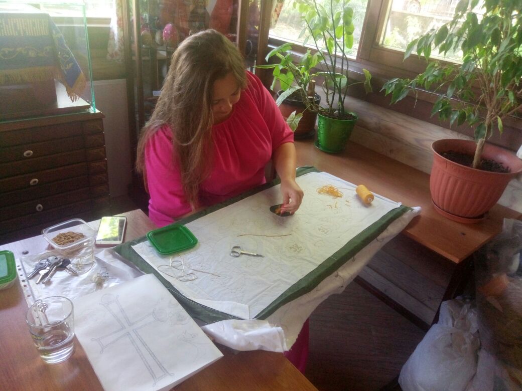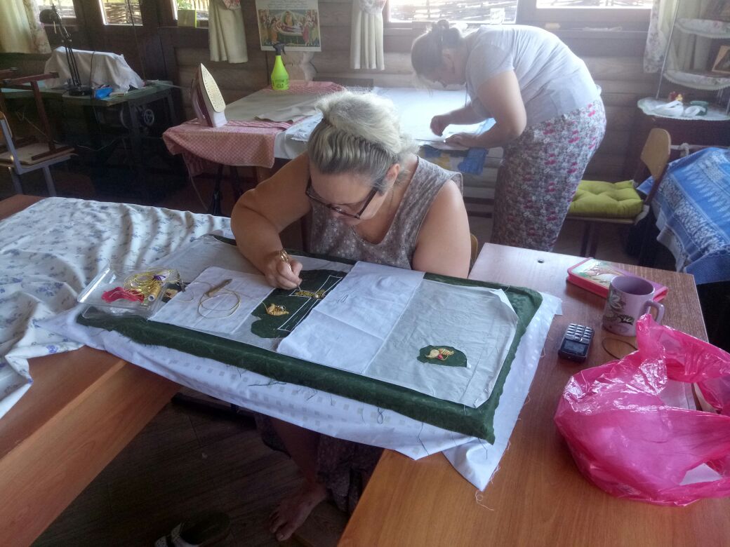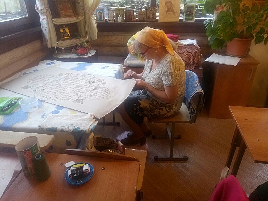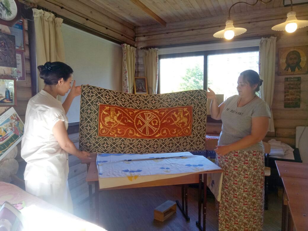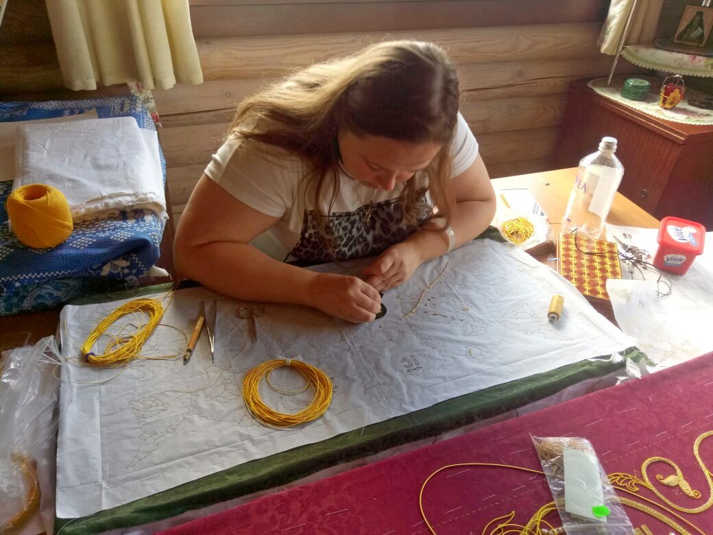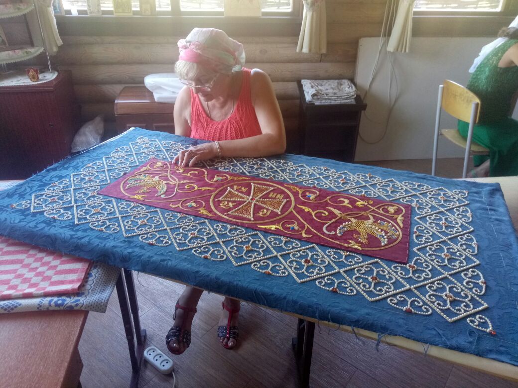 Работа над пеленами носила соборный характер. Над ними трудились, как опытные мастерицы, так и учащиеся первого и второго курса. Труд золотошвеек тяжелый, кропотливый, трудоемкий, требующий от вышивальщиц много умений и знаний, как в области истории церковного искусства, церковных канонов, грамотного применения техник золотного шитья.