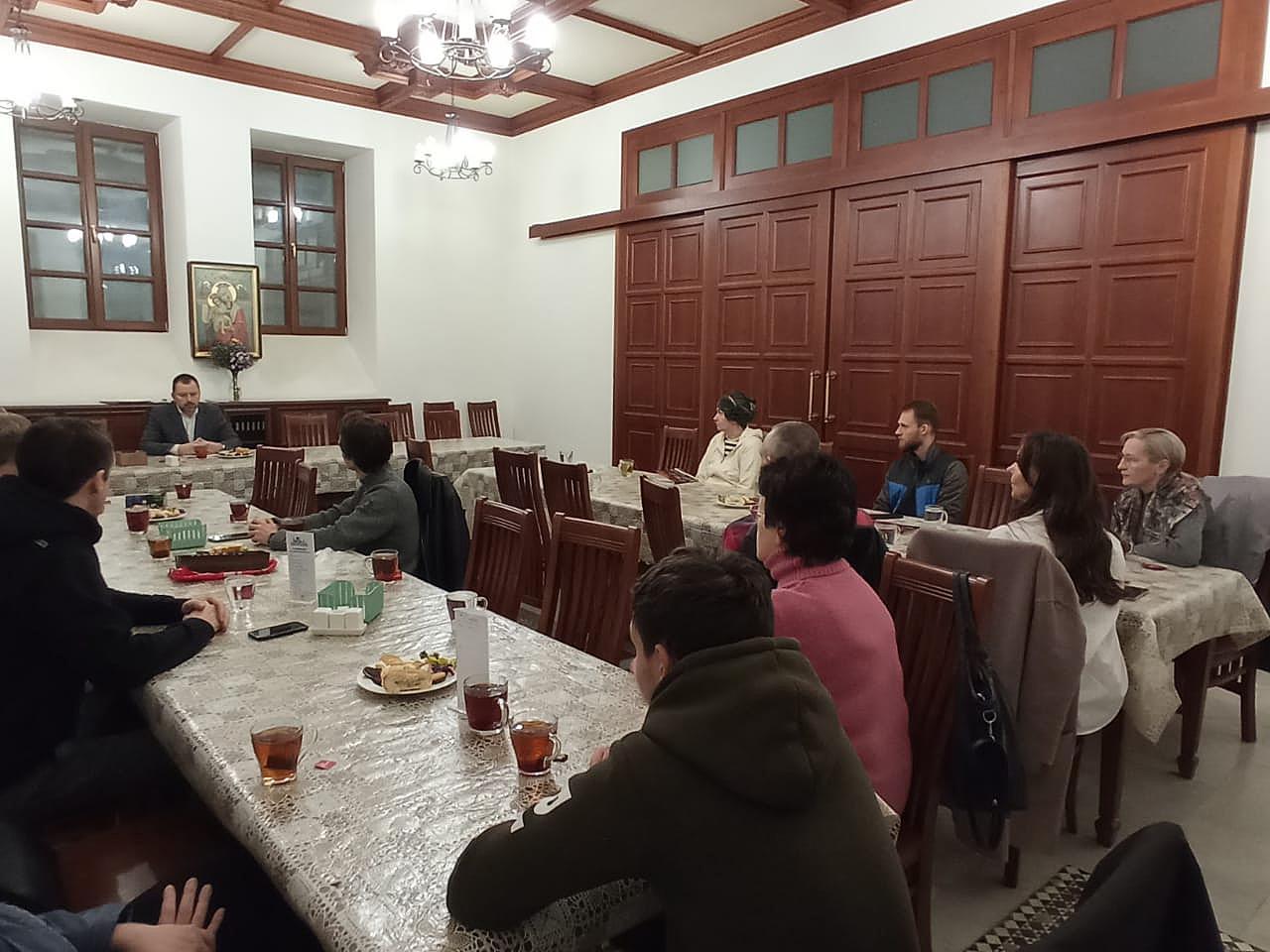 После этого участники встречи смогли задать нашему собеседнику вопросы. Их было очень много. Вопросы касались содержания термина «патриотизм», связи патриотизма с верой в Бога, современных событий, фактов из отечественной и мировой истории. Достаточно сказать, что из всех наших богословских бесед прошедшая получилась самой длительной.