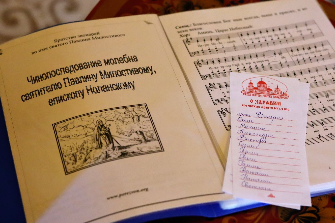 Утром выпускники собрались для совместной молитвы в храме святого мученика Иоанна Воина. Настоятель прихода протоиерей Валерий Волощук поздравил звонарей, сказал напутственное слово, после чего был совершен молебен святителю Павлину Милостивому. По окончании отец Валерий вместе с руководителем школы церковных звонарей Ольгой Павловной Шевчук вручил новоиспеченным звонарям дипломы. Радостно и то, что на празднике присутствовали и ученики 14-го набора, которым только предстоит изучить все премудрости звонарного мастерства.