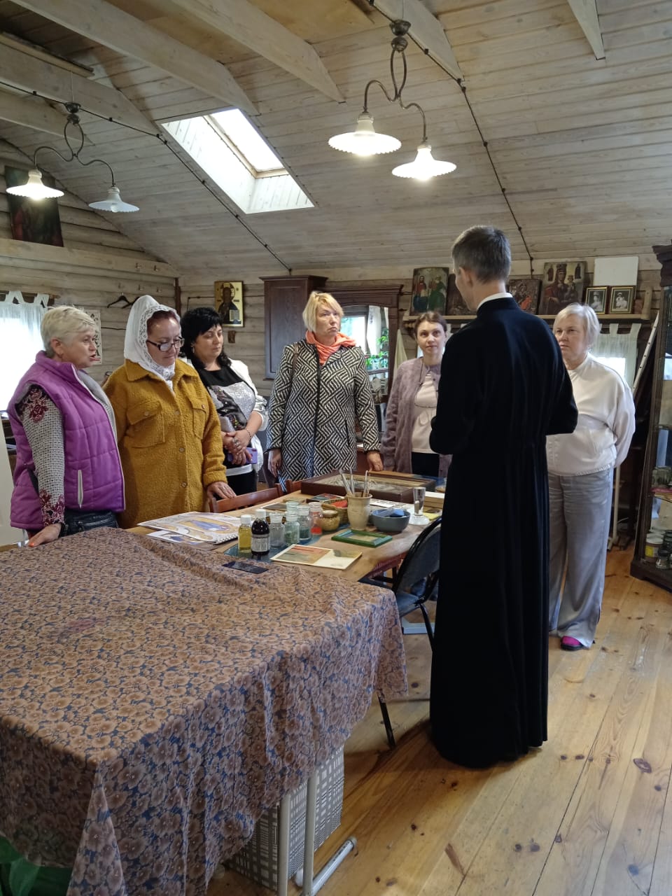 Примером для их будущей деятельности стала выставка кукол выпускниц Семейного центра "Дар Божий", а также коллекция вышивок рукодельниц прошлого века. Первокурсницы и сами являются талантливыми творцами. Каждая оформила на своём столе мини-выставку своими работами. Мы даже успели на занятии смастерить куколку для колыбели - "Кувадку"!
