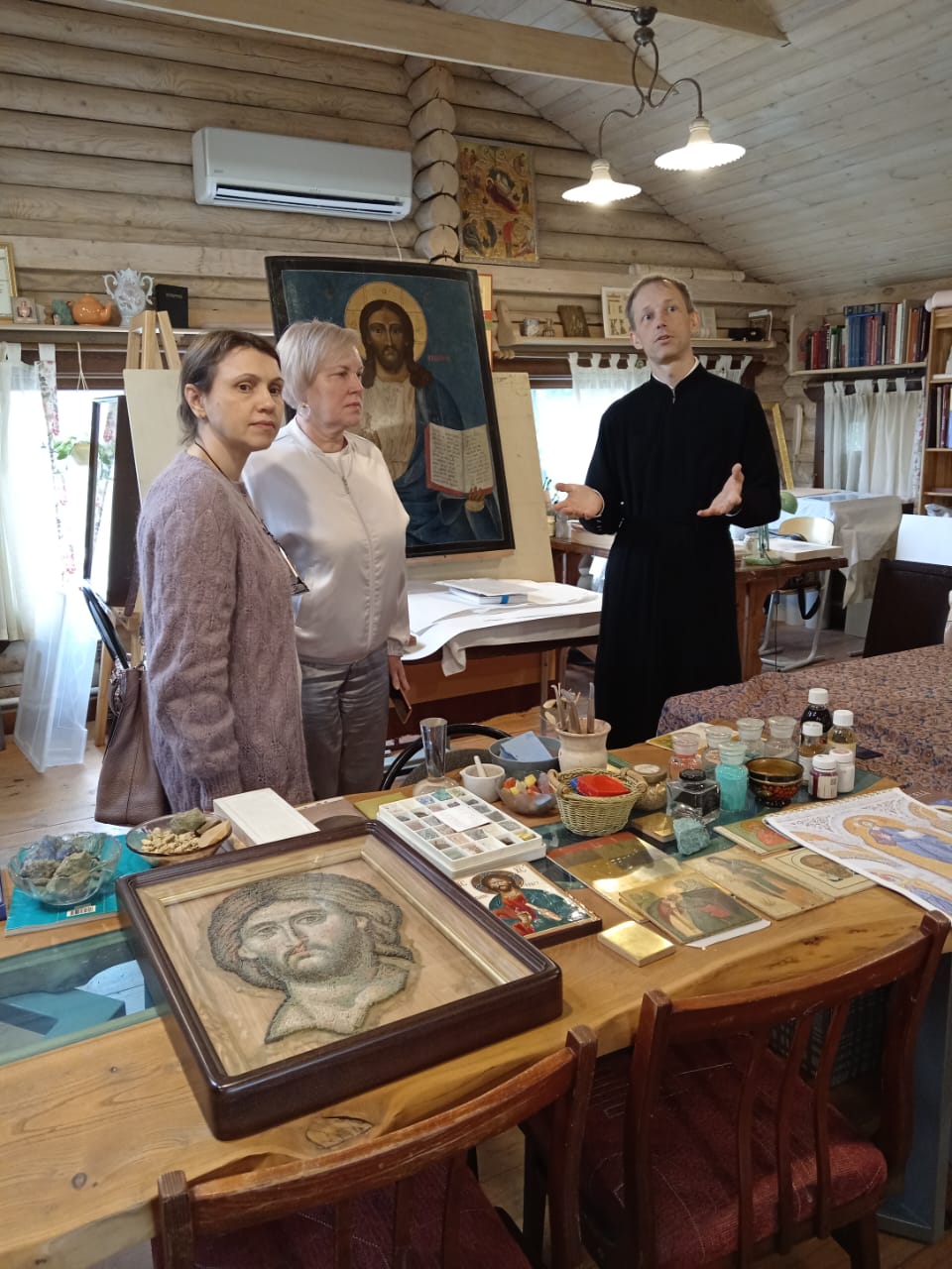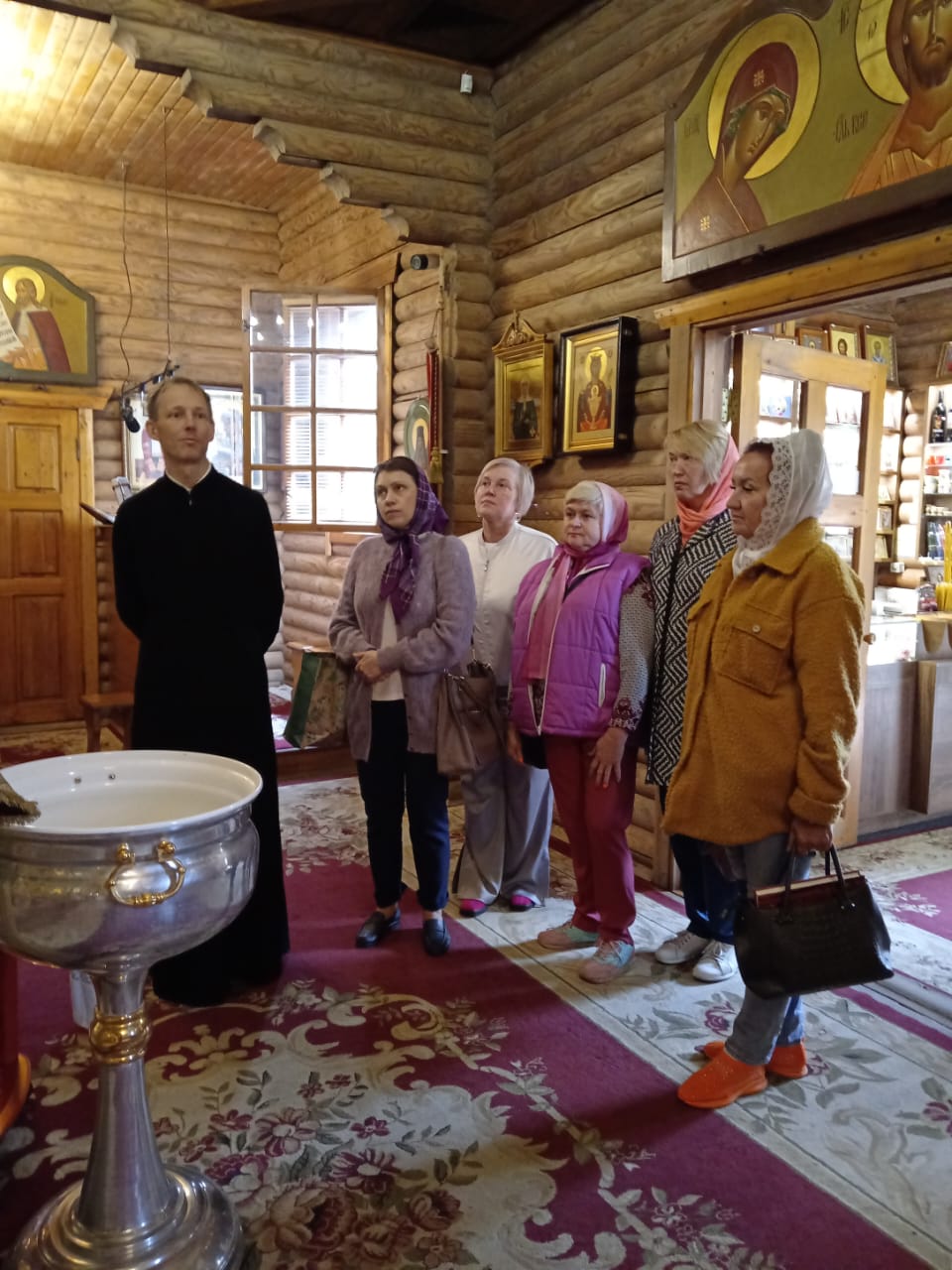 После занятий алтарник Сергей Александрович провел познавательную экскурсию по приходу: по двум храмам, мастерским и Георгиевскому парку.