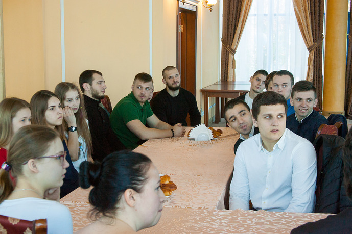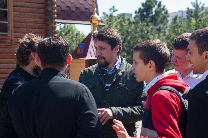 Отец Валерий поднимал серьезные и весьма для нас актуальные темы, например - как быть православным молодым человеком в не православной среде, о вере и о том, как ее достойно являть окружающим, поговорили мы и о социально важных вопросах, связанных с церковью. Ребята задавали интересующие и наболевшие вопросы. Отец Валерий рассказал также нам о своих епархиальных послушаниях - он является председателем Архитектурно-искусствоведческой комиссии Донской митрополии, председателем Епархиального Церковного суда и руководителем Епархиального отдела по взаимоотношениям Церкви и общества.