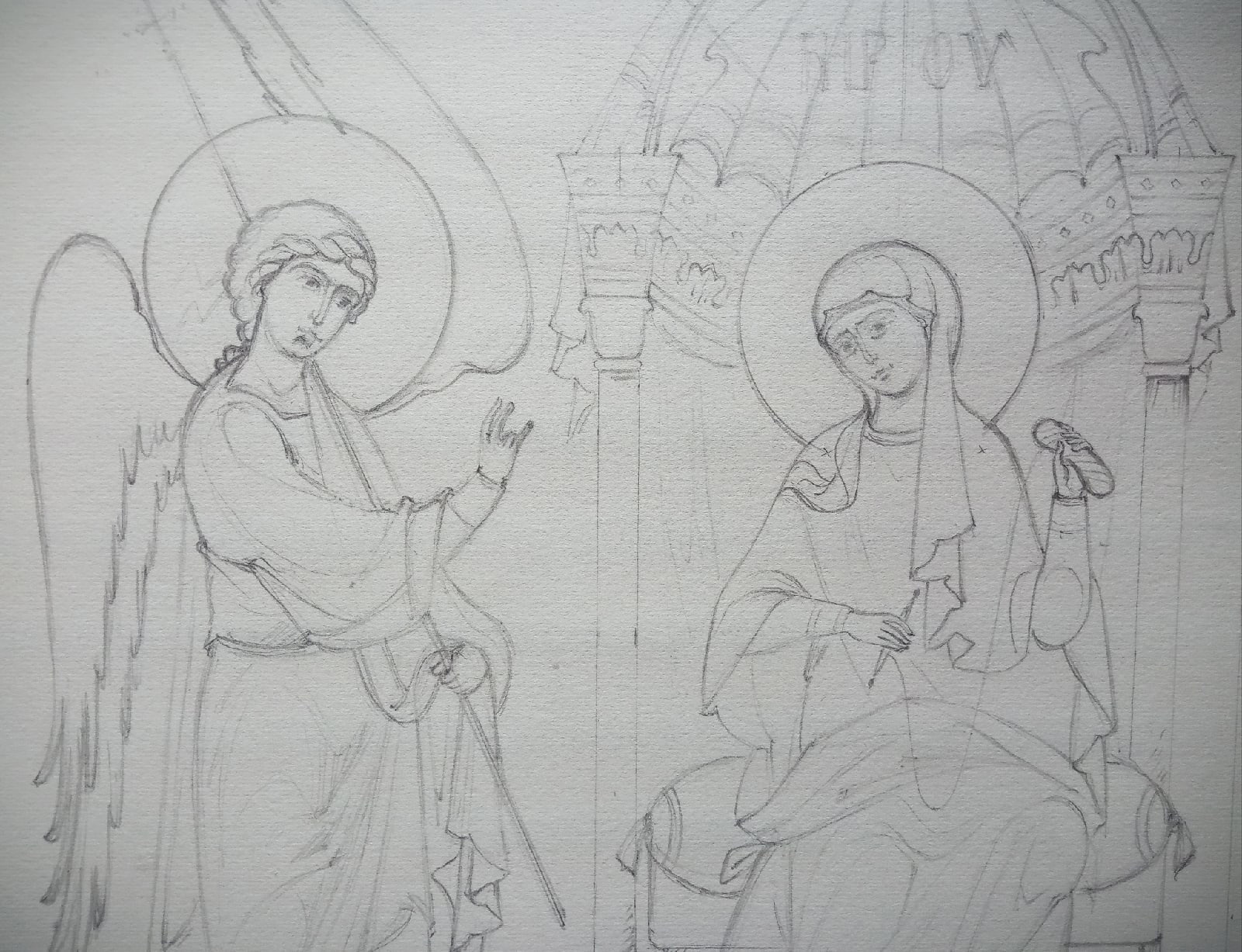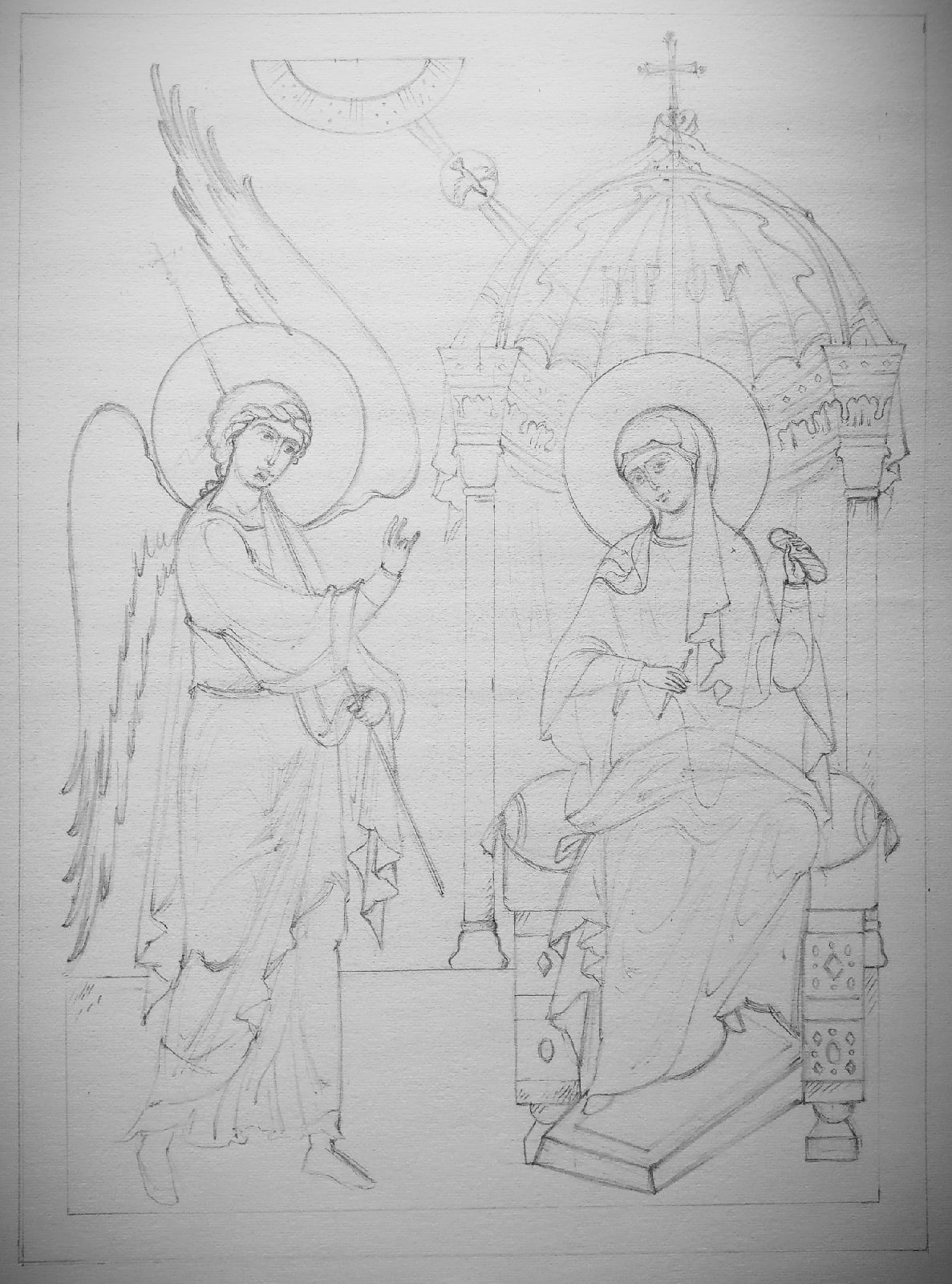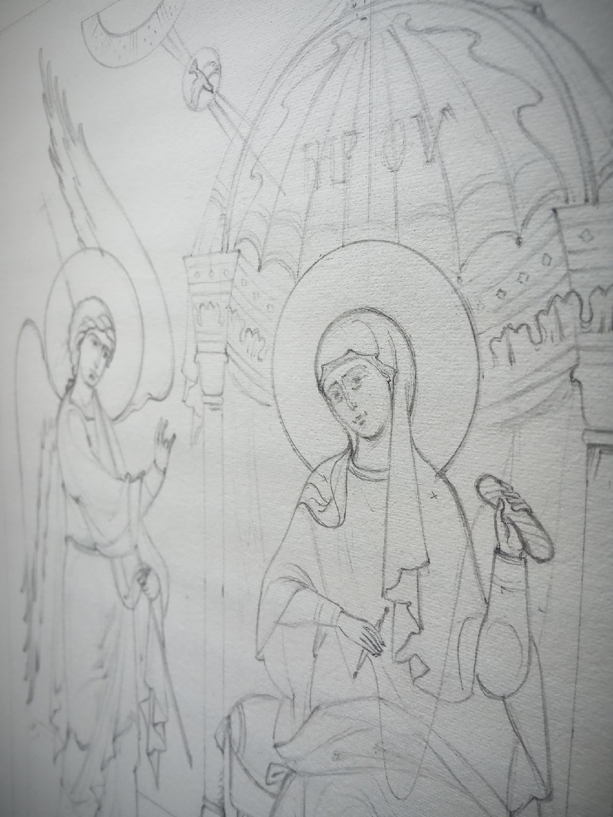 В нашей иконописной мастерской продолжается работа над миниатюрами в рукописное Евангелие для храма Сорока мучеников Севастийских. Иконописец Дмитрий Шестопалов пишет образ Благовещения Пресвятой Богородицы.