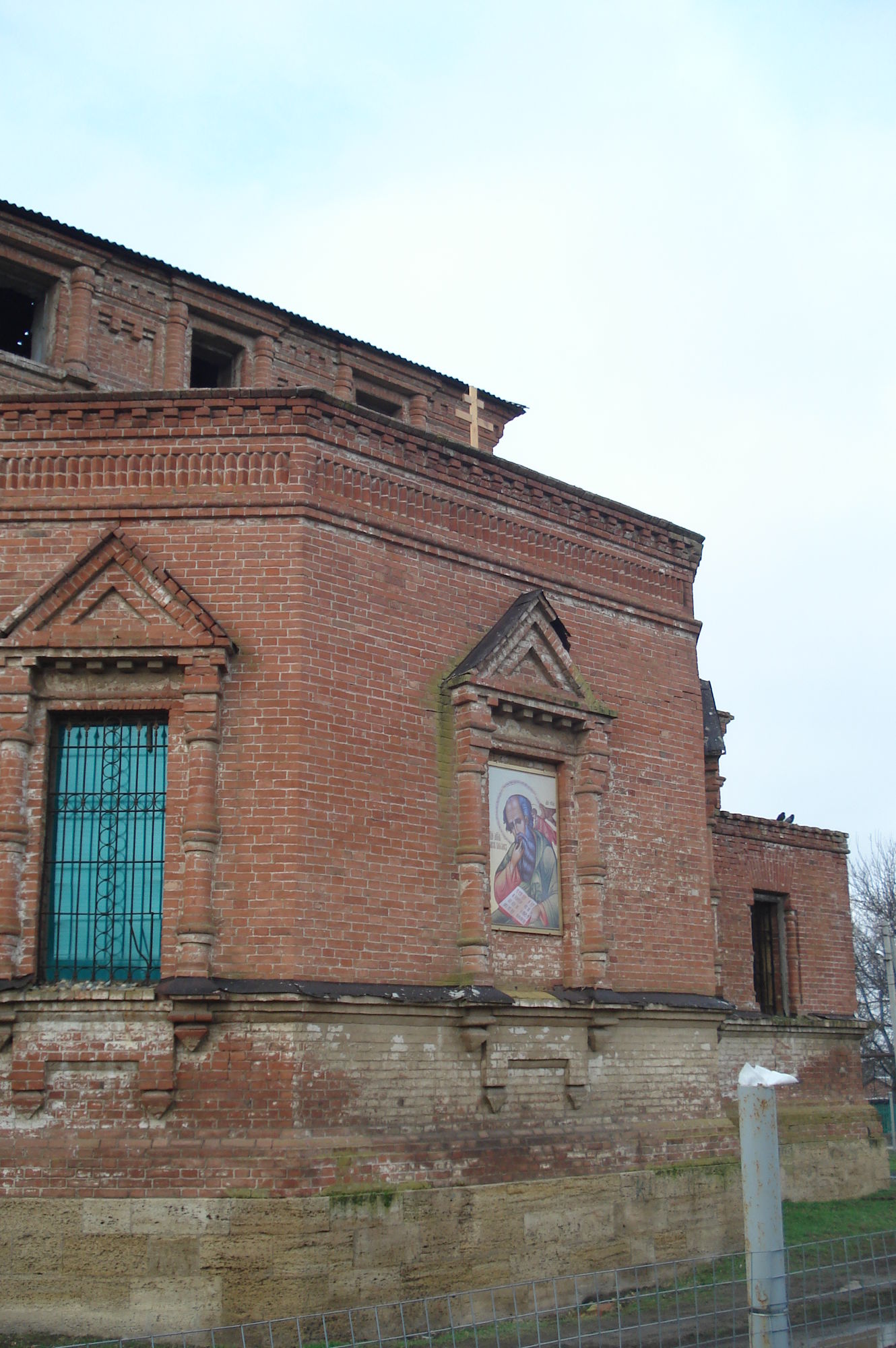 Наше паломничество продолжилось посещением еще одного храма ст. Грушевской – храма Иоанна Богослова, который еще только восстанавливается после разрушения в годы богоборческой власти. Однако, архитектура храма достойна восхищения.