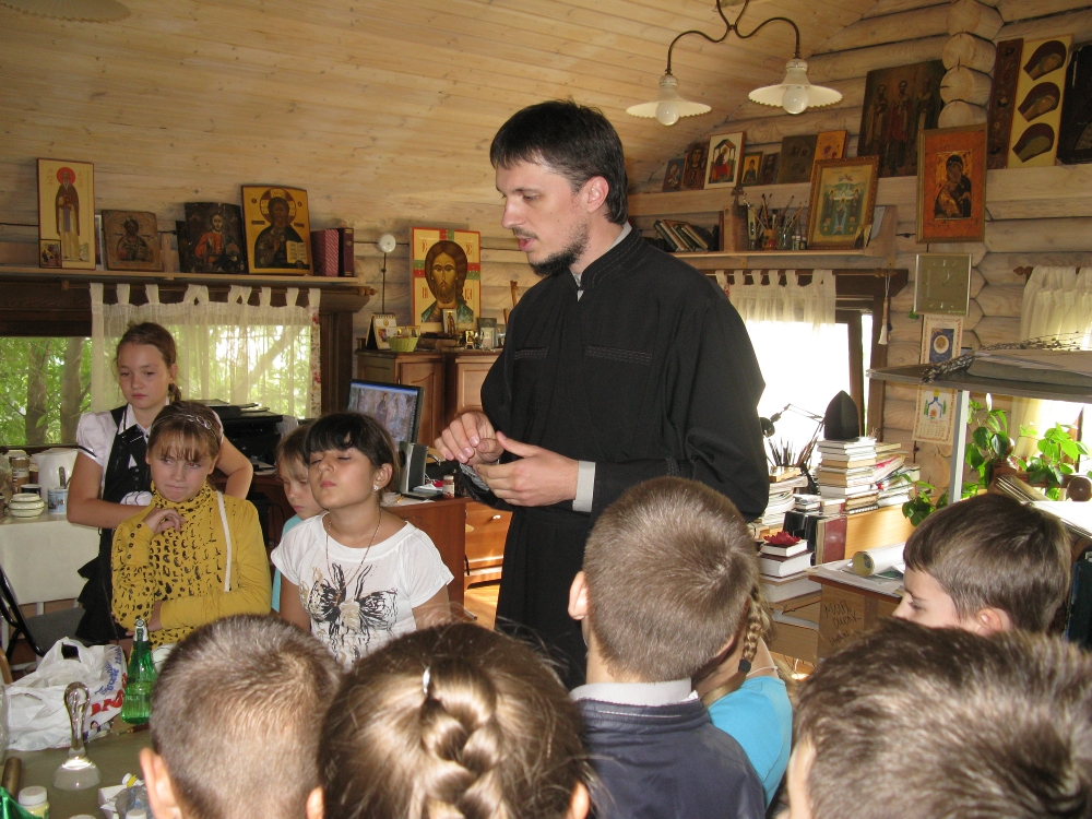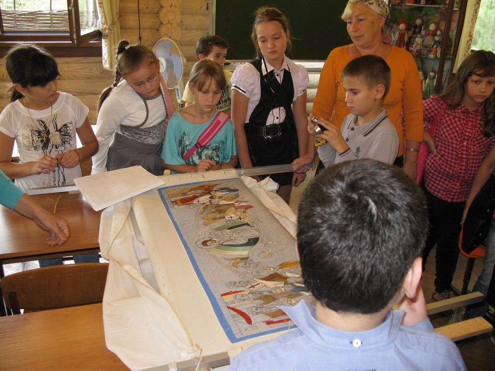 Гостей встречал священник Роман Зимин. Ребята узнали об особенностях внутреннего устройства храма. Руководитель приходской золотошвейной мастерской Елена Жилинская рассказала о техниках и материалах, используемых в золотном шитье, показала выполненные приходскими мастерами изделия. Руководитель иконописной мастерской священник Александр Литвиненко познакомил школьников с работой мастерской, рассказал о традиционных методах изготовления икон, материалах.