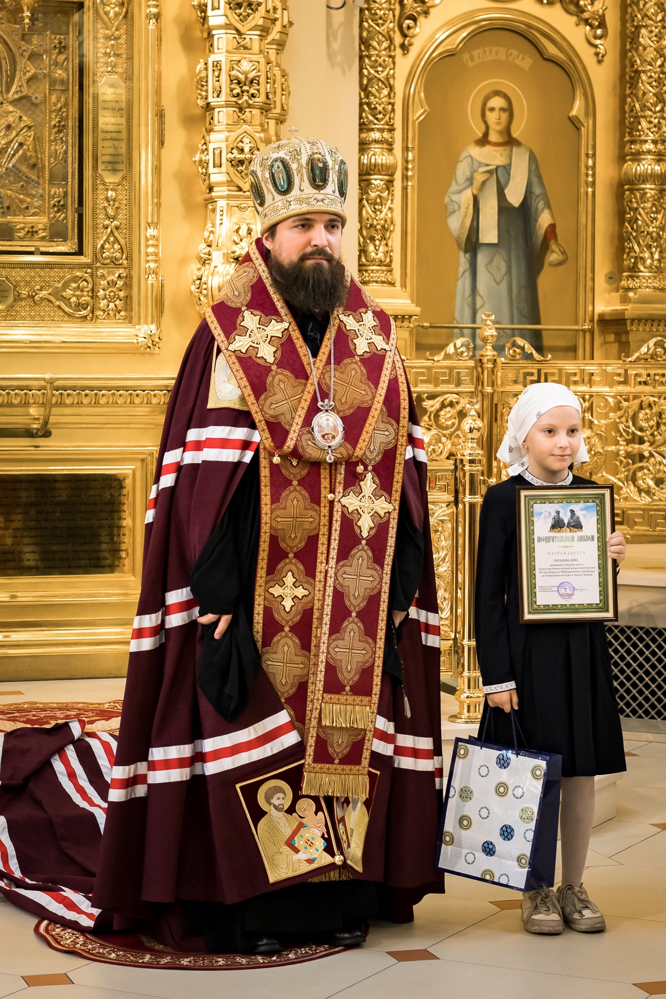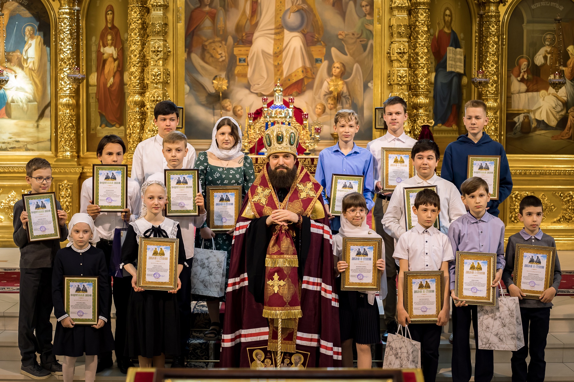 17 мая в Кафедральном соборе Рождества Пресвятой Богородицы епископ Таганрогский Артемий, викарий Ростовской епархии вручил воспитанникам нашей воскресной школы Анне Боталовой и Ивану Донских поощрительные дипломы за участие в III туре ученической олимпиады по Священной истории и Закону Божию.