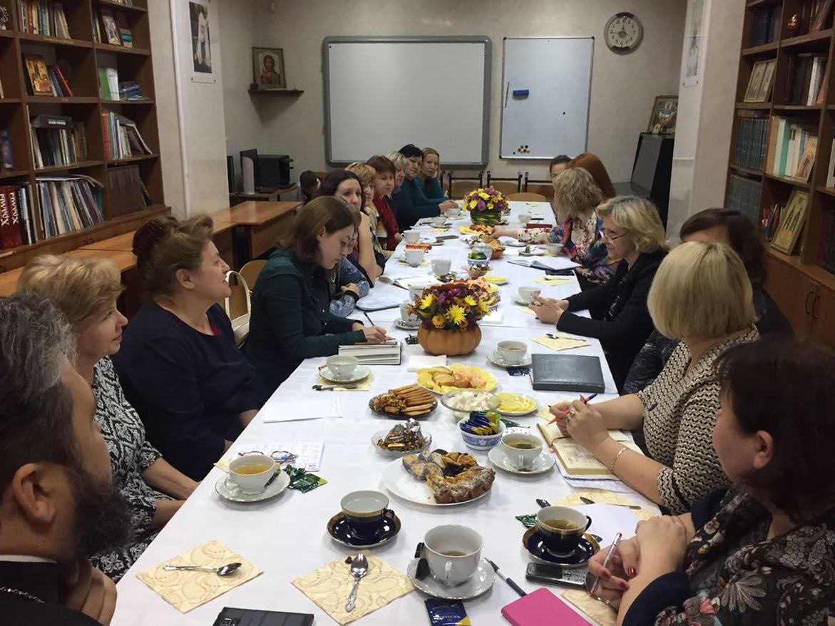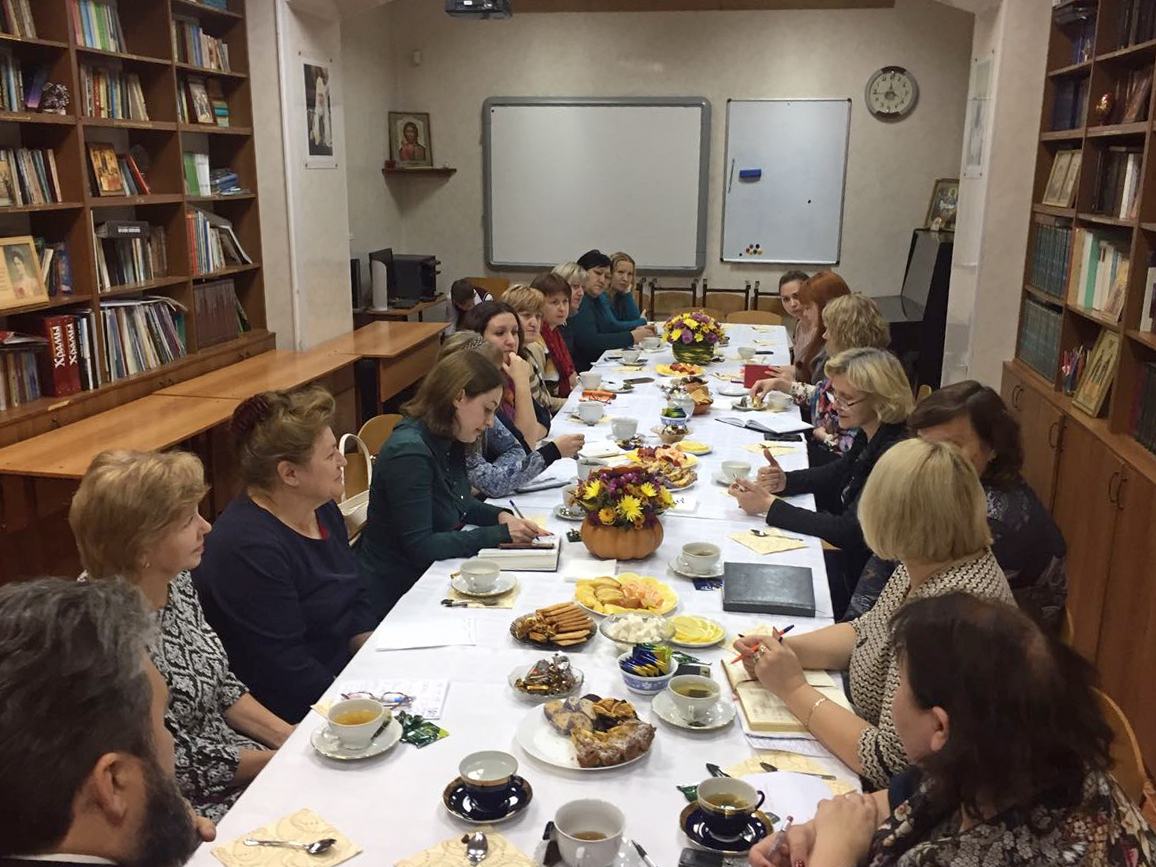 17 ноября 2017 года на нашем приходе состоялась уже традиционная встреча настоятеля прихода святого Георгия Победоносца протоиерея Валерия Волощука с завучами школ Советского района. Поводом для встречи стал предстоящий Рождественский фестиваль, который будет проводиться уже в пятый раз в январе 2017 года. За чаепитием представители школ обсудили организационные вопросы, создали творческую группу, которая разработает сценарий праздника, и назначили дату фестиваля. В этом году гостей и участников фестиваля будет принимать у себя школа №. 87. Очень радостно, что фестиваль стал традиционным и находит поддержку у руководства отдела образования Советского района.