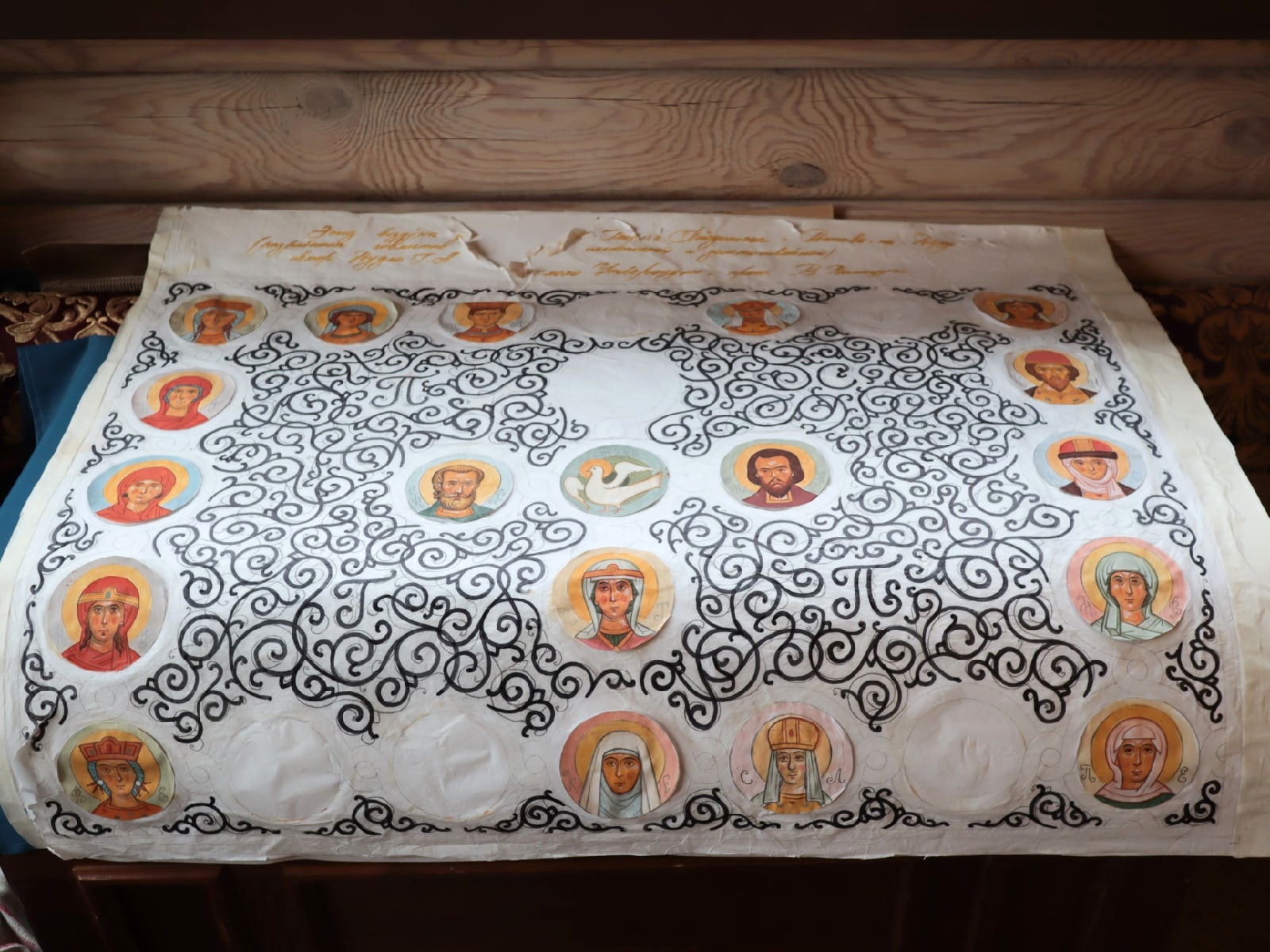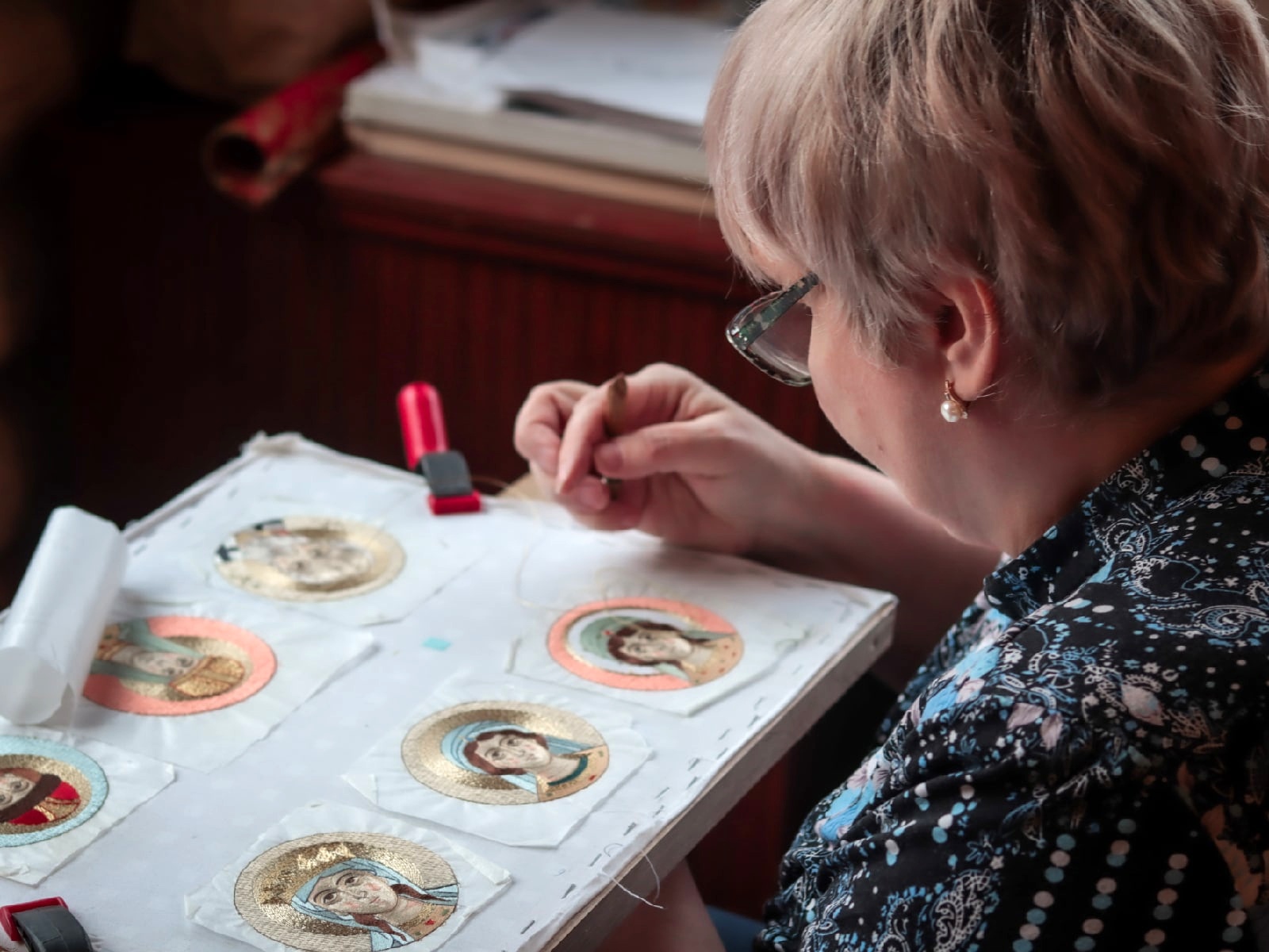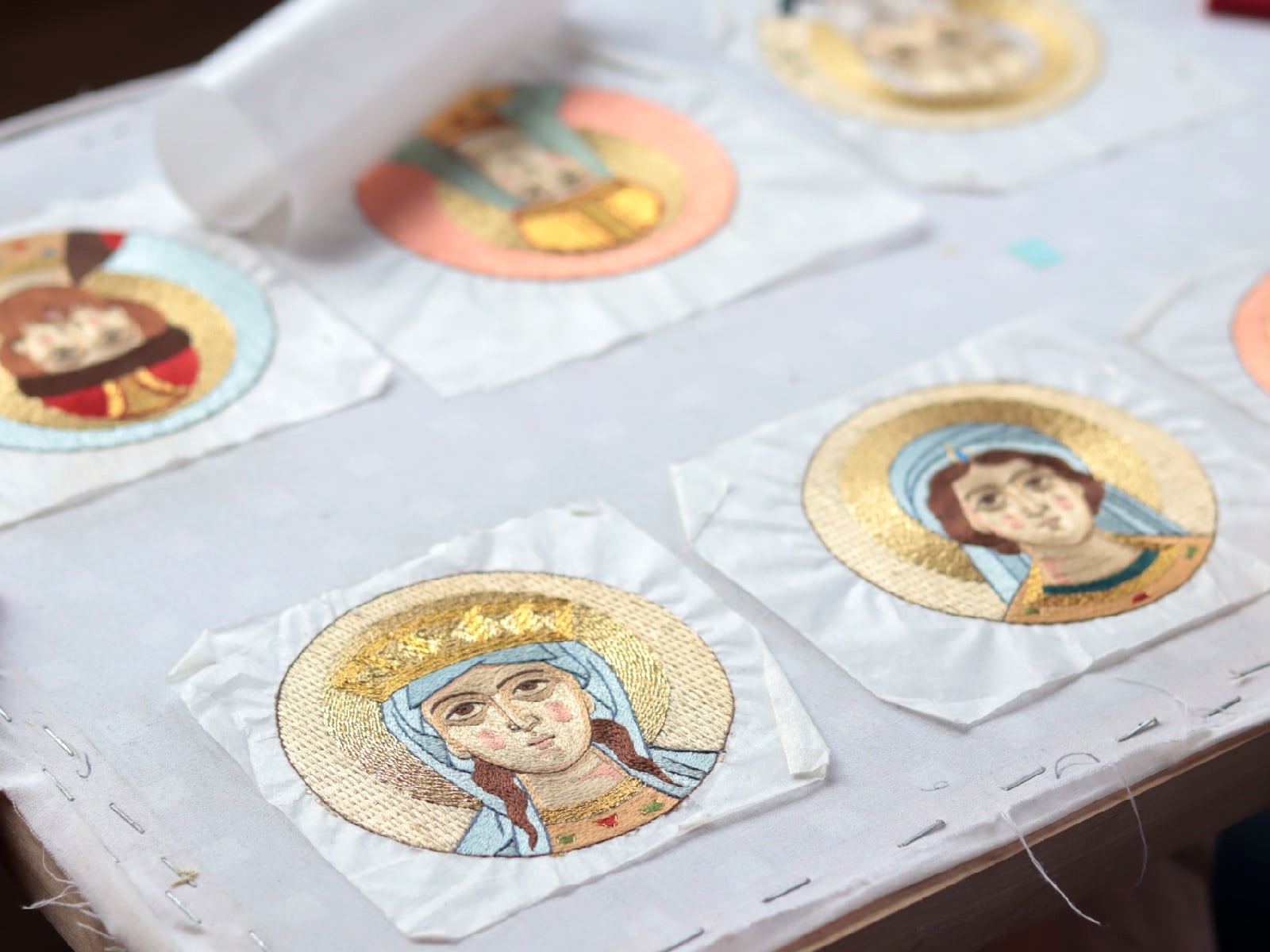 В приходской золотошвейной мастерской в честь святой праведной Тавифы продолжается работа над литургическим комплектом. Литургический комплект — это матерчатые платы, которыми покрывают потир и дискос с поставленной на него звездицей во время Литургии. Его составляют два покровца и воздух. Покровцы, как правило, выполнены в виде крестов, покрывая, таким образом, сосуды с четырех сторон. Воздух (большой покров) прямоугольной формы и им поверх покровцов накрывают потир и дискос, стоящие рядом.