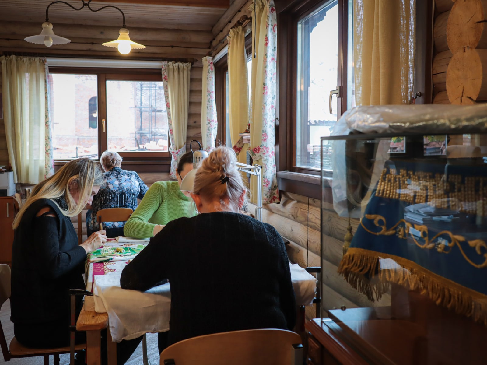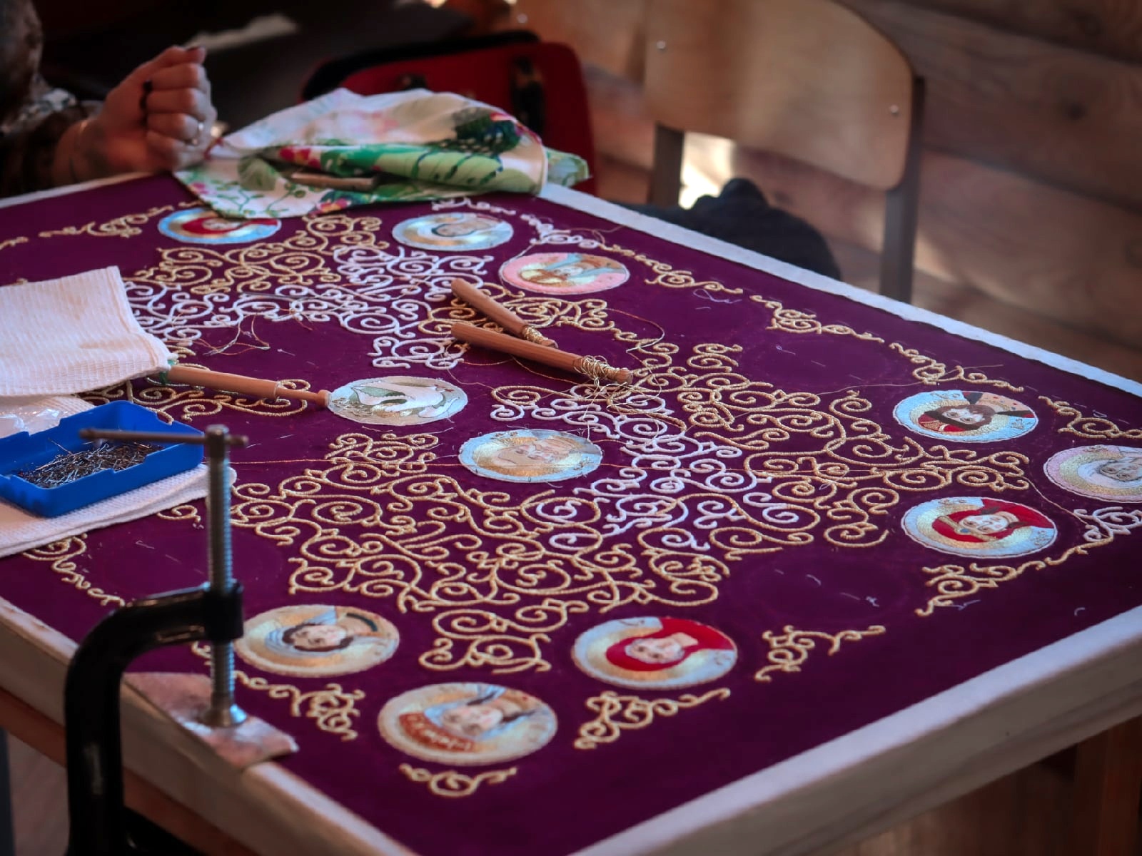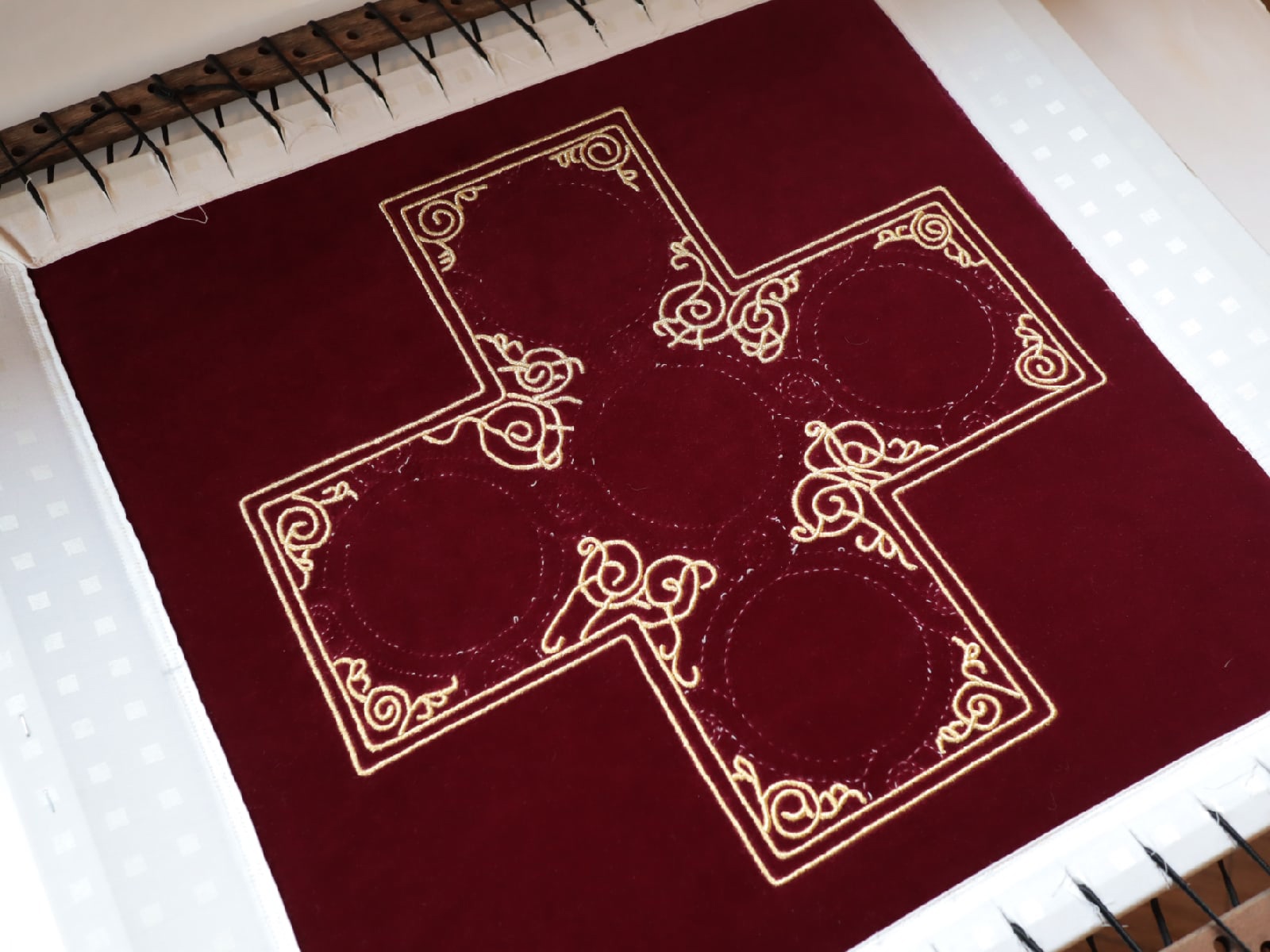 В приходской золотошвейной мастерской в честь святой праведной Тавифы продолжается работа над литургическим комплектом. Литургический комплект — это матерчатые платы, которыми покрывают потир и дискос с поставленной на него звездицей во время Литургии. Его составляют два покровца и воздух. Покровцы, как правило, выполнены в виде крестов, покрывая, таким образом, сосуды с четырех сторон. Воздух (большой покров) прямоугольной формы и им поверх покровцов накрывают потир и дискос, стоящие рядом.