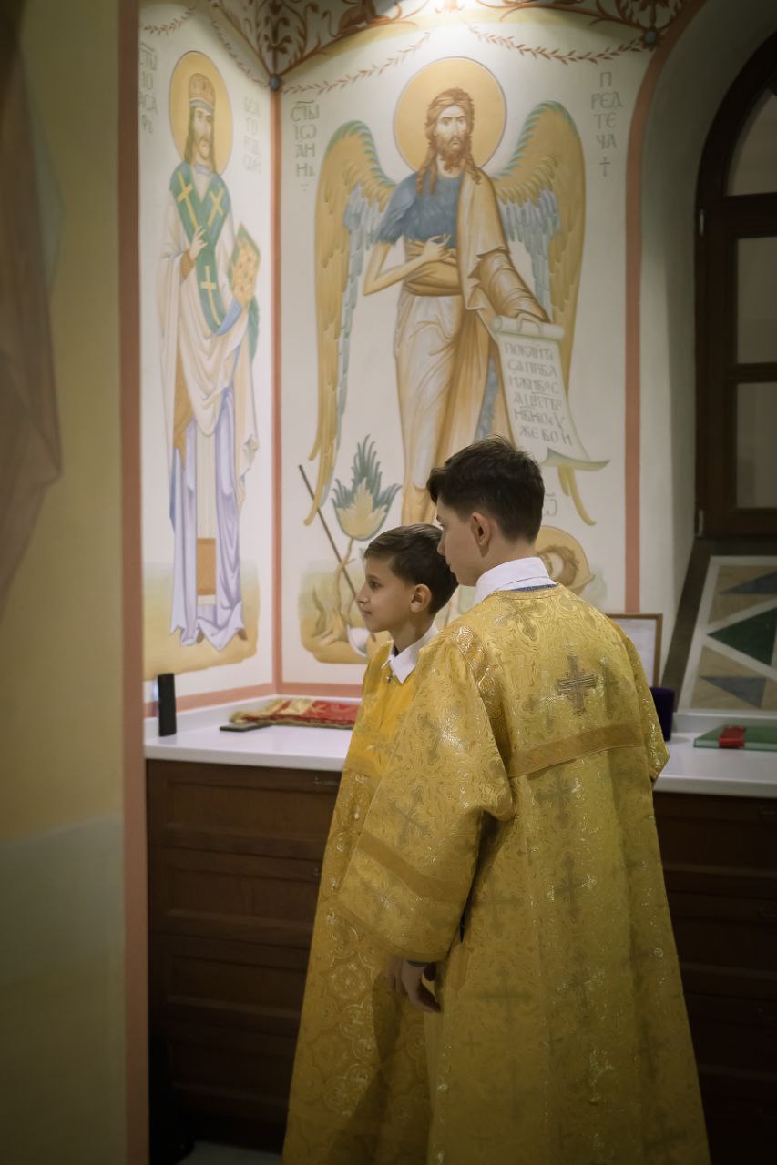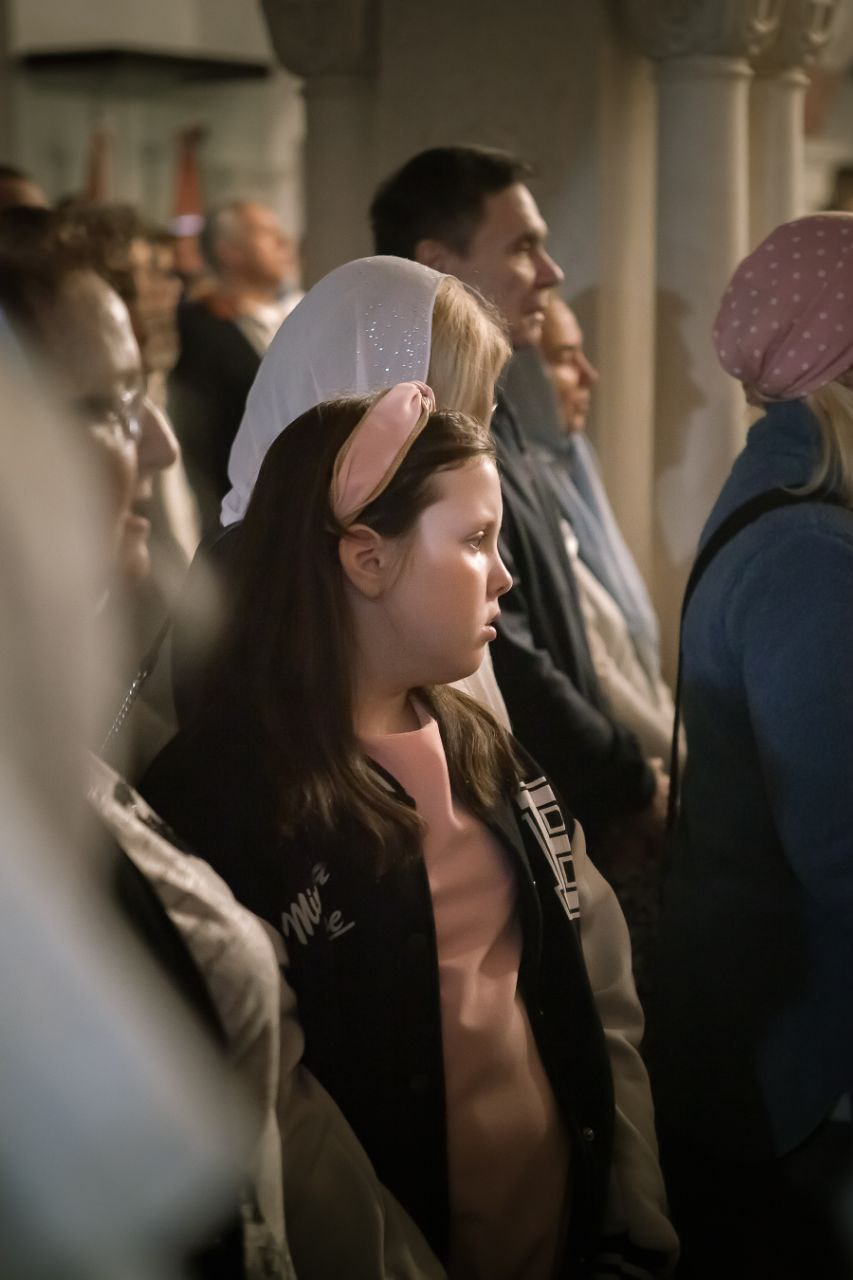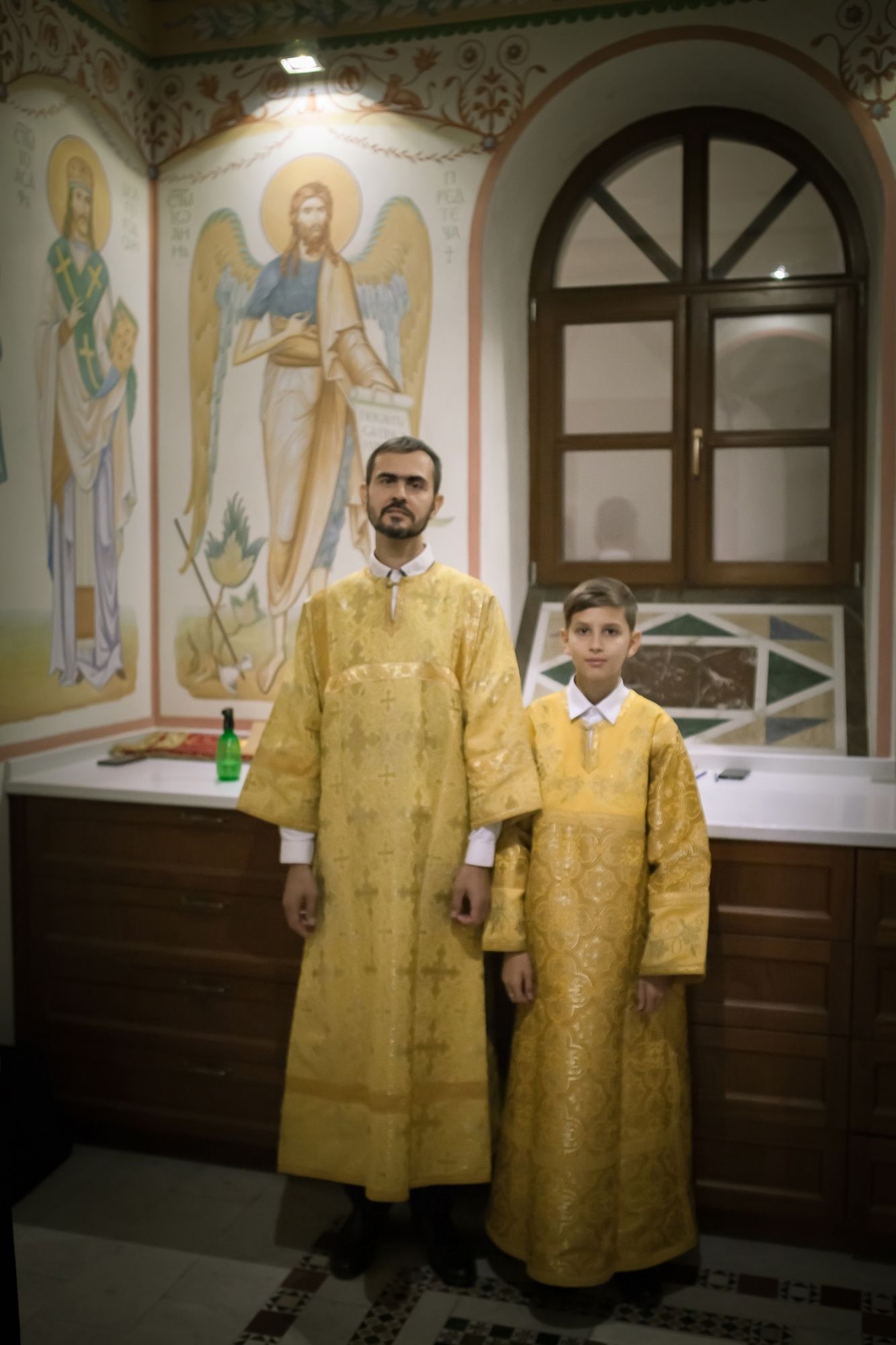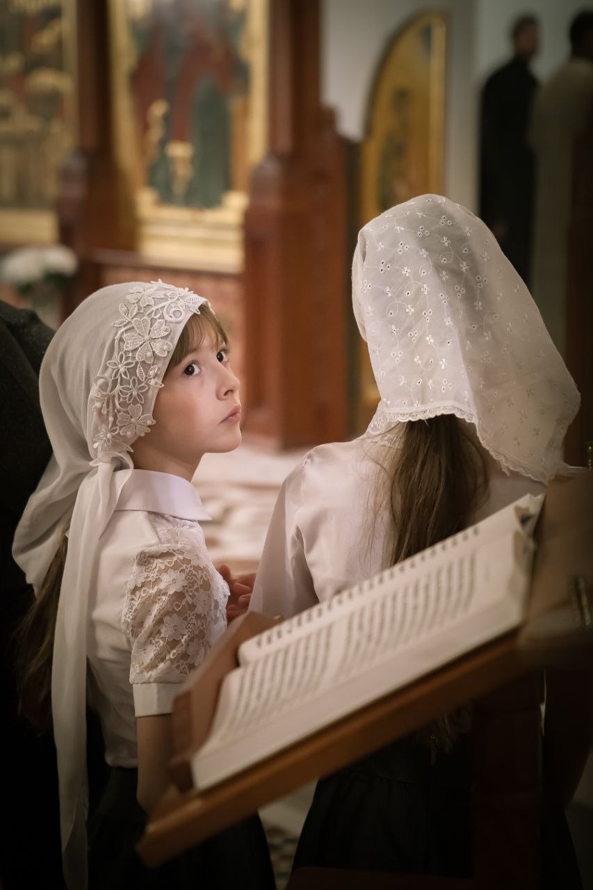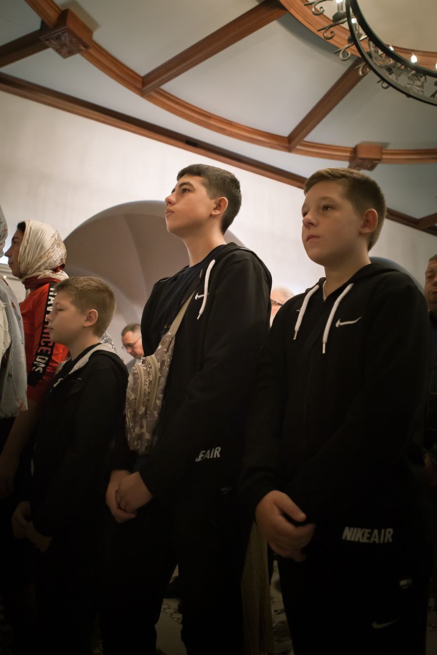 Наши дети - не только молитвенники на богослужении, но и активные помощники. Девочки помогают на подсвечниках и раздают запивку, мальчики трудятся в алтаре. Песнопения литургии вместе со смешанным хором прихода исполнил девичий хор воскресной школы "Русь" под управлением матушки Ксении Волощук.