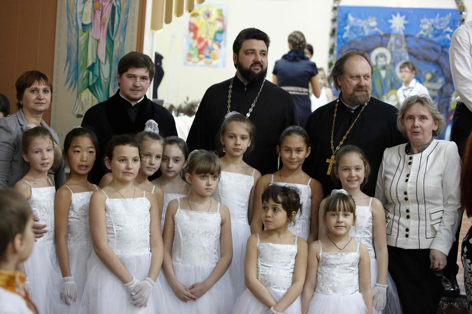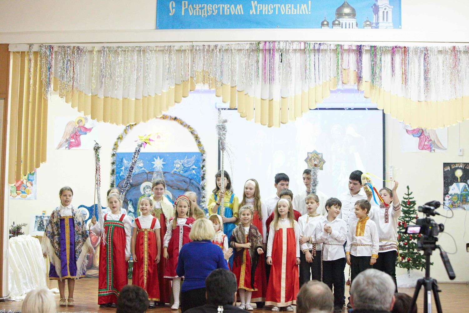 Ребята из нашей воскресной школы под руководством Бухтовой Ирины Петровны выступили с рождественскими колядками. София Кропивницкая открыла концерт исполнением песни о младенце Христе "Что за дитя в хлеву чужом…". Тронула до слёз постановка о Царской семье Николая II, подготовленная старшеклассниками школы № 117. Настроение в зале было тёплым и радостным. Зрители дружными аплодисментами поддерживали артистов.