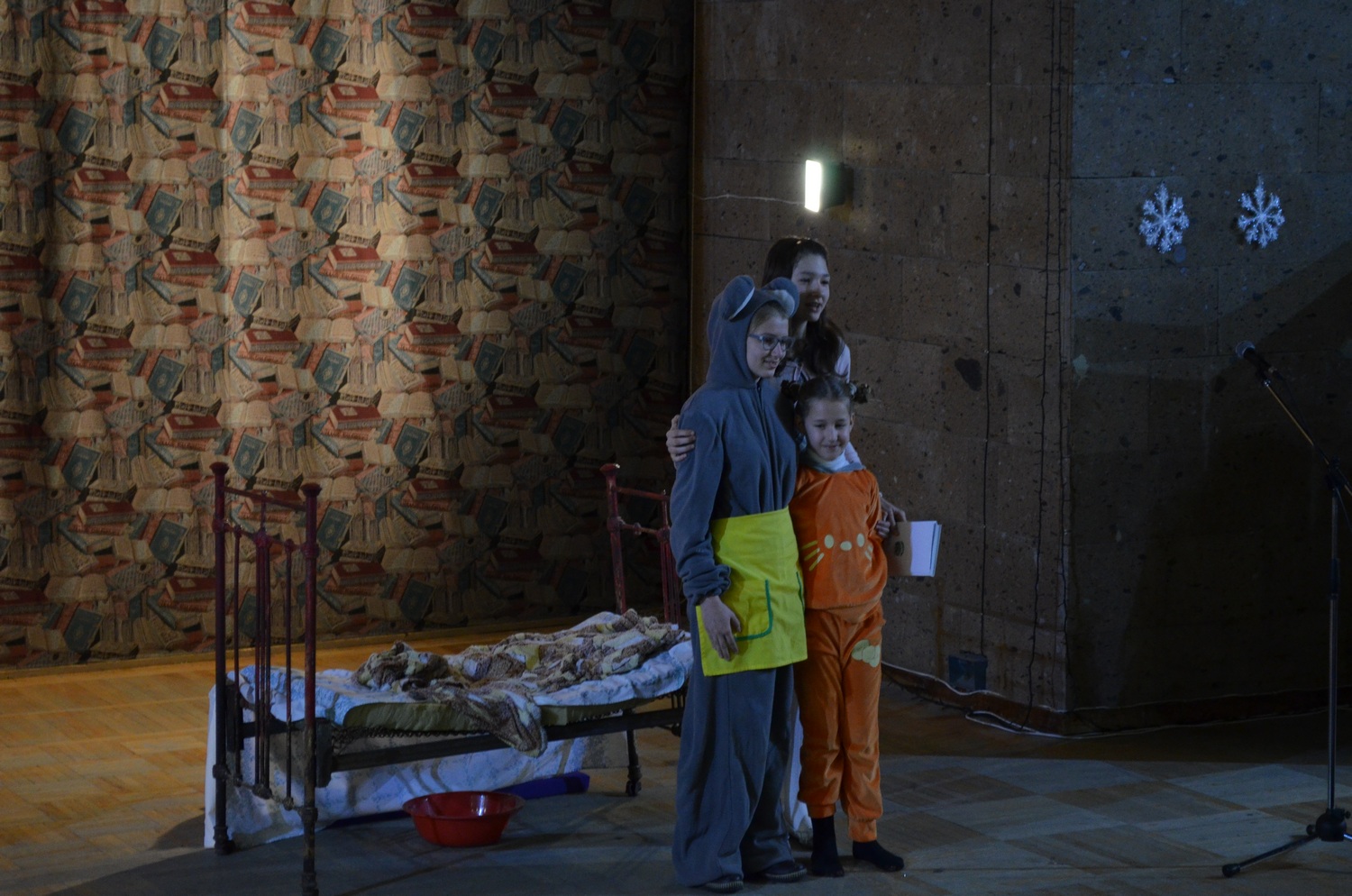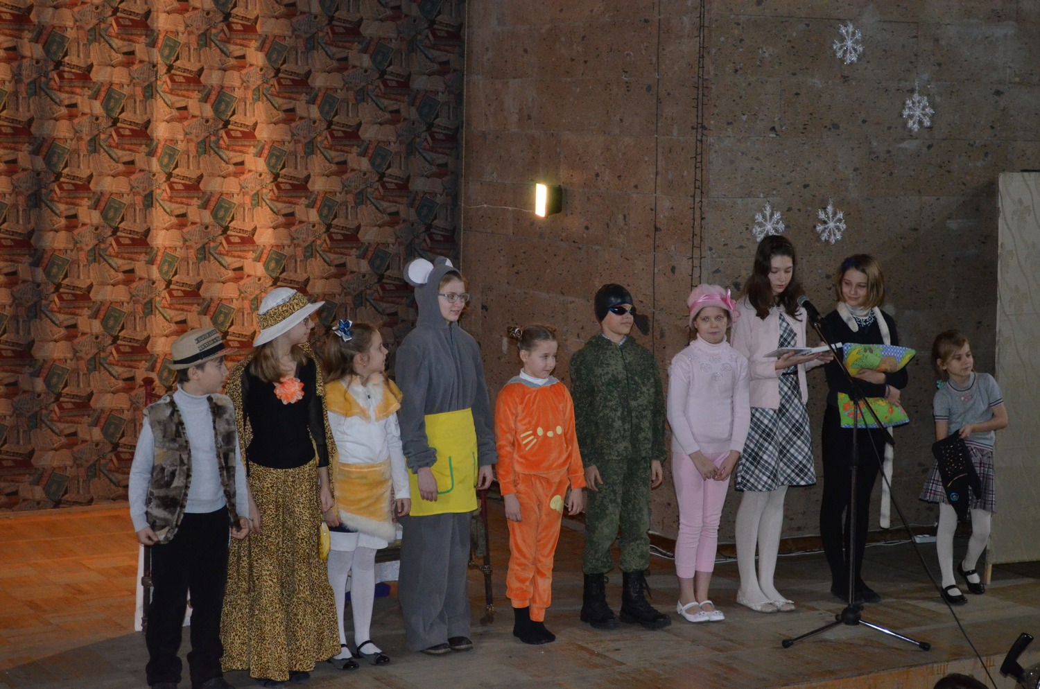 В Публичной библиотеке юные артисты театральной студии, которой руководит Рыбин Александр Степанович, выступили перед детьми с ограниченными возможностями с постановкой «Сказка о глупом мышонке. Это стало хорошей традицией для нашей воскресной школы – поздравлять других детей с православными праздниками песнями, спектаклями и хорошим настроением. Кроме выступления наши воспитанники подарили своим зрителям и подарки: в больнице это были сладости, а в детском саду – детские настенные календари и детская Библия.