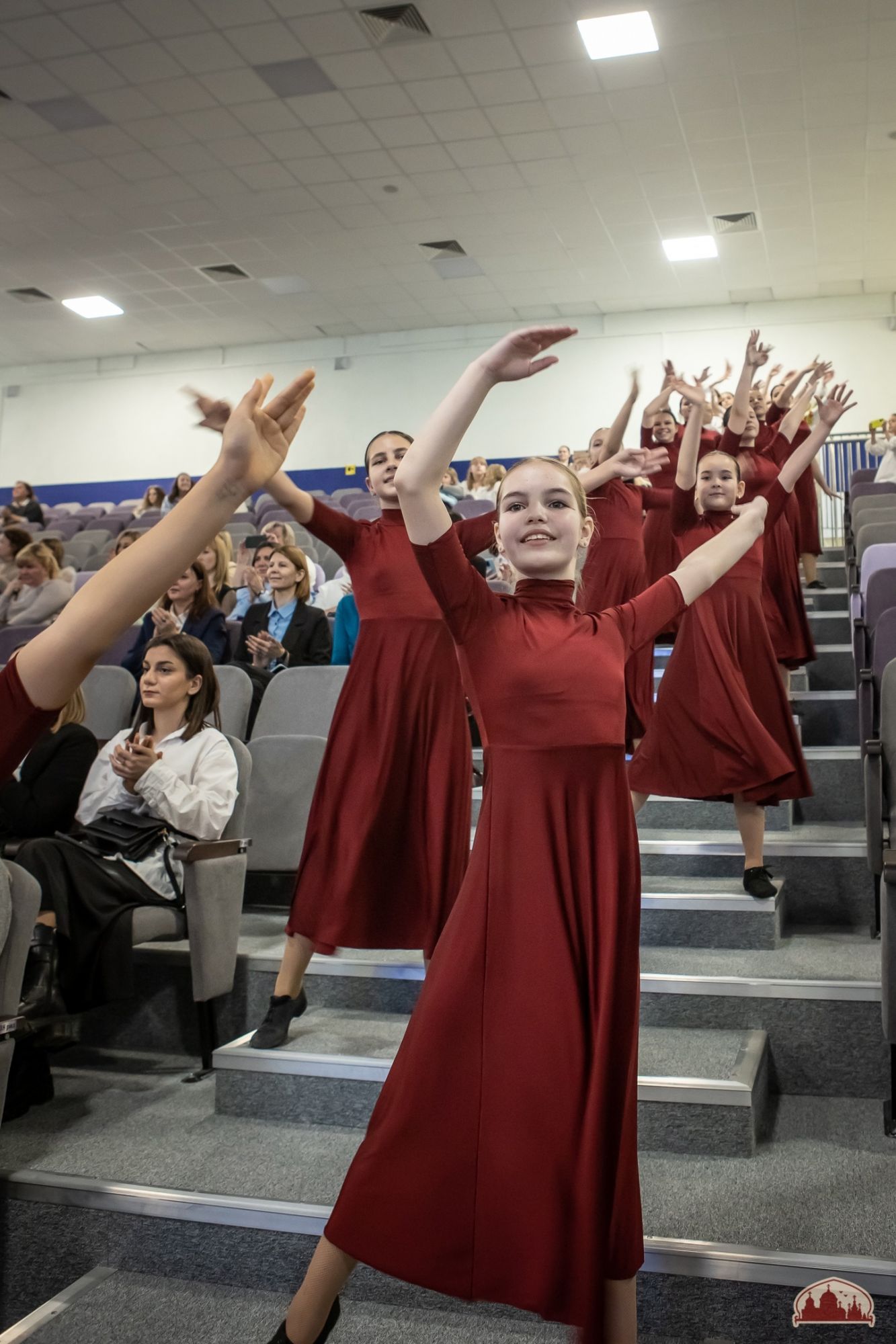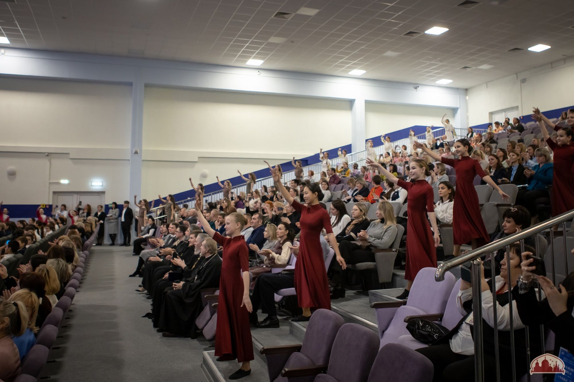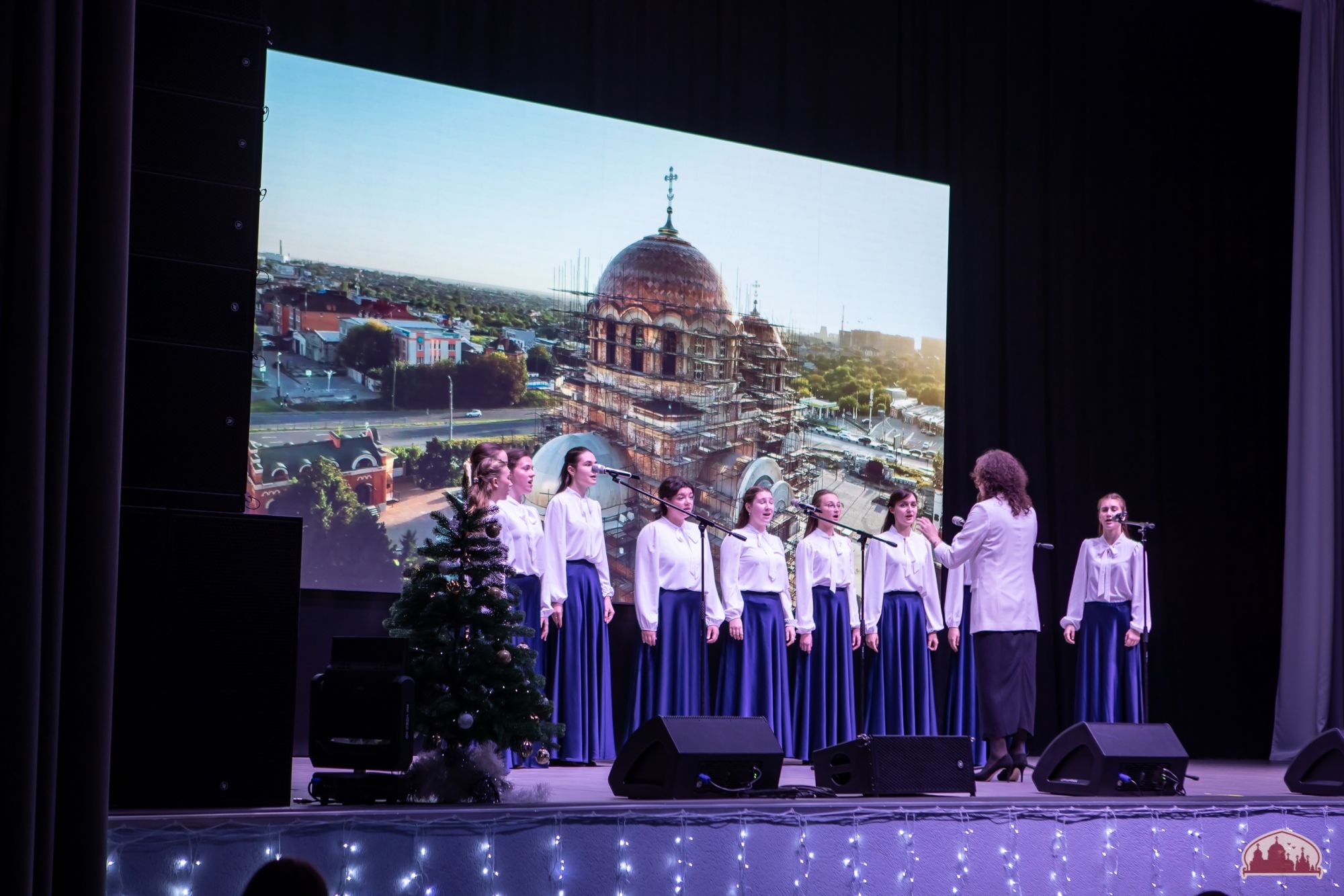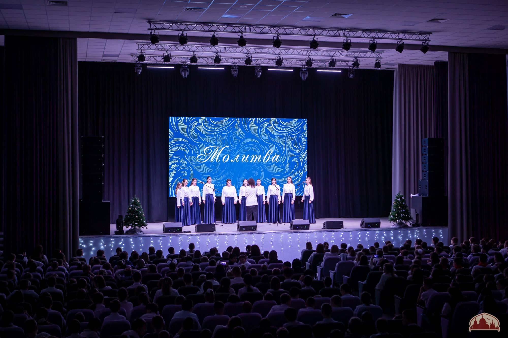 Праздник продолжился театрализованным музыкальным представлением творческих коллективов 16-ти школ и Дома детского творчества Советского района. Девичий хор "Русь" нашей воскресной школы под управлением матушки Ксении Волощук исполнил песнопение "Хвалите Имя Господне".