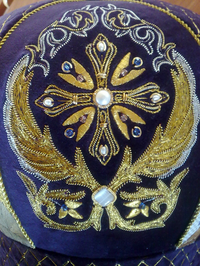 Митра – богато украшенный золотым шитьем, бисером, драгоценными камнями головной убор сферической формы.