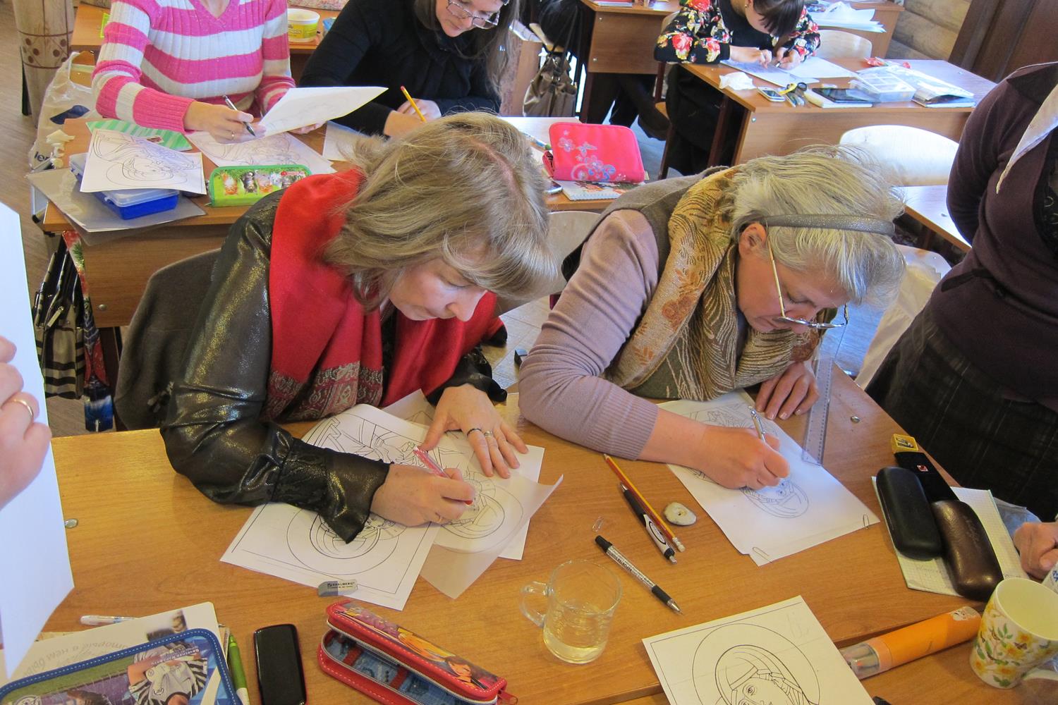 Золотошвейкам была поставлена задача усвоить техники шелкового и золотного шитья, основы лицевого шитья, историю древнерусской вышивки. Некоторые из учениц были на Лицевом шитье впервые и им не легко, но радостно удалось освоить технику Лицевого шитья. Многие из учениц давно занимаются лицевым шитьем и даже ездили на такой же курс в золотошвейную мастерскую «Убрус», но все равно было очень многое открыто и в этот раз.