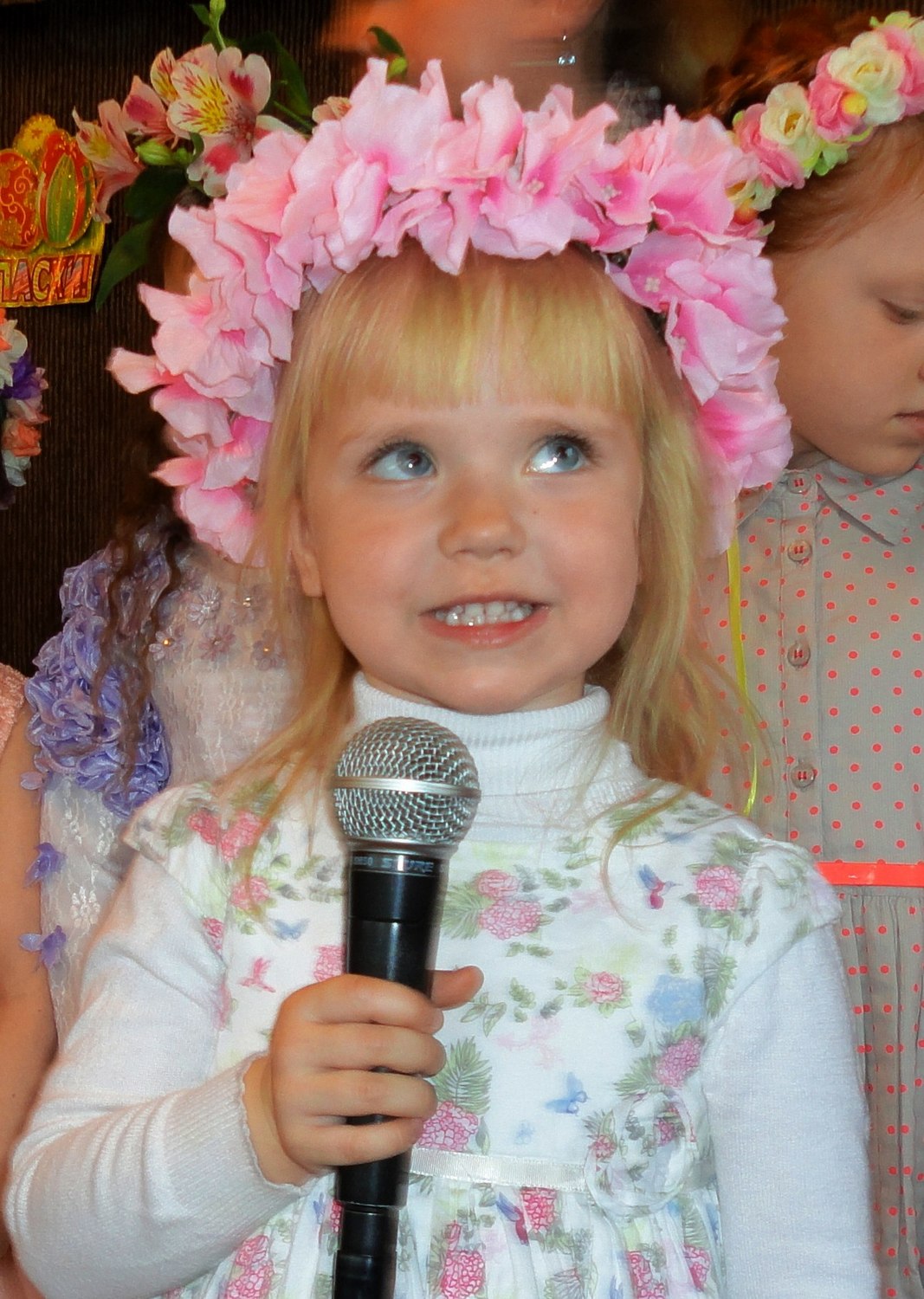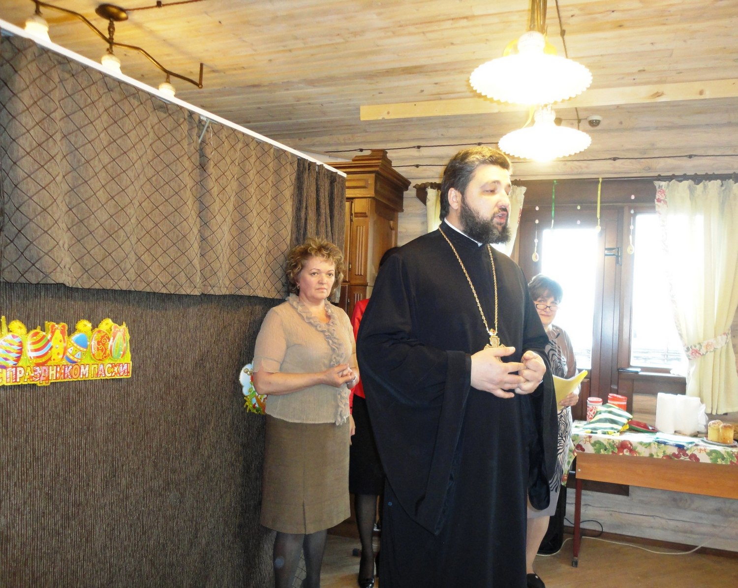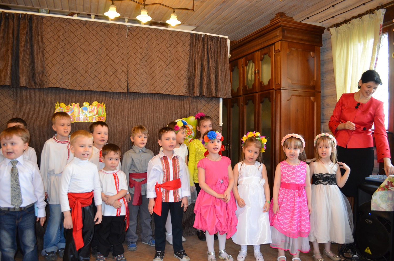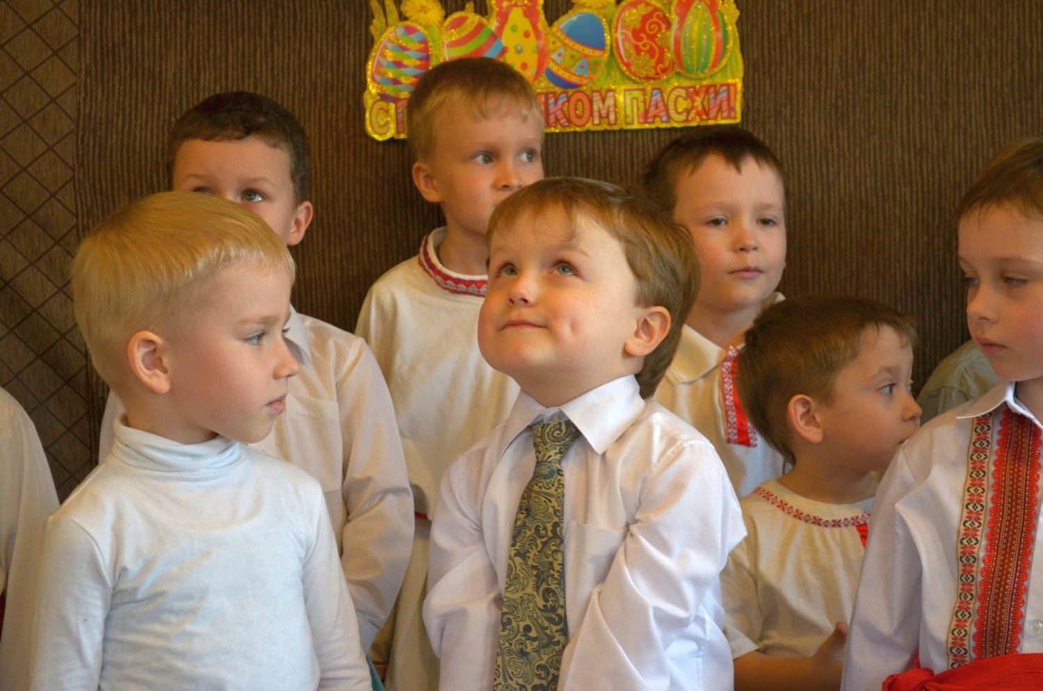 Маленькие участники утренника волновались, потому что среди гостей был настоятель нашего прихода отец Валерий. После общей молитвы и поздравления он отметил, что наши воспитанники похожи на праздничные куличики и пасхальные яйца. У каждой девочки на голове красовался веночек, который с любовью был приготовлен мамой, а одежду мальчиков украшала вышивка на рубашках и красивые пояса-кушаки! В таких нарядах хоровод "Во поле берёза стояла" заиграл всеми красками русских традиций.
