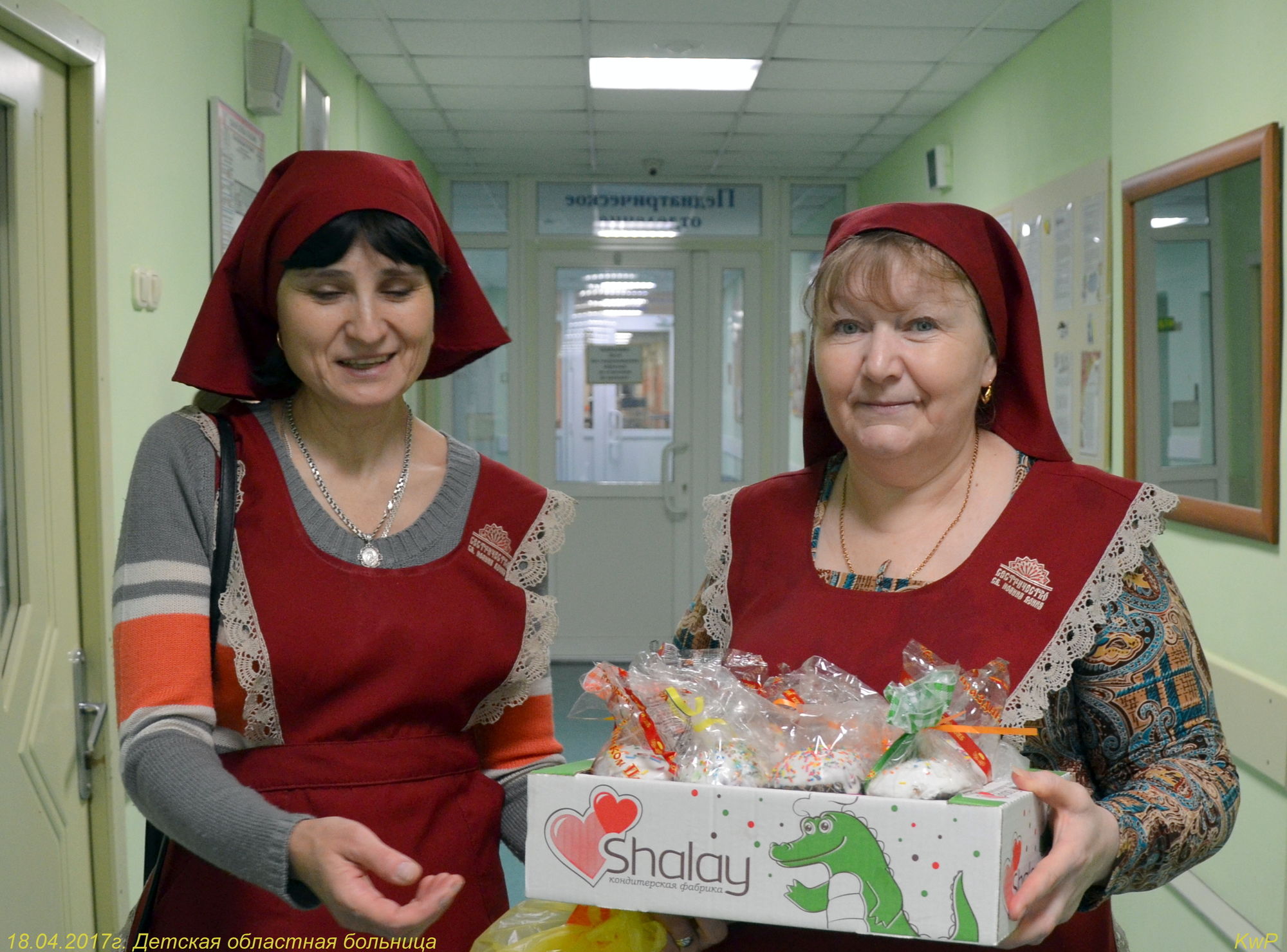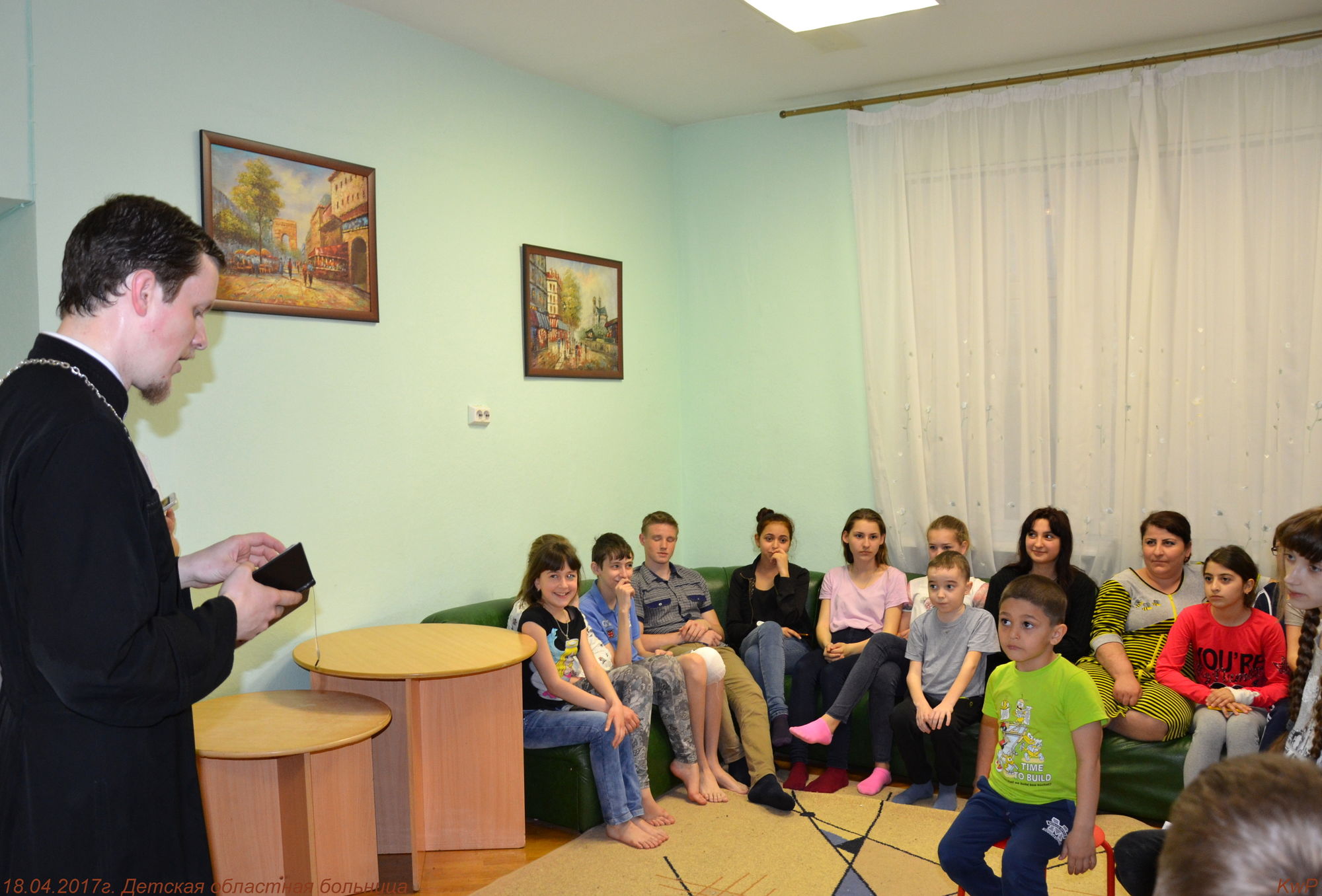 18 апреля 2017 года клирик храма Иоанна Воина иерей Роман Зимин и сестры милосердия посетили детскую областную больницу – отделение педиатрии и поздравили всех с праздником Пасхи.